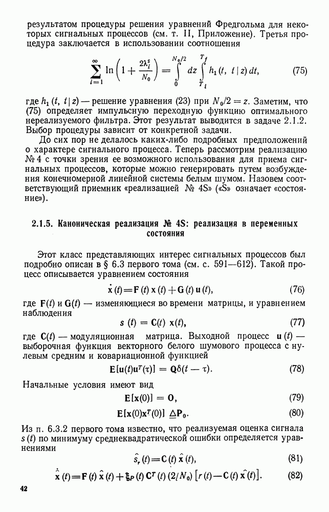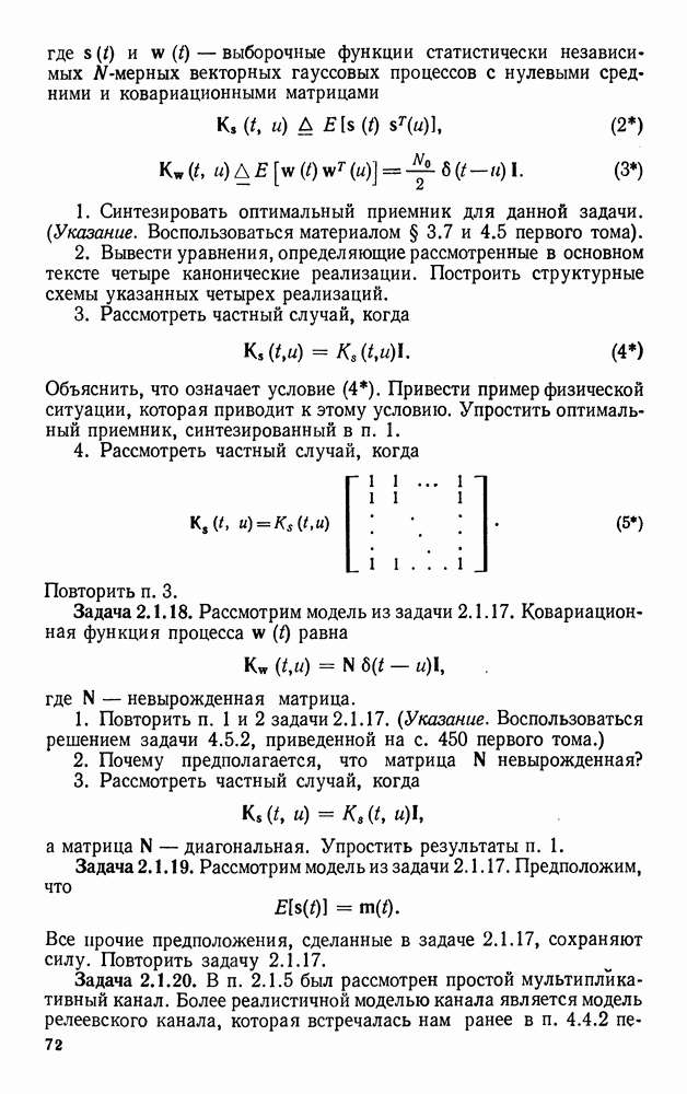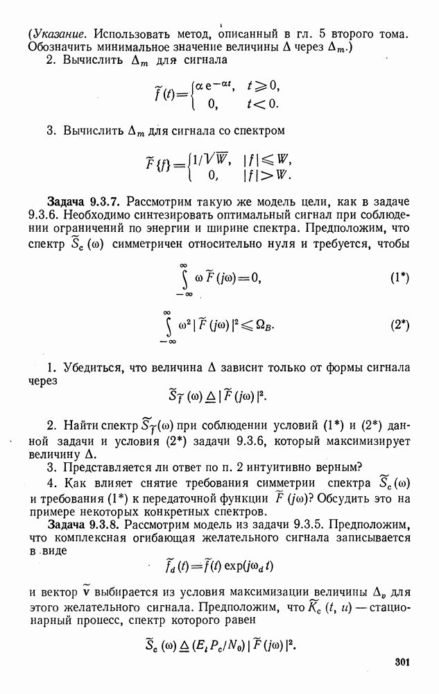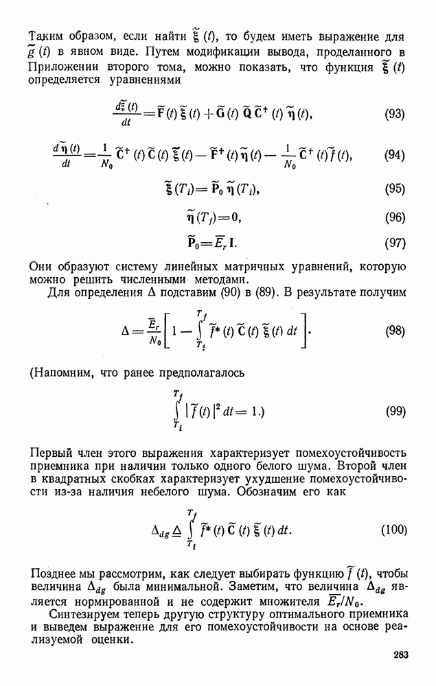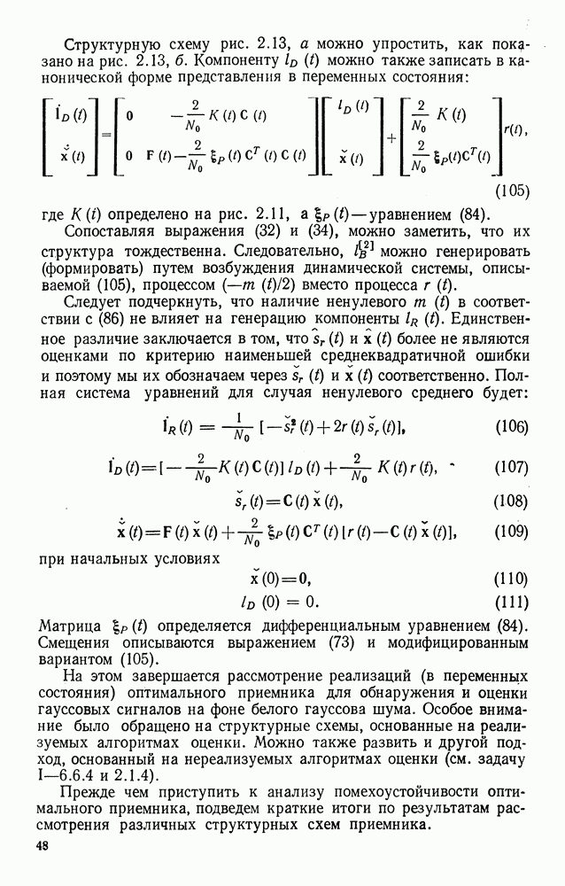 Цель этого краткого рассмотрения — показать, как метод представления в переменных состояния можно использовать для исследования методов синтеза оптимальных сигналов. Другие задачи синтеза сигналов будут встречаться по ходу изложения материала книги.