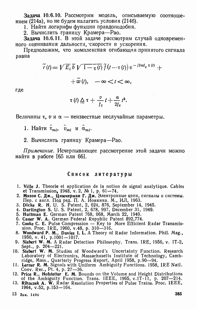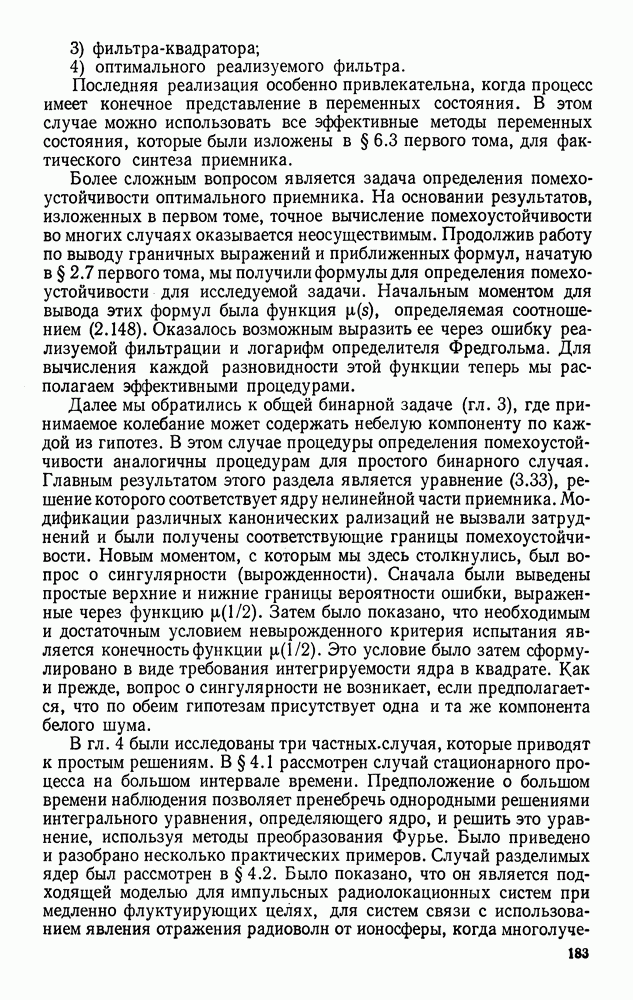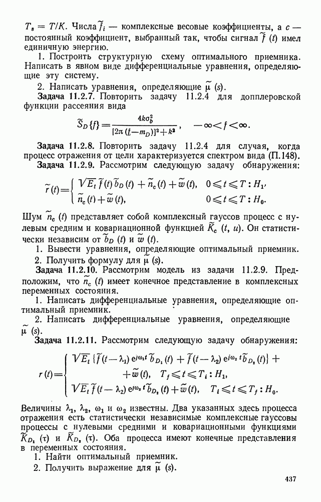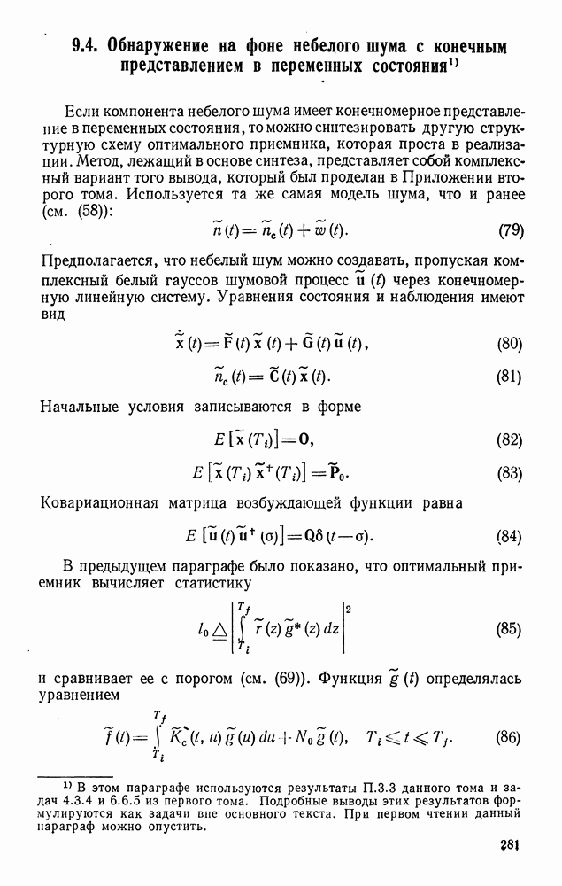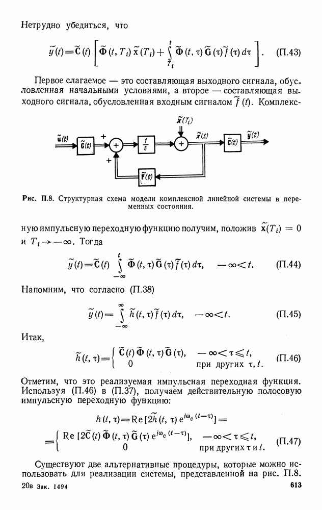 Цель этого краткого рассмотрения — показать, как метод представления в переменных состояния можно использовать для исследования методов синтеза оптимальных сигналов. Другие задачи синтеза сигналов будут встречаться по ходу изложения материала книги.