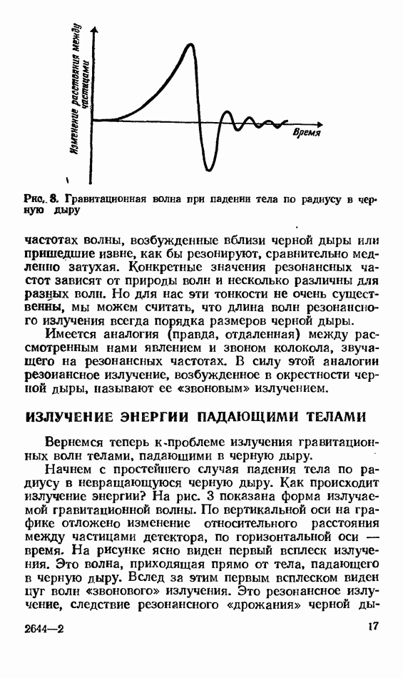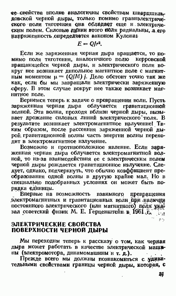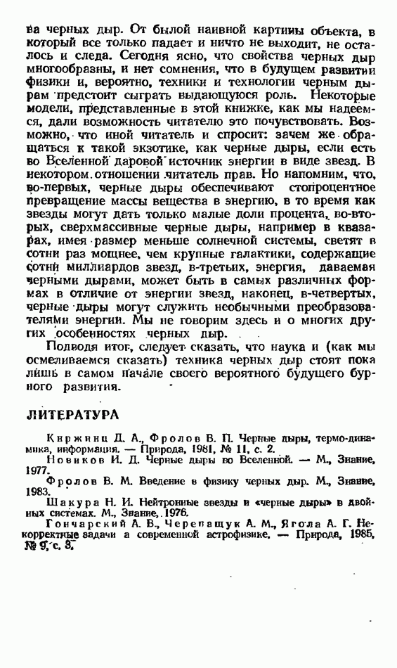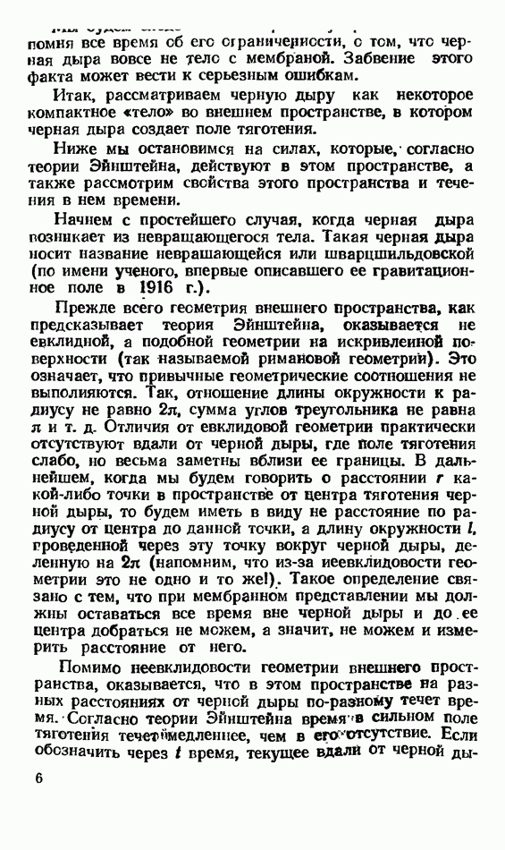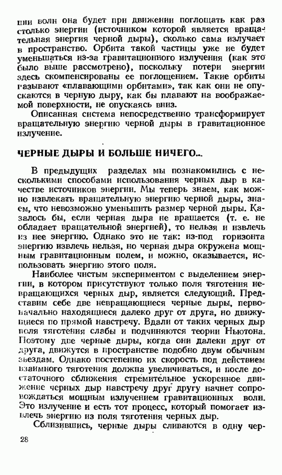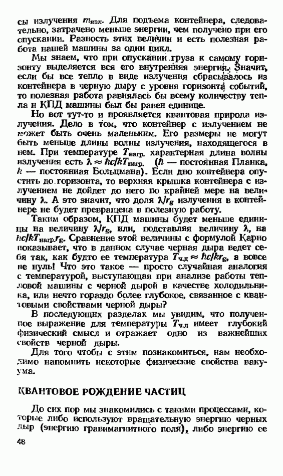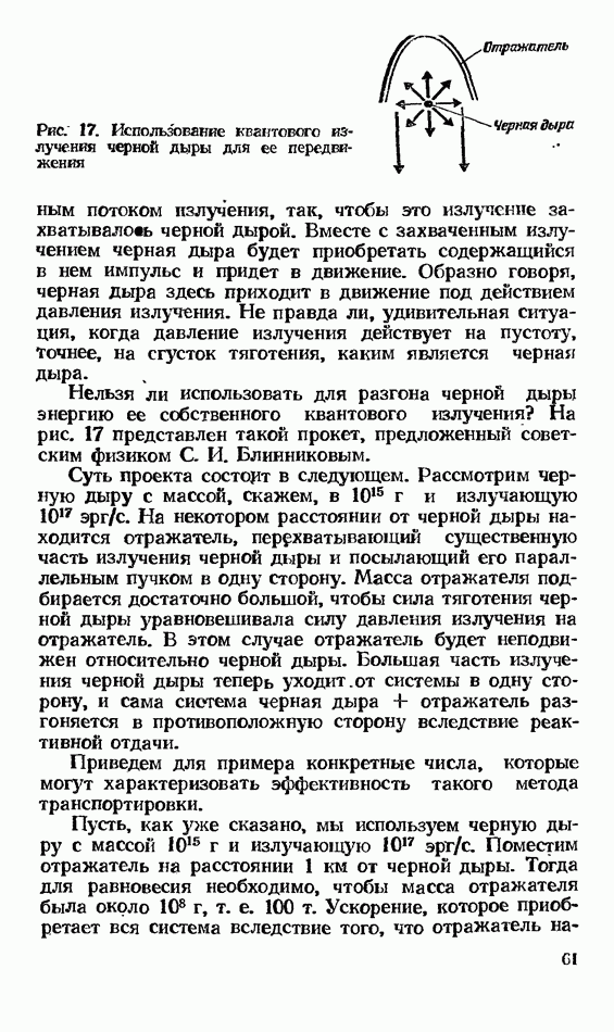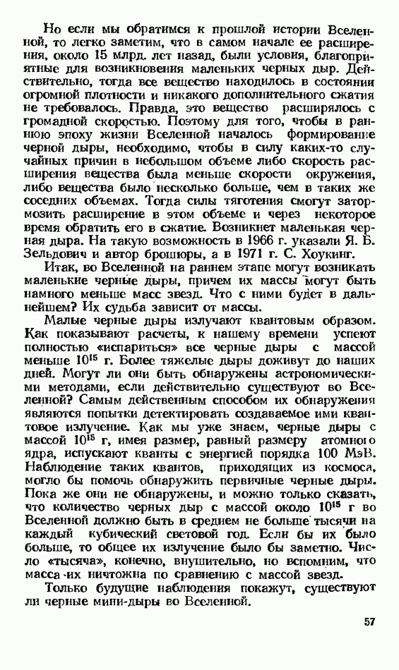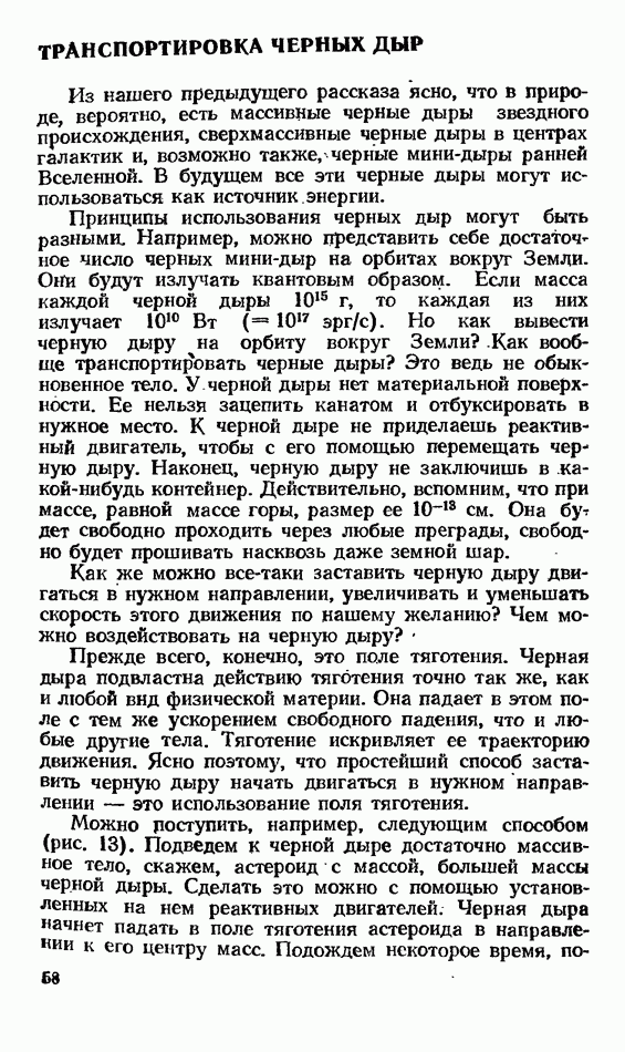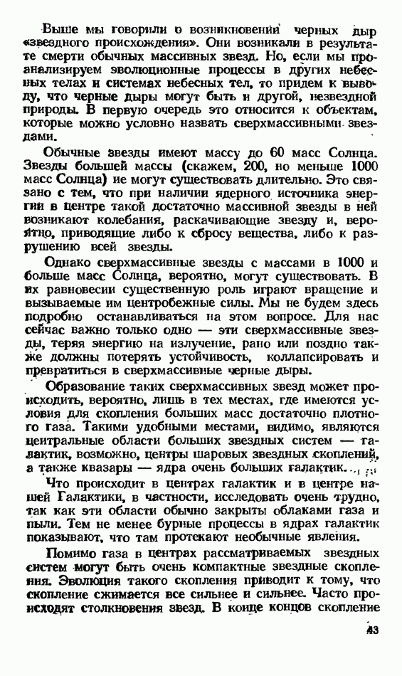 Распознанный текст, спецсимволы и формулы могут содержать ошибки, поэтому с корректным вариантом рекомендуем ознакомиться на отсканированных изображениях учебника выше Также, советуем воспользоваться поиском по сайту, мы уверены, что вы сможете найти больше информации по нужной Вам тематике ДЛЯ СТУДЕНТОВ И ШКОЛЬНИКОВ ЕСТЬZADANIA.TO АККРЕЦИЯ ГАЗА ЧЕРНОЙ ДЫРОЙНельзя ли у частицы, кружащей вокруг черной дыры, отбирать энергию не в виде трудно уловимых гравитационных волн, а каким-либо другим способом, который позволил бы легче использовать отводимую энергию? Такой способ есть. Более того, он, вероятно, реально осуществляется в природе. Речь идет о движении частиц газа вокруг черной дыры. Если кружить вокруг черной дыры будут слои газа, то трение их друг от друга приведет к разогреву, выделению тепловой энергии, которая будет высвечиваться в Окружающее пространство в виде электромагнитных волн. Представим себе тесную двойную систему, одна из компонент которой является умершей звездой, превратившейся в черную дыру, а вторая компонента нормальная звезда-гигант с раздувшейся газовой оболочкой. Обе компоненты совершают орбитальное движение под действием взаимных сил тяготения. Газ из раздувающейся оболочки звезды-гиганта будет под действием тяготения течь к черной дыре. Перетекающий газ не может просто упасть в черную дыру. Из-за орбитального движения компонент двойной системы частицы газа имеют угловой момент относительно черной дыры. Поэтому, приближаясь к ней, слои газа будут закручиваться, образуя диск. Частички газа движутся при этом почти точно по круговым орбитам, наподобие маленьких планет. Однако имеется очень существенное отличие в движении газа от движения изолированных тел по круговым орбитам вокруг тяготеющего центра. Слои газа, движущиеся на разных расстояниях с разной угловой скоростью, испытывают трение. Это ведет к двум эффектам. Во-первых, газ нагревается, происходит переход кинетической энергии орбитального движения частиц в тепло, затем в излучаемую газом световую энергию. Во-вторых, из-за трения происходит постепенная перекачка углового момента от внутренних частей диска к наружным, где этот угловой момент вместе с небольшой частью газа, поступающего в диск, выбрасывается из системы. Рассмотренные процессы ведут к тому, что слои газа в диске, постепенно теряя кинетическую энергию и момент, уменьшают радиусы своих орбит, приближаясь к черной дыре по очень пологой спирали. Если для изолированного тела на круговой орбите, рассмотренного в предыдущем параграфе, энергия и моменты отводились гравитационными волнами и процесс шел очень медленно, то здесь дело идет несравненно быстрее. Наконец, слои газа достигают последней устойчивой круговой орбиты вокруг черной дыры. Дальше уже орбитальное движение невозможно, и газ сваливается вчерную дыру, у внутренней кромки диска газ должен разогреться, как показывают расчеты, до температуры десять миллионов градусов и даже больше. При этом он будет излучать рентгеновские лучи. Следовательно, черные дыры во Вселенной можно искать как рентгеновские источники в составе тесных двойных звездных систем. Именно так предлагали искать черные дыры в 1964 г. академик  В начале 70-х годов с помощью американского специализированного рентгеновского спутника были открыты мног