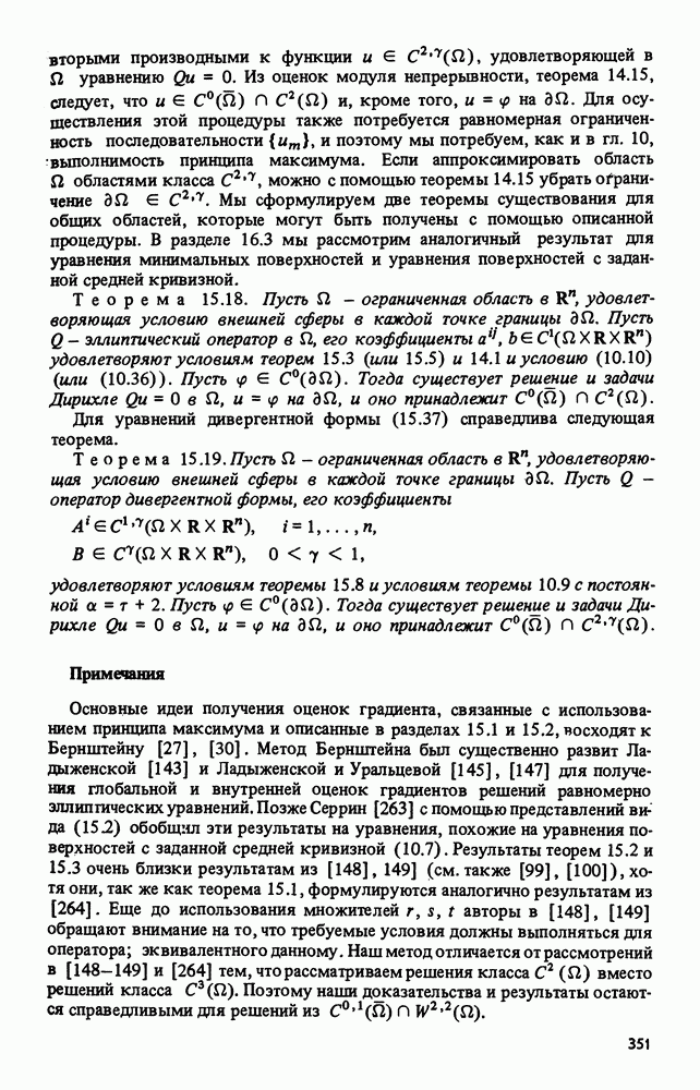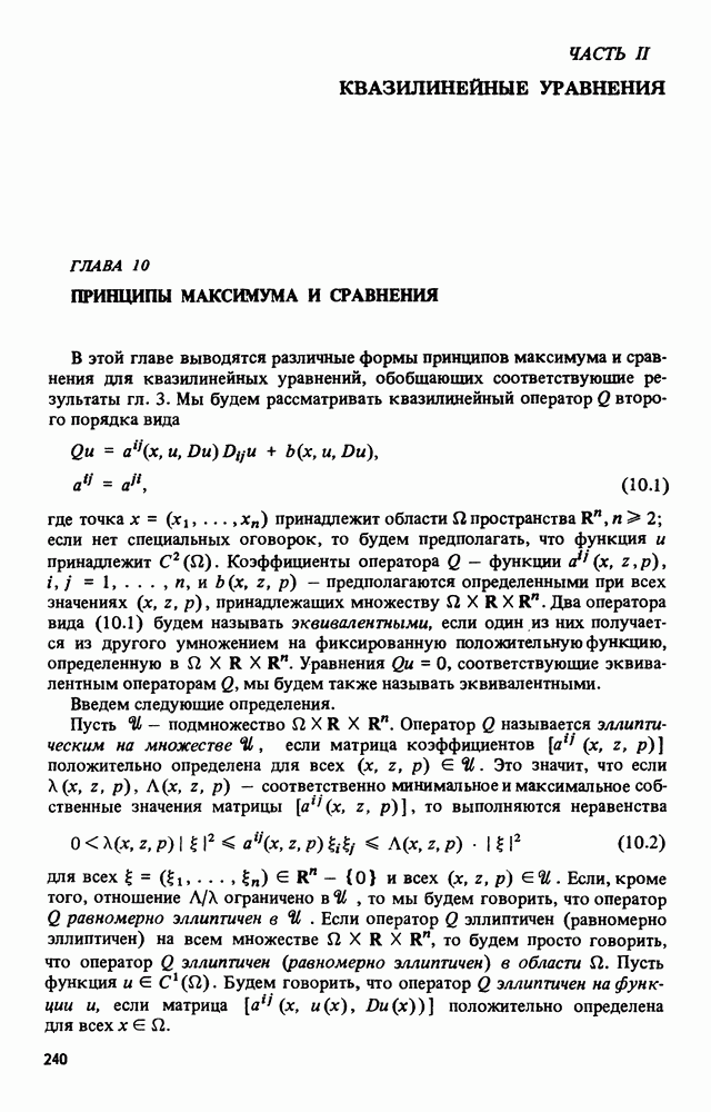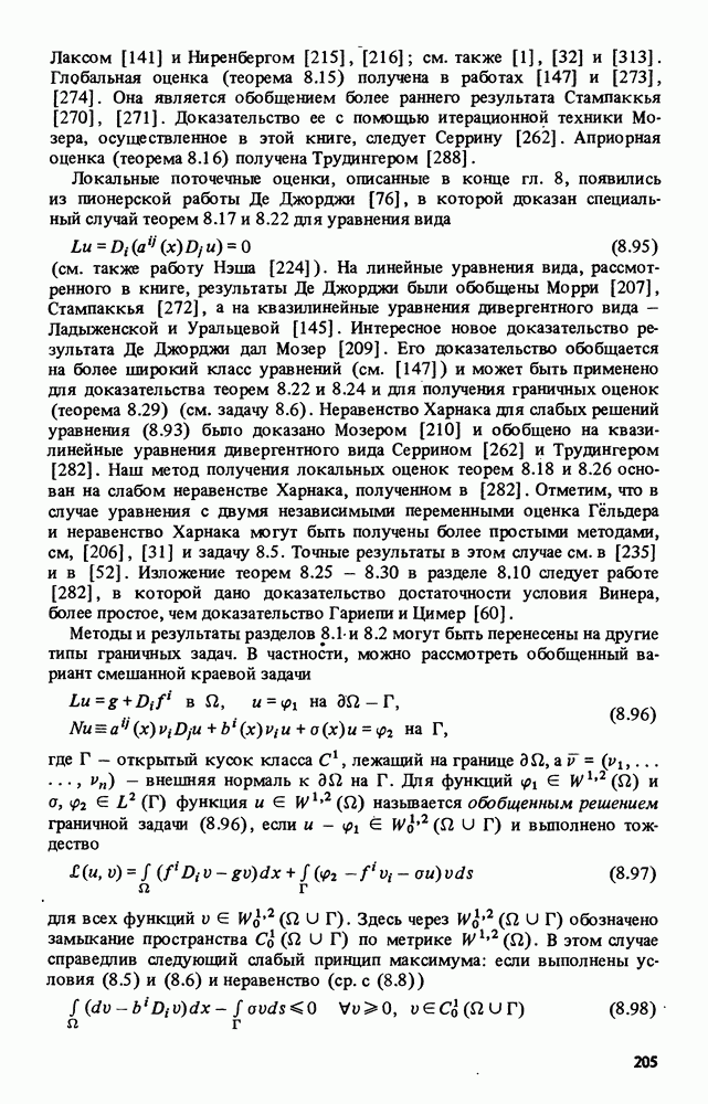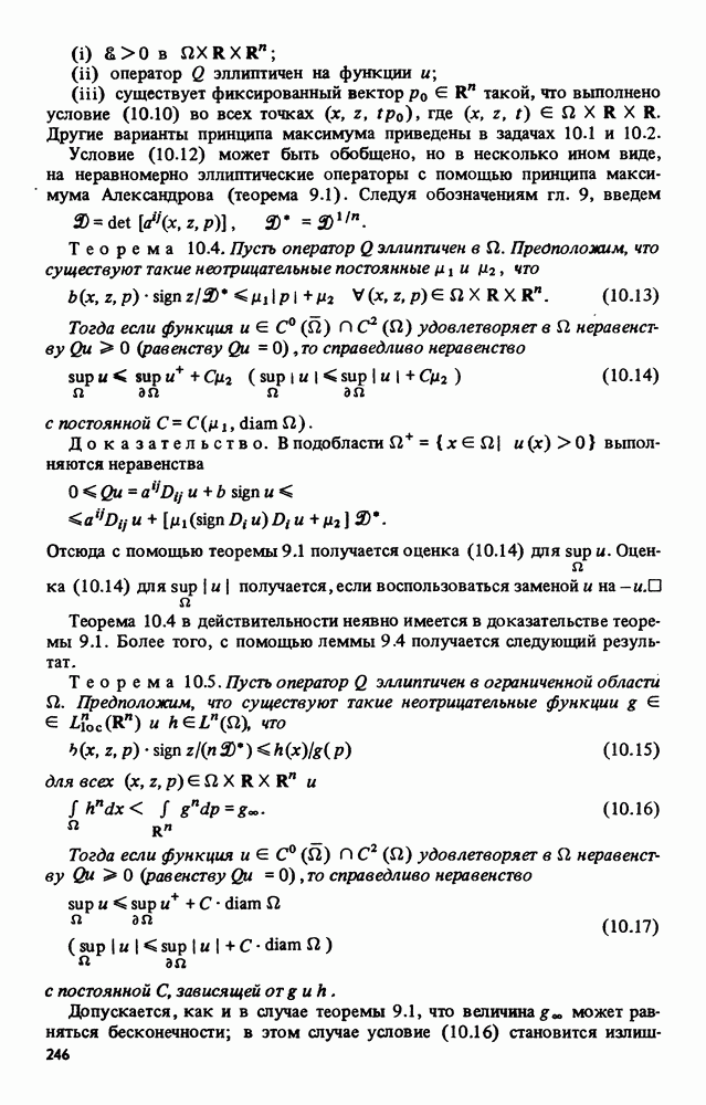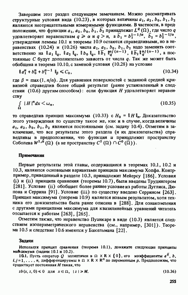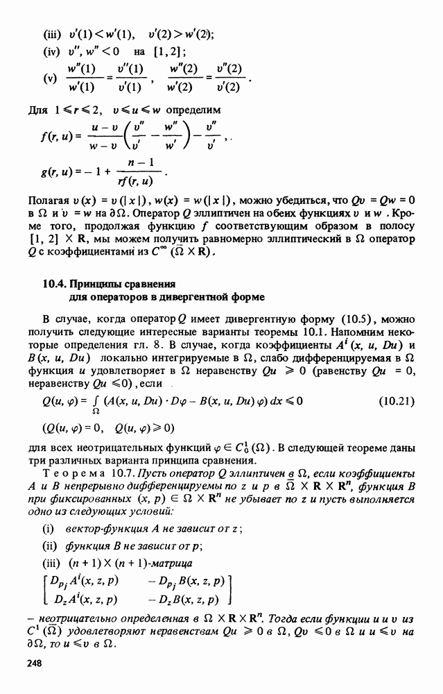 обобщает более раннее условие из работы Дуглиса, Дюпона и Серрина [91]. Условие (iii) по существу введено Серрином [263]. Принцип максимума (теорема 10.9) является новым результатом, хотя техника его доказательства была ранее описана в [288]. Для ознакомления с другими принципами максимума для квазилинейных уравнений читатель отсылается к работам [263], [265].