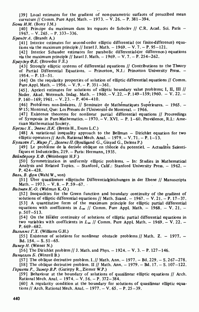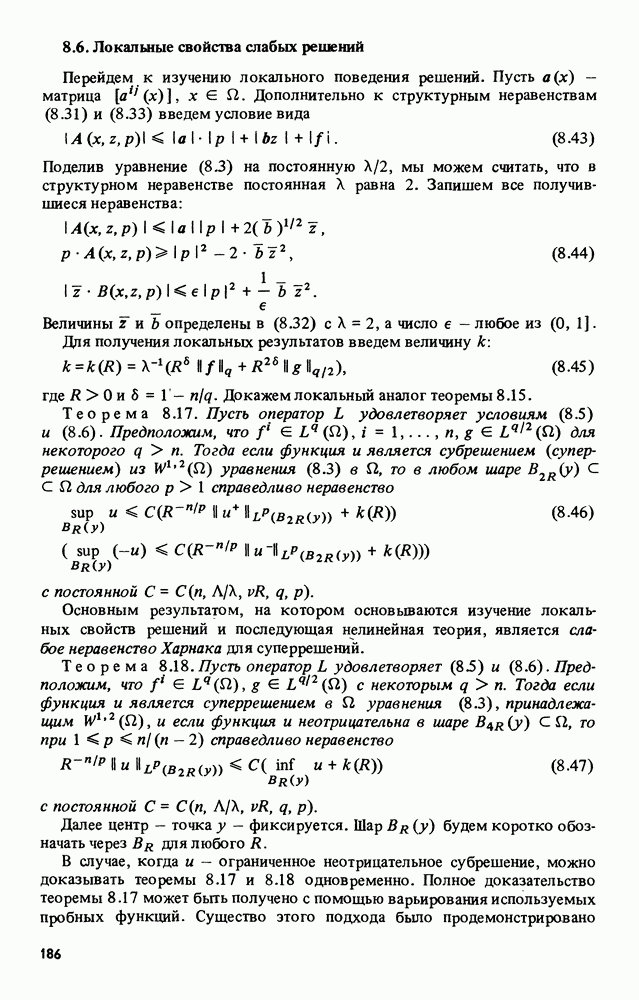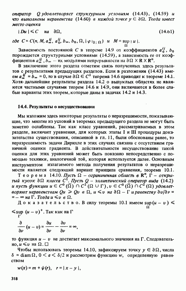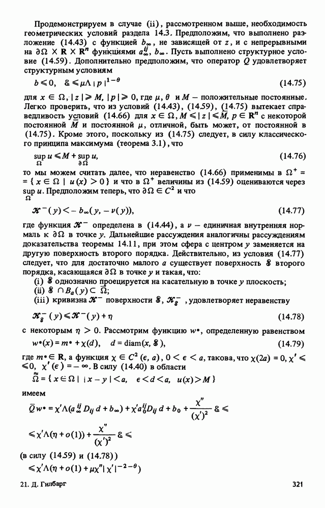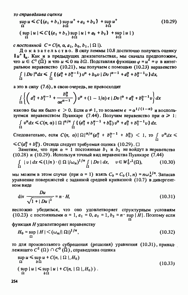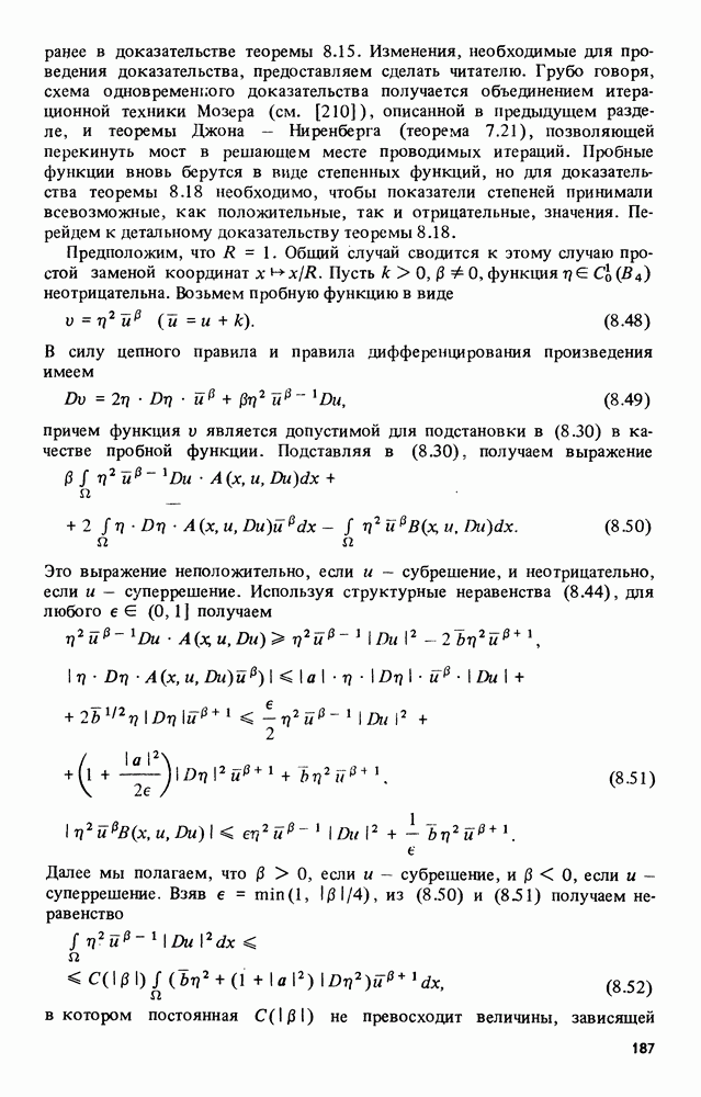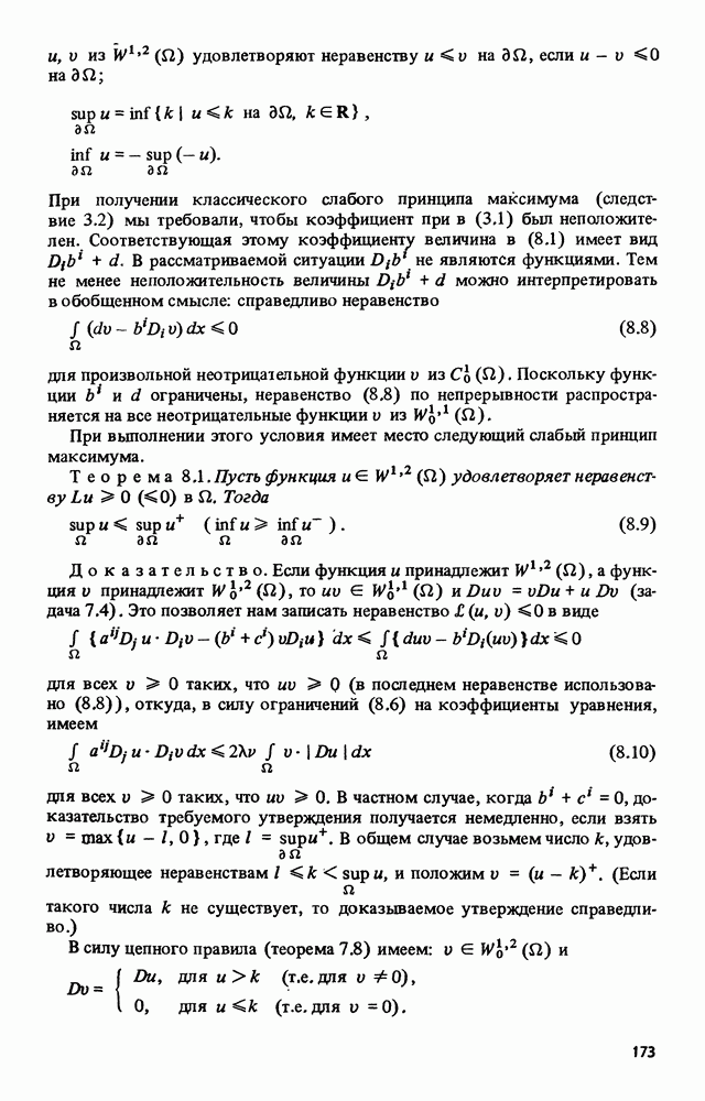 обобщает более раннее условие из работы Дуглиса, Дюпона и Серрина [91]. Условие (iii) по существу введено Серрином [263]. Принцип максимума (теорема 10.9) является новым результатом, хотя техника его доказательства была ранее описана в [288]. Для ознакомления с другими принципами максимума для квазилинейных уравнений читатель отсылается к работам [263], [265].