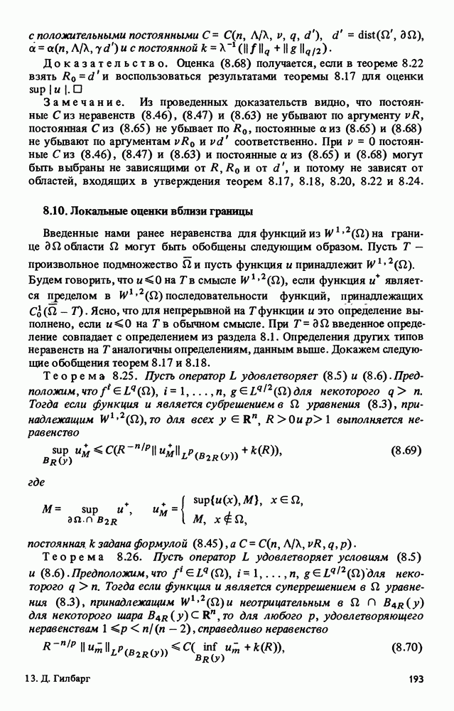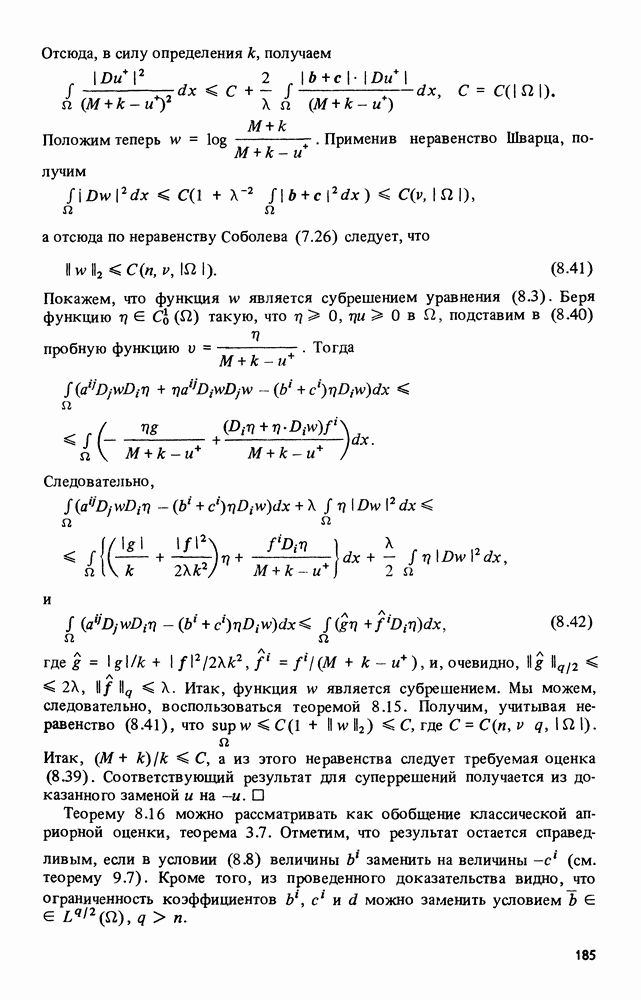 Используя лемму 10.8, можно теперь получить априорные оценки для субрешений и решений уравнения
