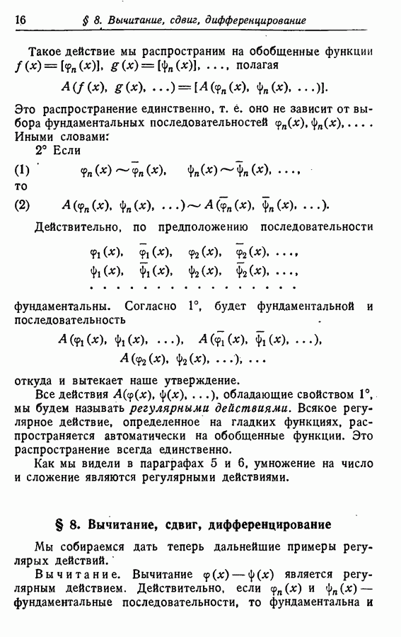 также являются фундаментальными последовательностями, поскольку умножение на гладкую функцию является регулярным действием. Таким образом, числитель в формуле (2) является фундаментальной последовательностью, как сумма фундаментальных последовательностей. Наконец, вся дробь в правой части является фундаментальной последовательностью, поскольку