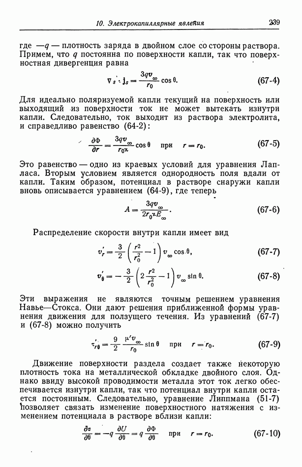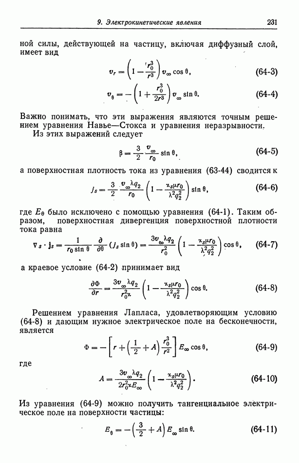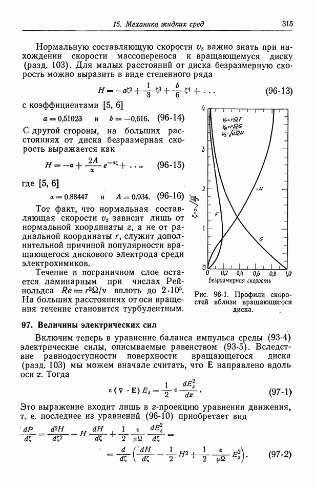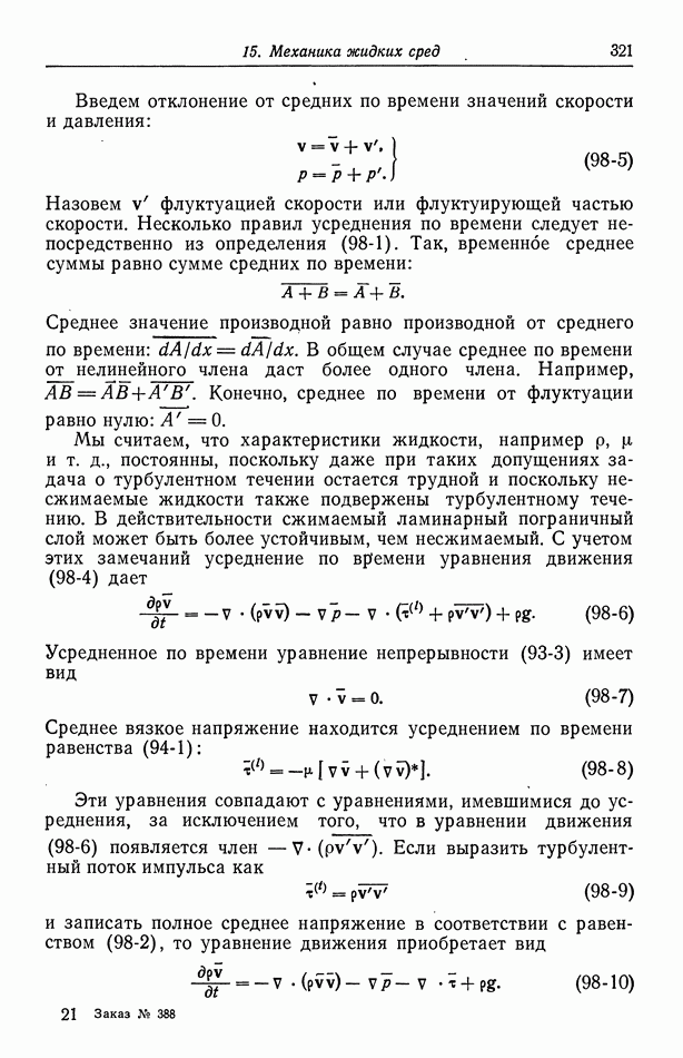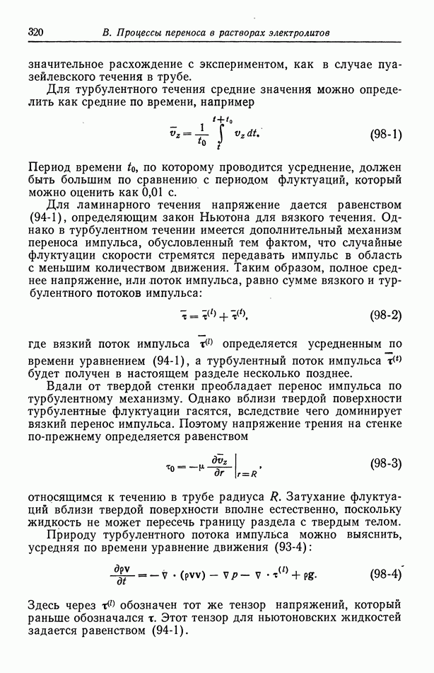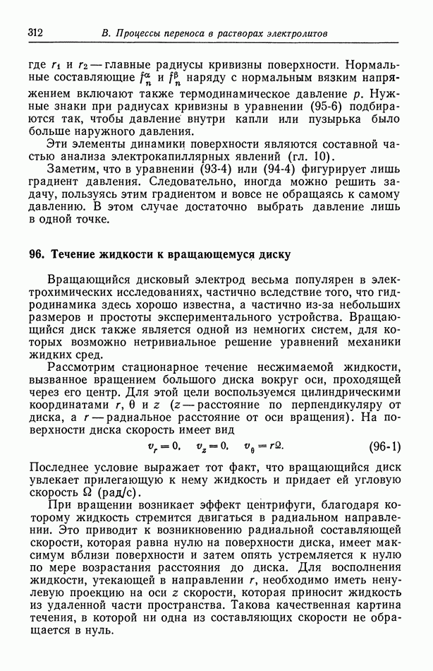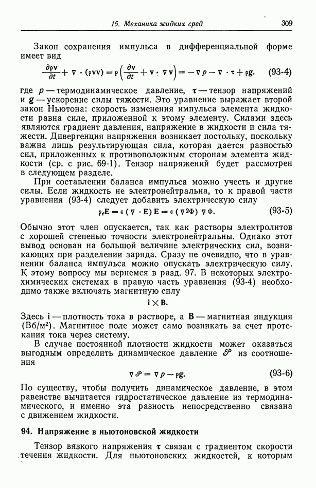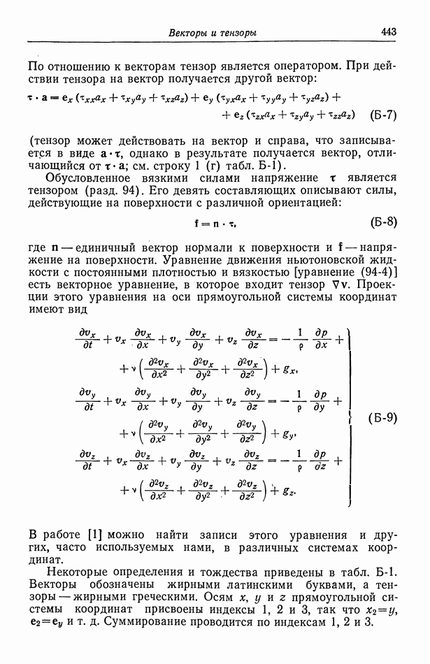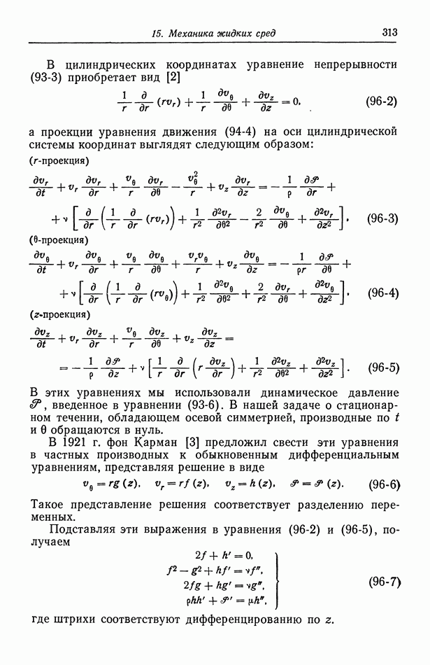 кинематическая вязкость жидкости. Это уравнение, известное под названием уравнения Навье-Стокса, записано в прямоугольных координатах в приложении Б и в цилиндрических координатах в разд. 96.