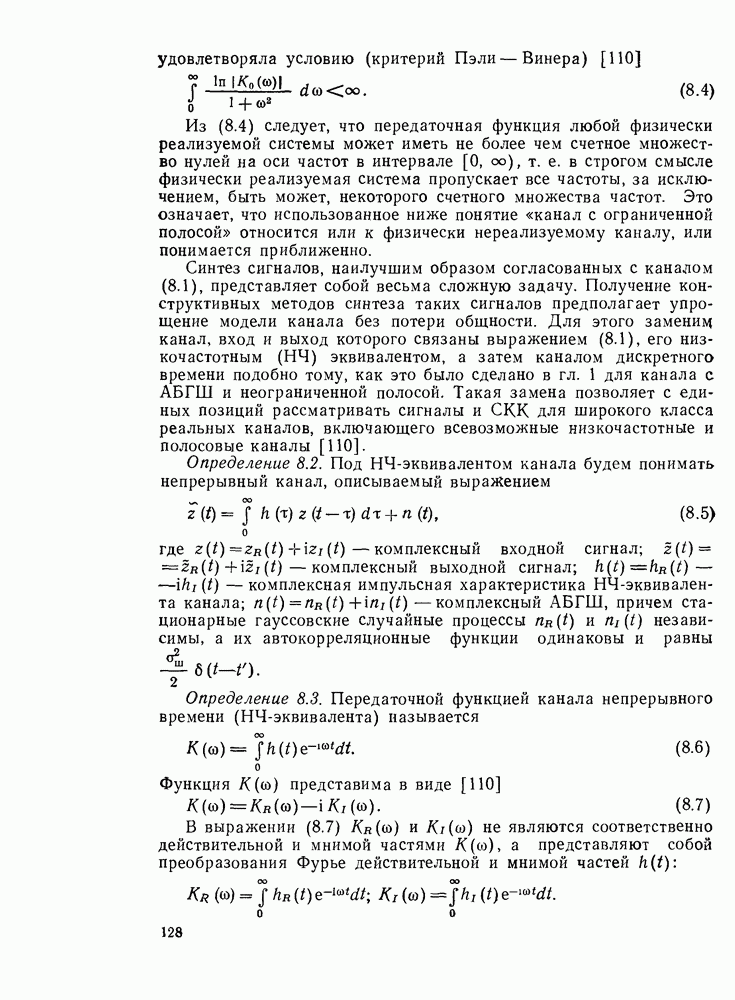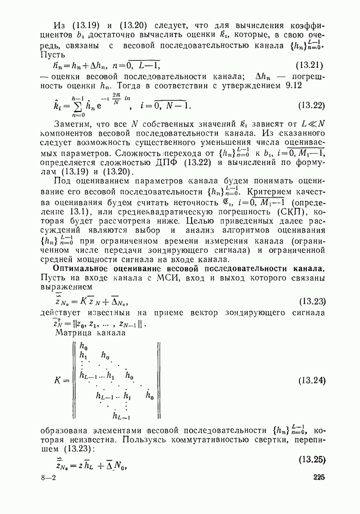 Именно выражение (8.18) используется в дальнейшем для описания канала, причем в гл. 9—12 весовая последовательность Каналу дискретного времени (8.19) соответствует частотная характеристика (передаточная функция)