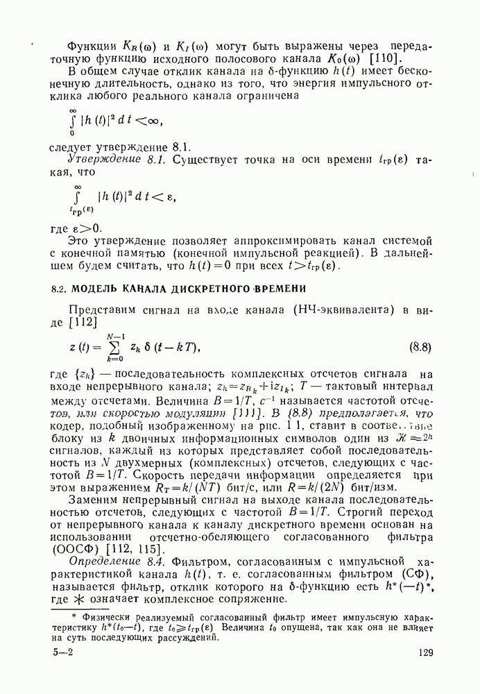 Справедливо следующее утверждение. Утверждение 8.2. Пусть передаточная функция приемного фильтра определяется выражением