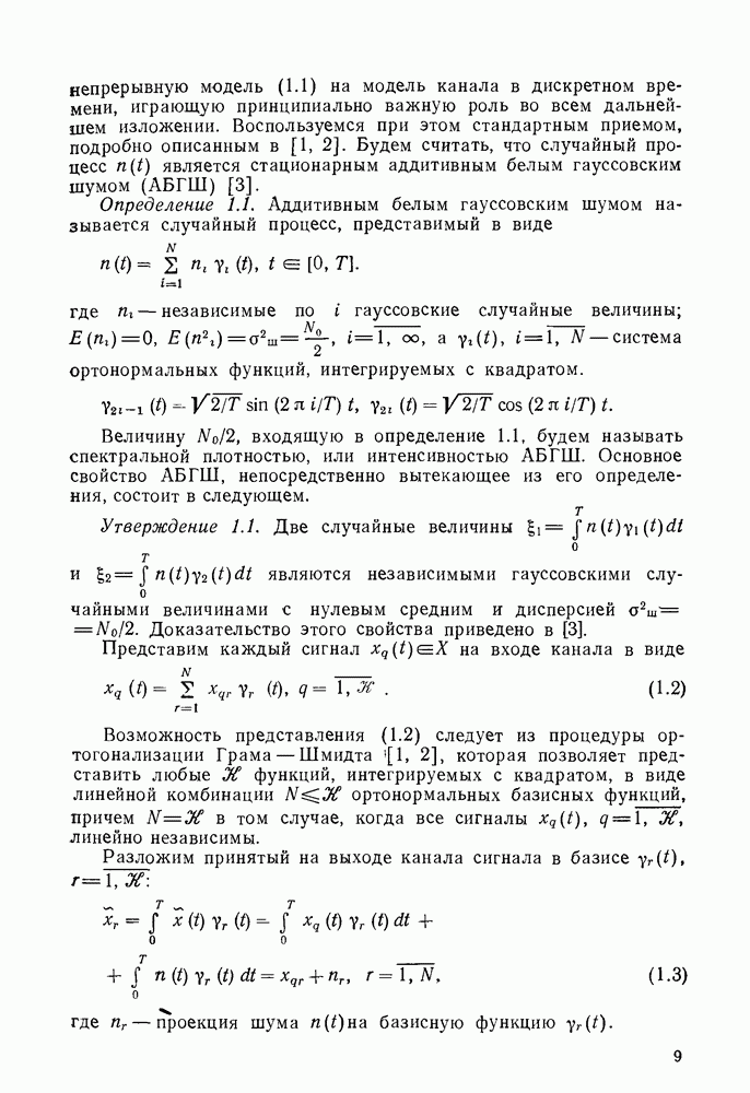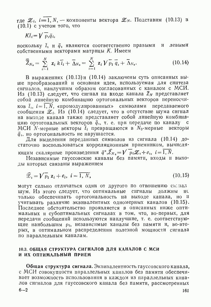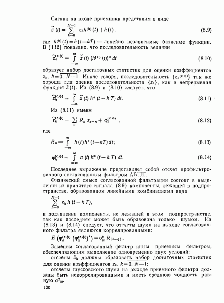 Последнее выражение представляет собой отсчет профильтрованного согласованным фильтром АБГШ. Физический смысл согласованной фильтрации состоит в выделении из принятого сигнала (8 9) компоненты, лежащей в подпространстве, образованном линейными комбинациями вида