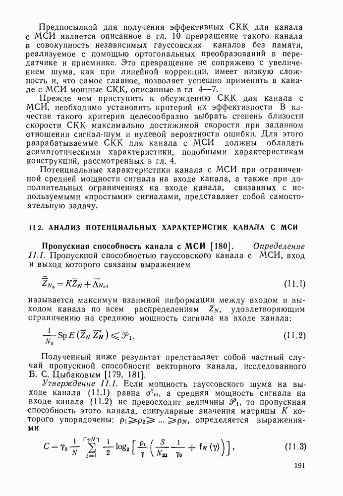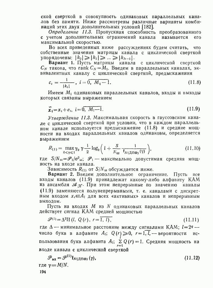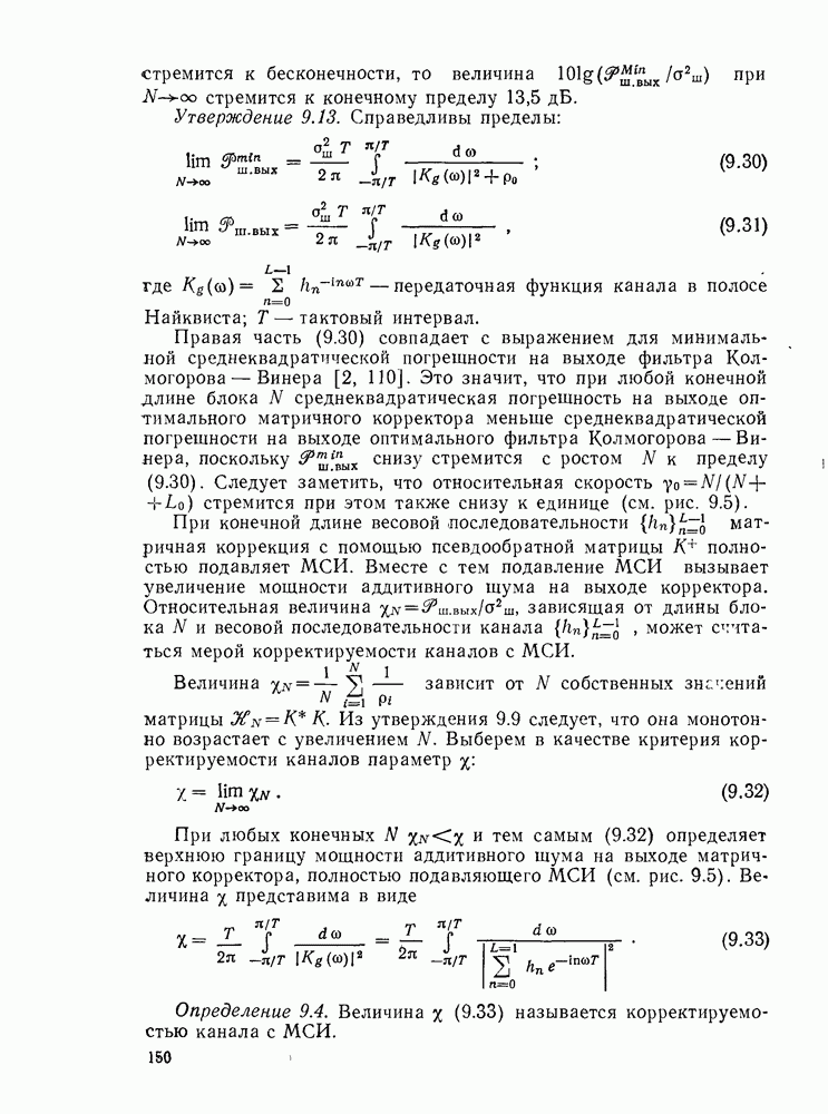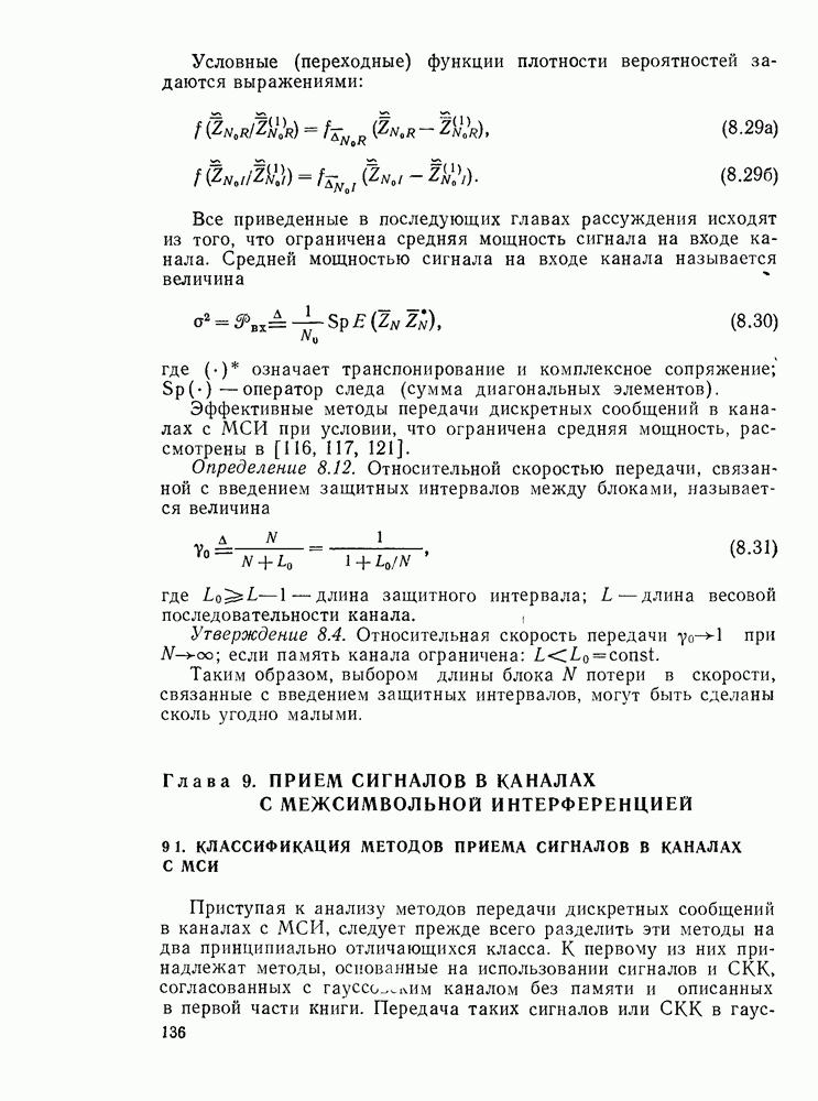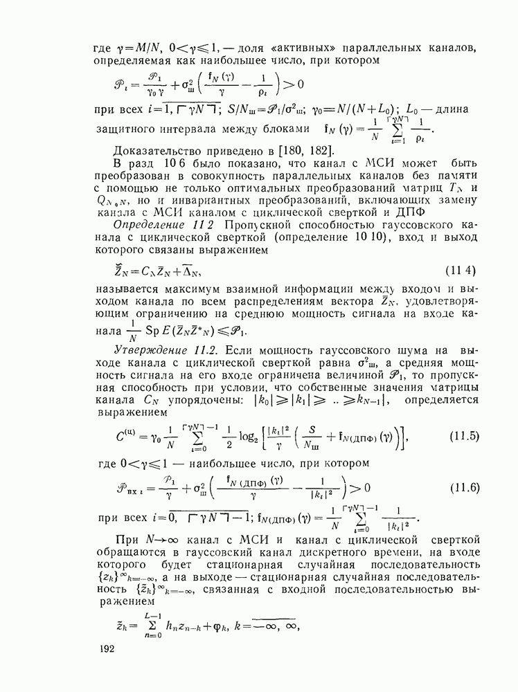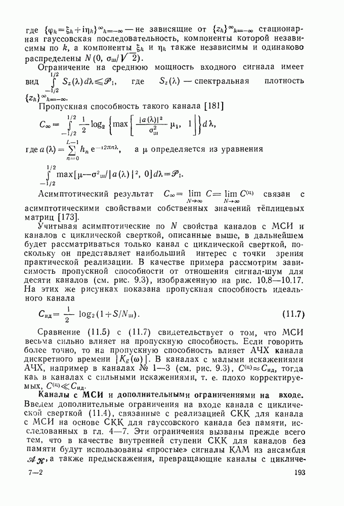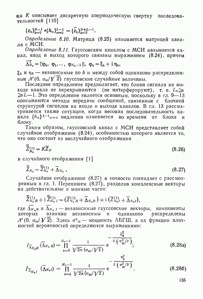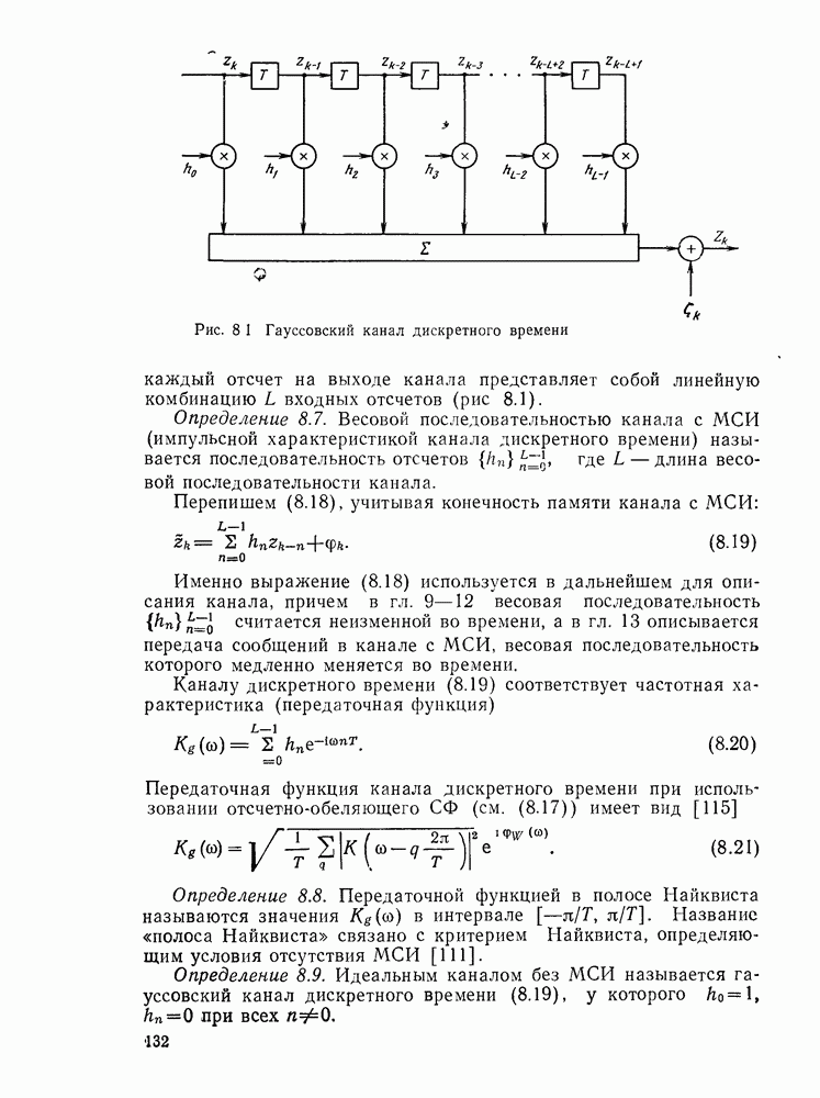 Определение 8.8. Передаточной функцией в полосе Найквиста называются значения Определение 8.9. Идеальным каналом без МСИ называется гауссовский канал дискретного времени (8.19), у которого При рассмотрении каналов с МСИ будем считать весовую последовательность