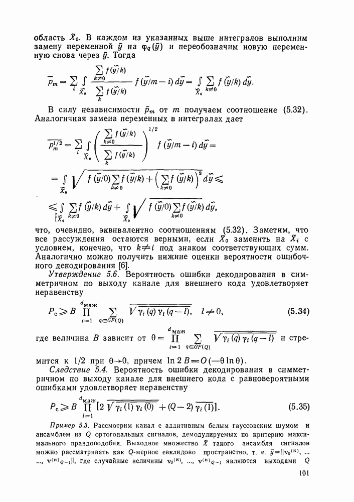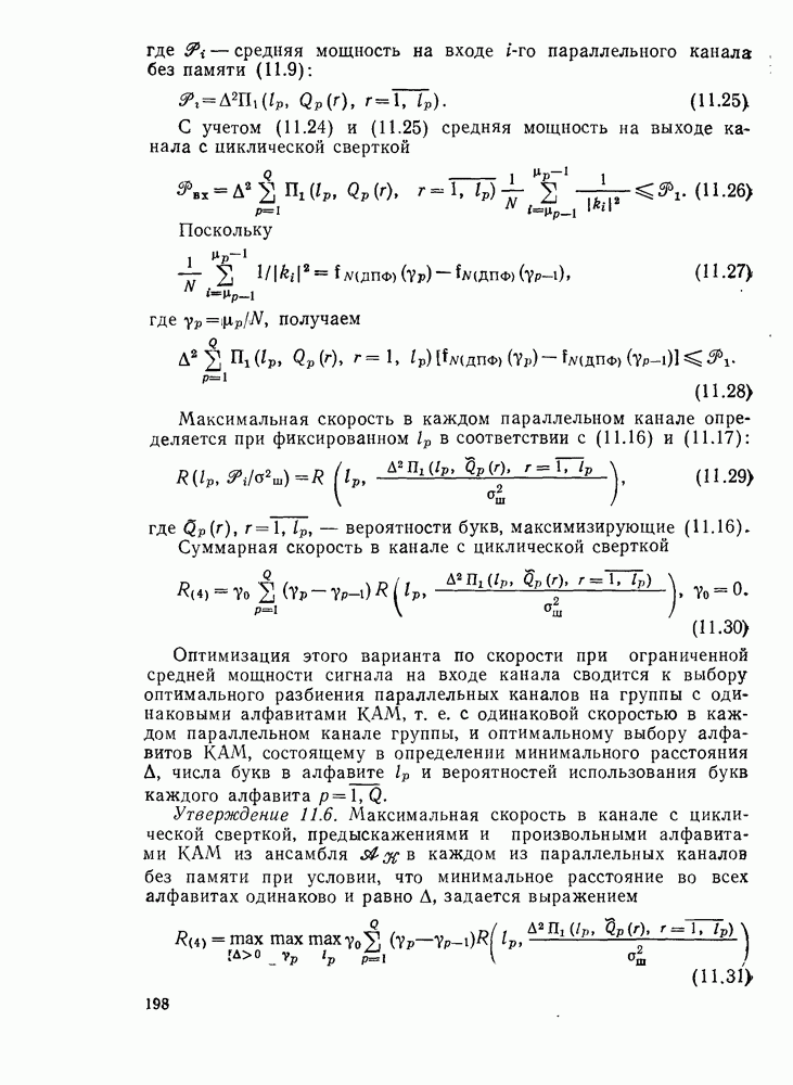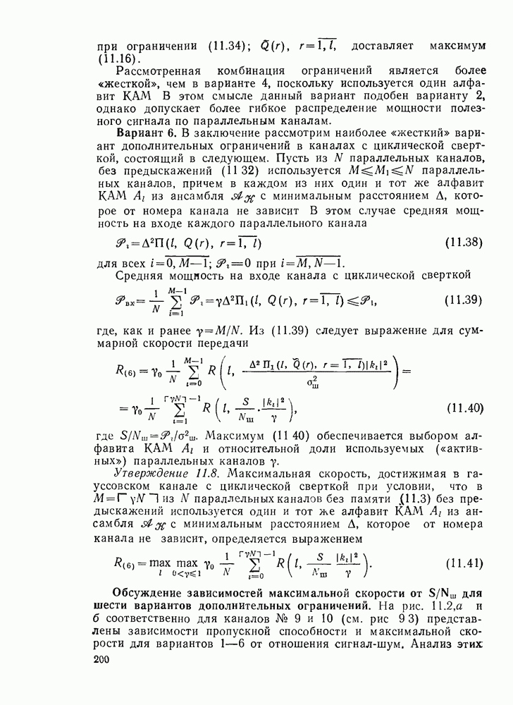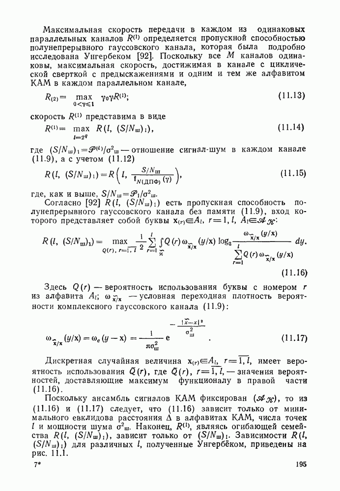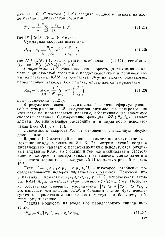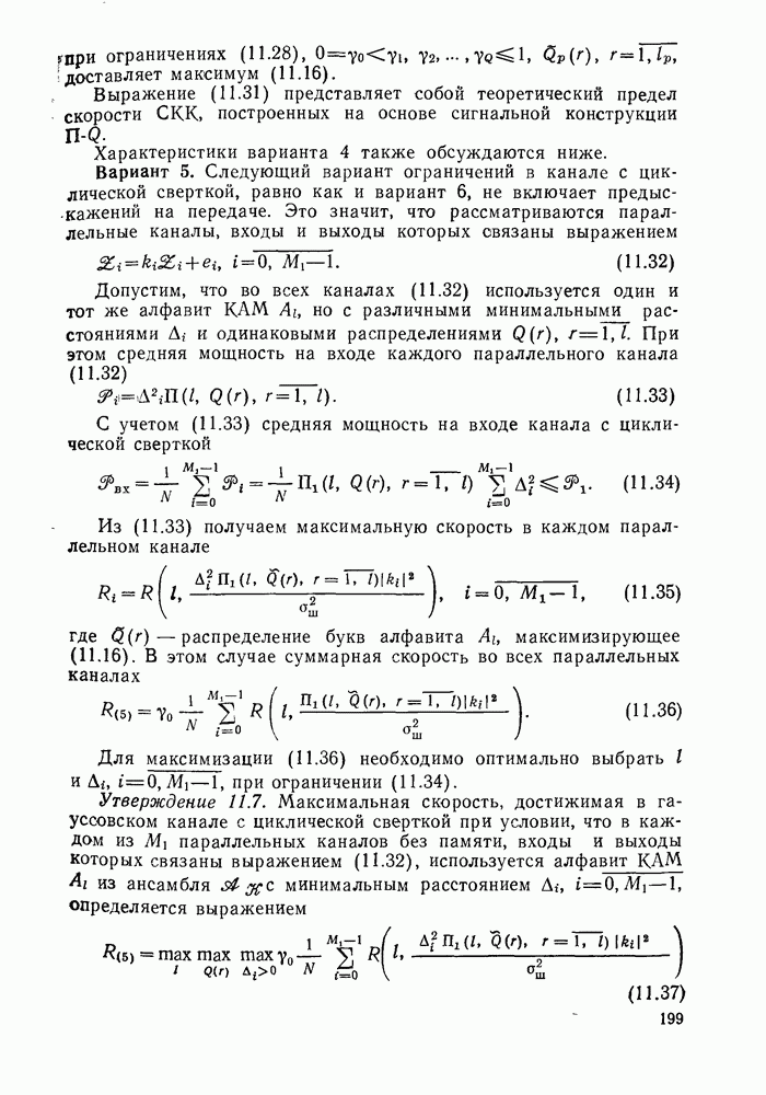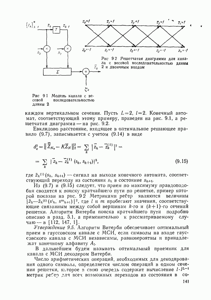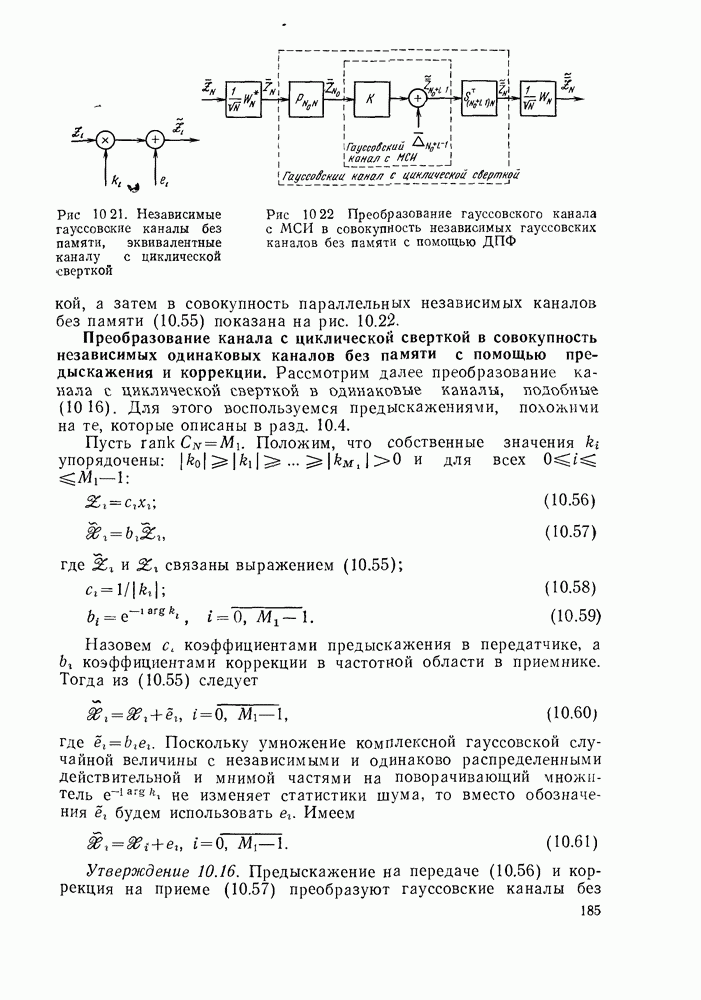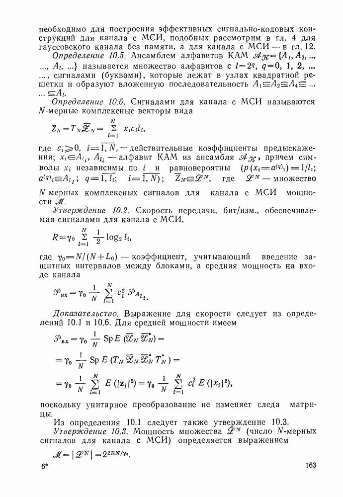 Определение 8.8. Передаточной функцией в полосе Найквиста называются значения Определение 8.9. Идеальным каналом без МСИ называется гауссовский канал дискретного времени (8.19), у которого При рассмотрении каналов с МСИ будем считать весовую последовательность