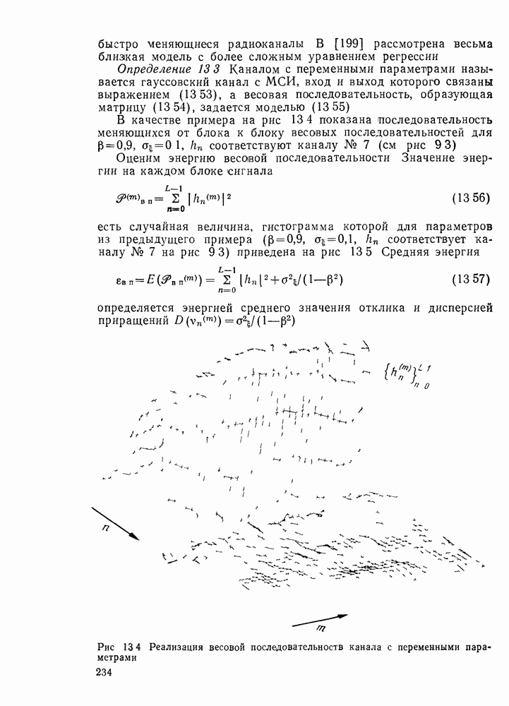 Рис. 8.1 Гауссовский канал дискретного времени каждый отсчет на выходе канала представляет собой линейную комбинацию Определение 8.7. Весовой последовательностью канала с МСИ (импульсной характеристикой канала дискретного времени) называется последовательность отсчетов Перепишем (8.18), учитывая конечность памяти канала с МСИ: