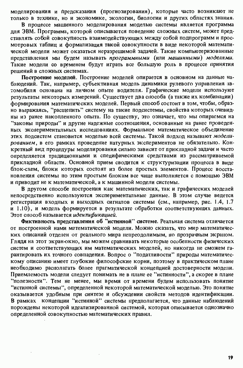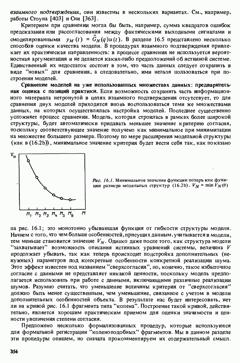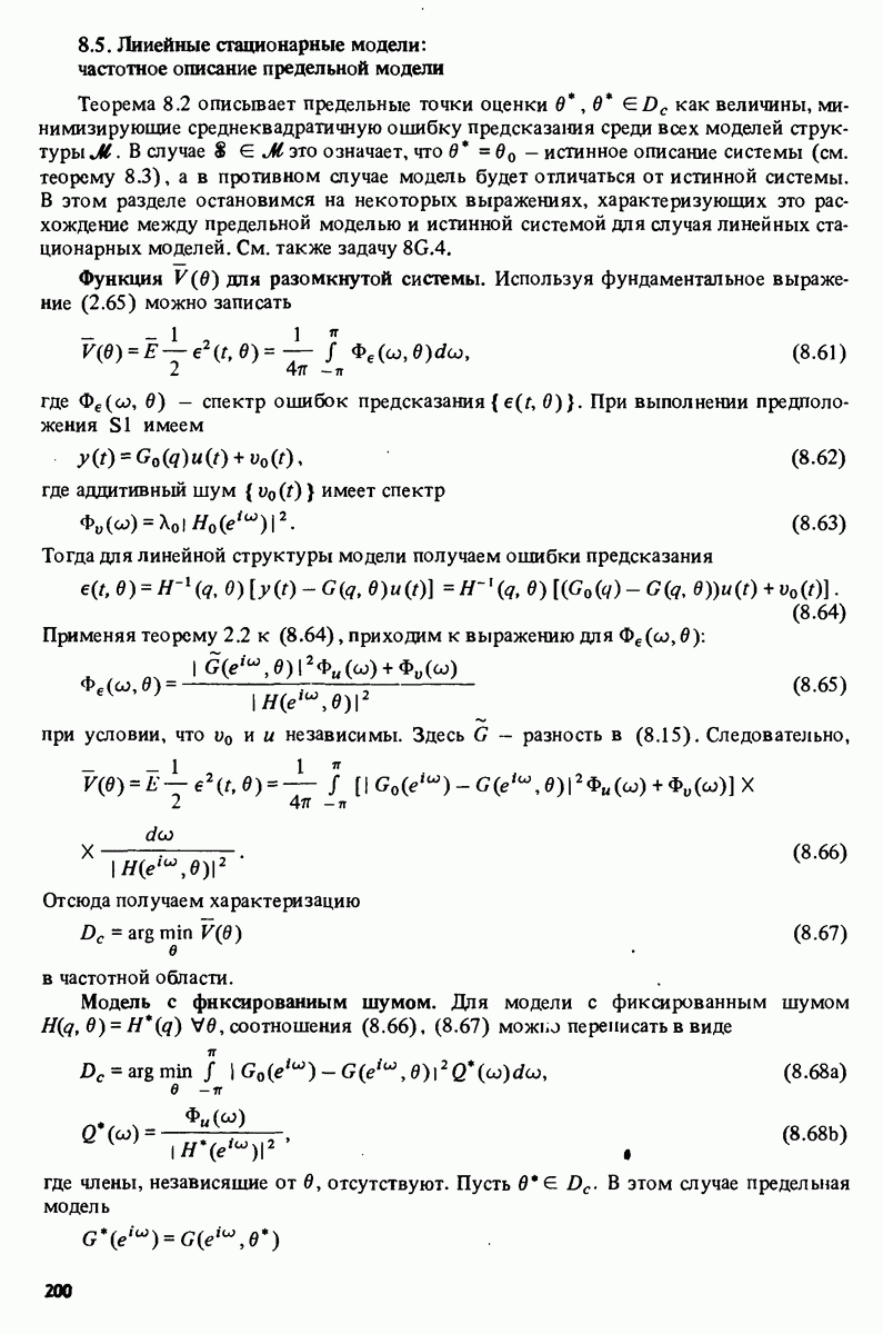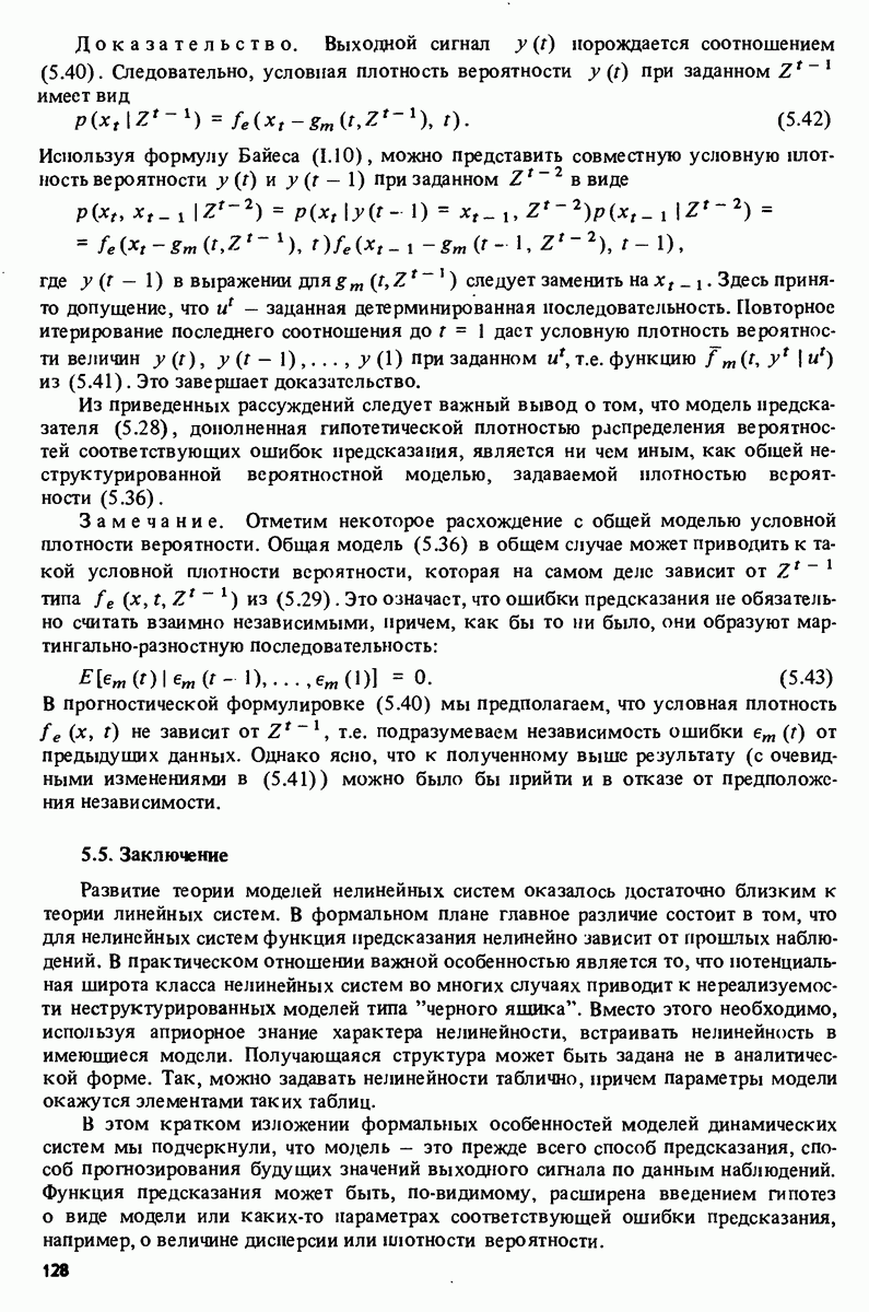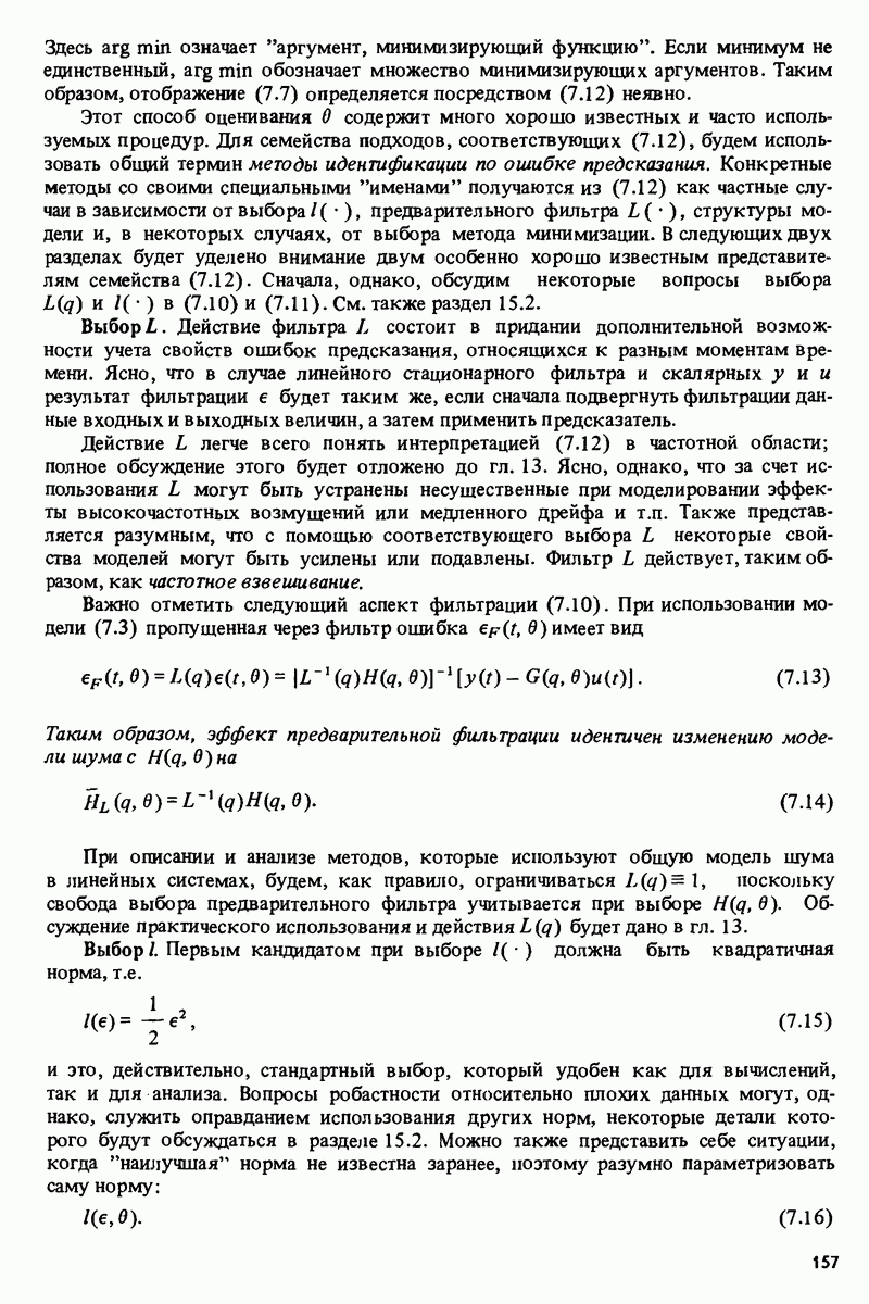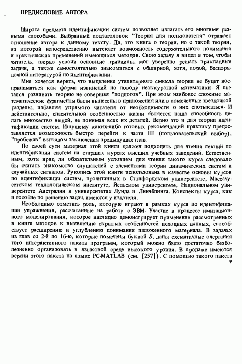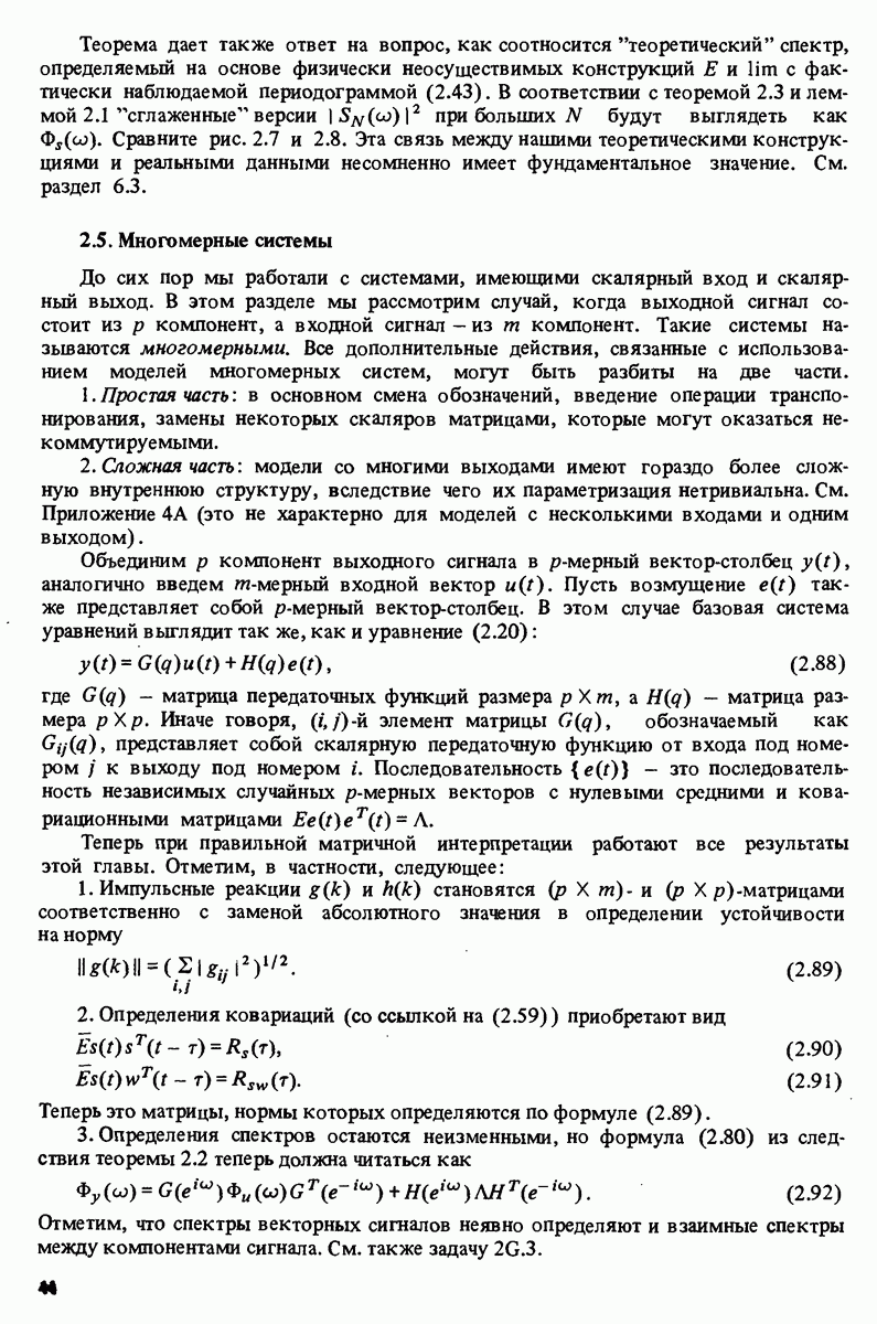 Можно использовать физическую параметризацию динамики системы в сочетании с формальной (по методу черного ящика) параметризацией характеристик шума такой, например, как непосредственная параметризация формы обновлений (4,88), или принимая такую модель шума, которая также является физически параметризованной с помощью соотношений (4.93)-(4,96). Наконец, мы можем использовать структуры черного ящика в пространстве состояний, как скажем, в примере 4.2. В этом случае описание входо-выходного соответствия моделью черного ящика имеет преимущество гибкости в выборе такого представления, которое может обеспечить достижение лучших количественных характеристик процесса параметризации (задача 16Е.1).