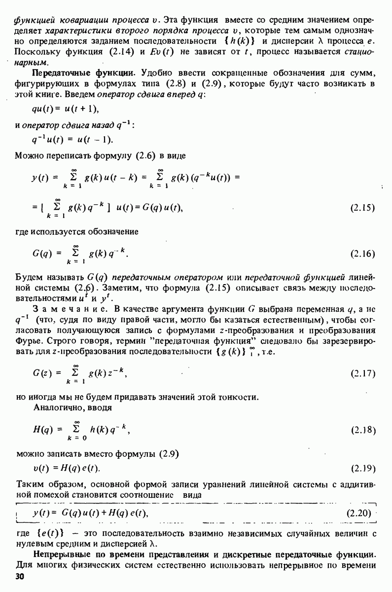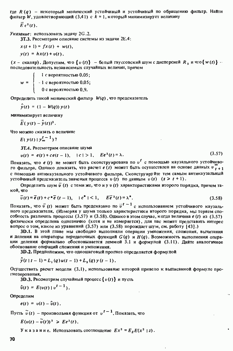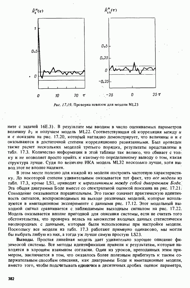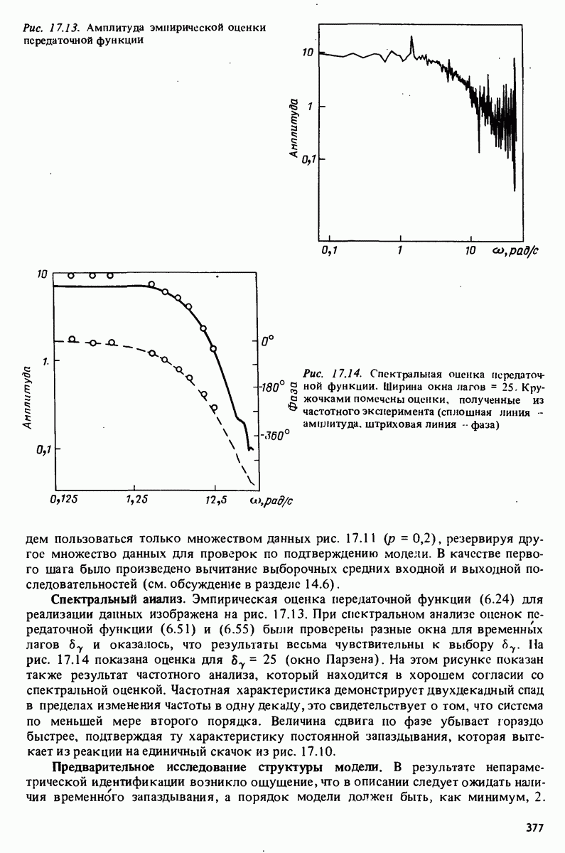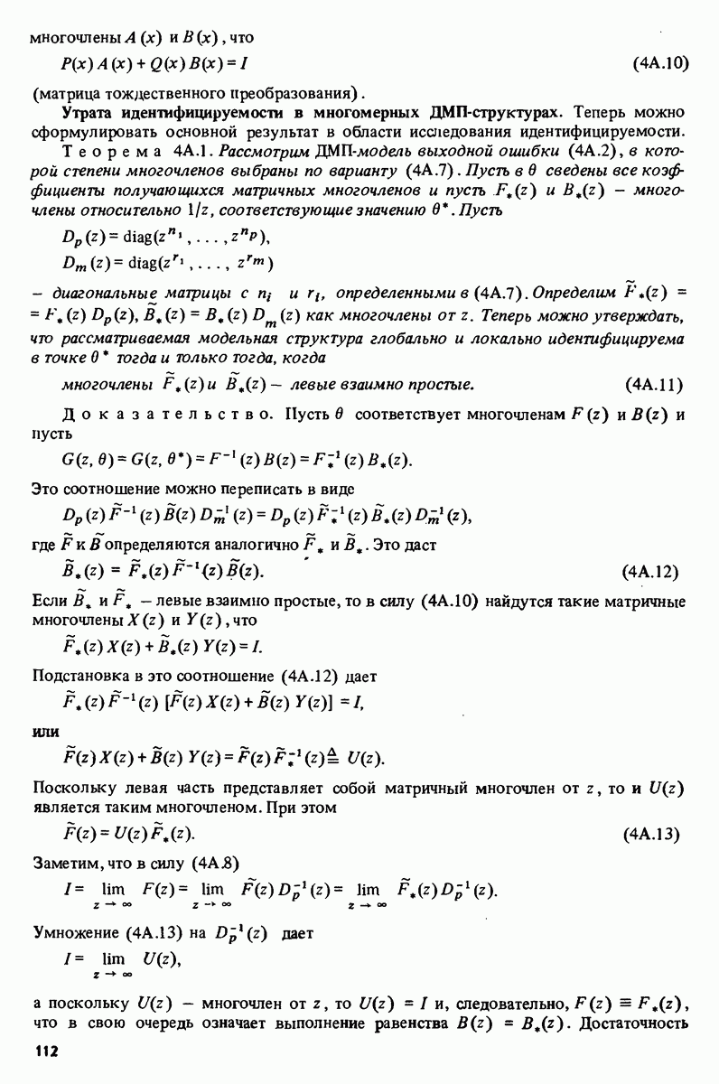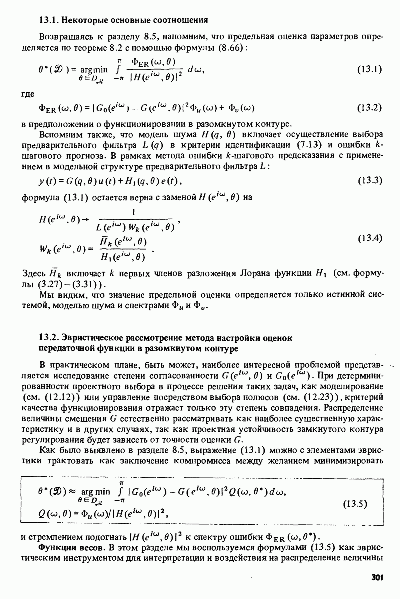 Можно использовать физическую параметризацию динамики системы в сочетании с формальной (по методу черного ящика) параметризацией характеристик шума такой, например, как непосредственная параметризация формы обновлений (4,88), или принимая такую модель шума, которая также является физически параметризованной с помощью соотношений (4.93)-(4,96). Наконец, мы можем использовать структуры черного ящика в пространстве состояний, как скажем, в примере 4.2. В этом случае описание входо-выходного соответствия моделью черного ящика имеет преимущество гибкости в выборе такого представления, которое может обеспечить достижение лучших количественных характеристик процесса параметризации (задача 16Е.1).