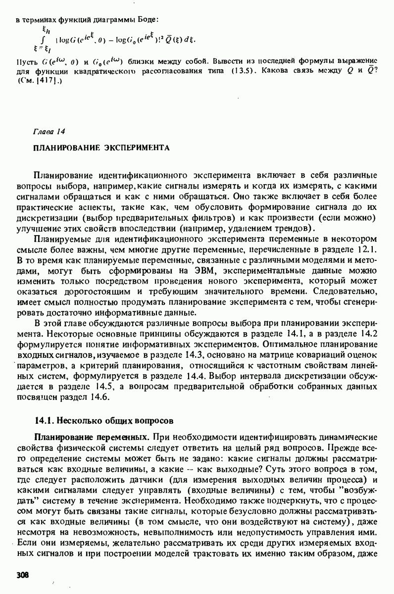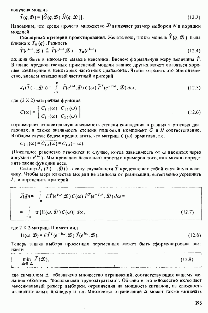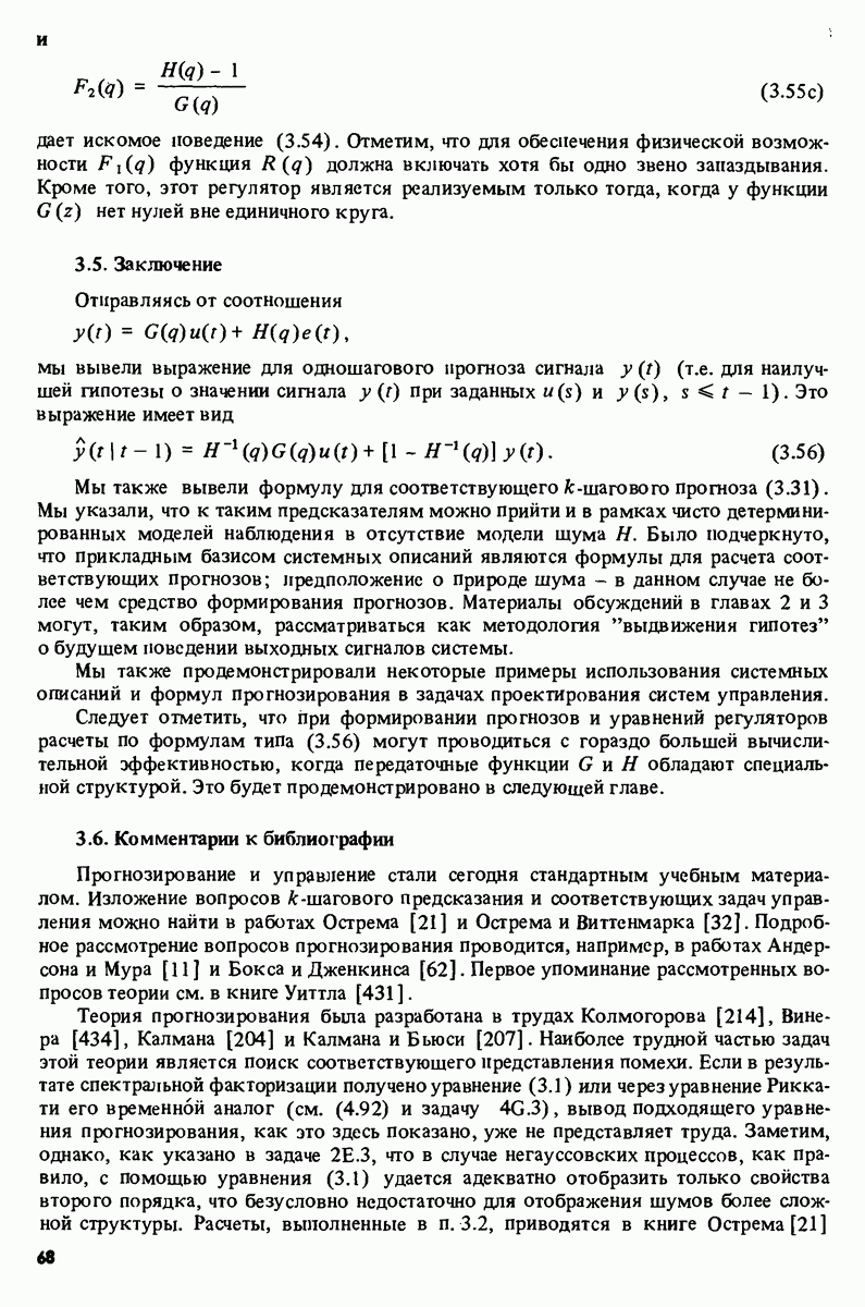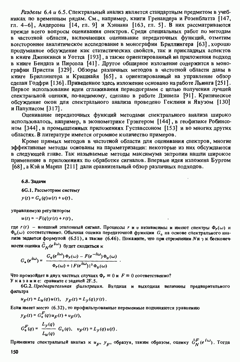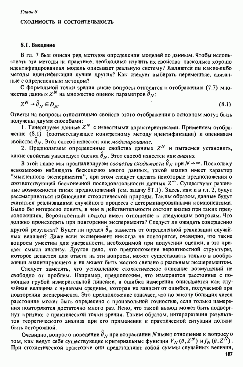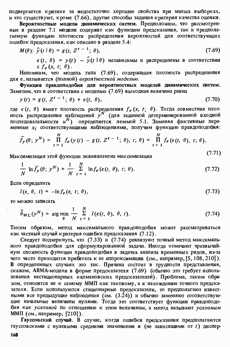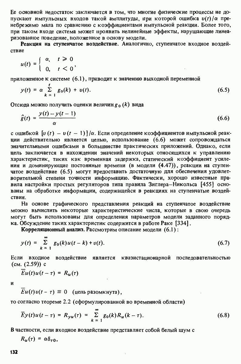 Можно использовать физическую параметризацию динамики системы в сочетании с формальной (по методу черного ящика) параметризацией характеристик шума такой, например, как непосредственная параметризация формы обновлений (4,88), или принимая такую модель шума, которая также является физически параметризованной с помощью соотношений (4.93)-(4,96). Наконец, мы можем использовать структуры черного ящика в пространстве состояний, как скажем, в примере 4.2. В этом случае описание входо-выходного соответствия моделью черного ящика имеет преимущество гибкости в выборе такого представления, которое может обеспечить достижение лучших количественных характеристик процесса параметризации (задача 16Е.1).
