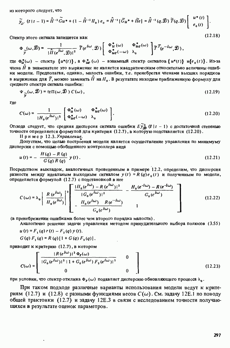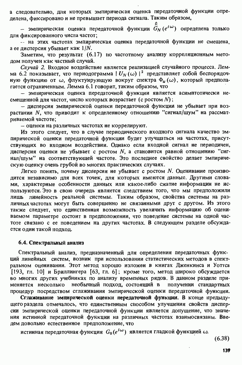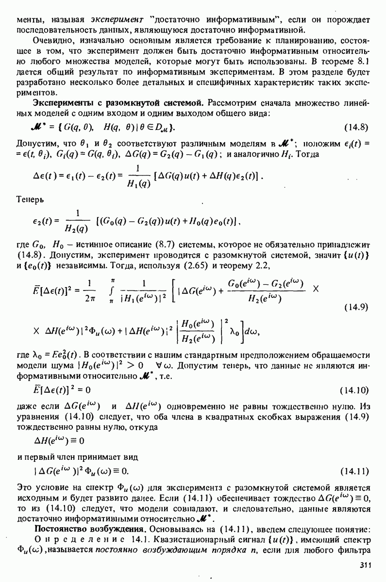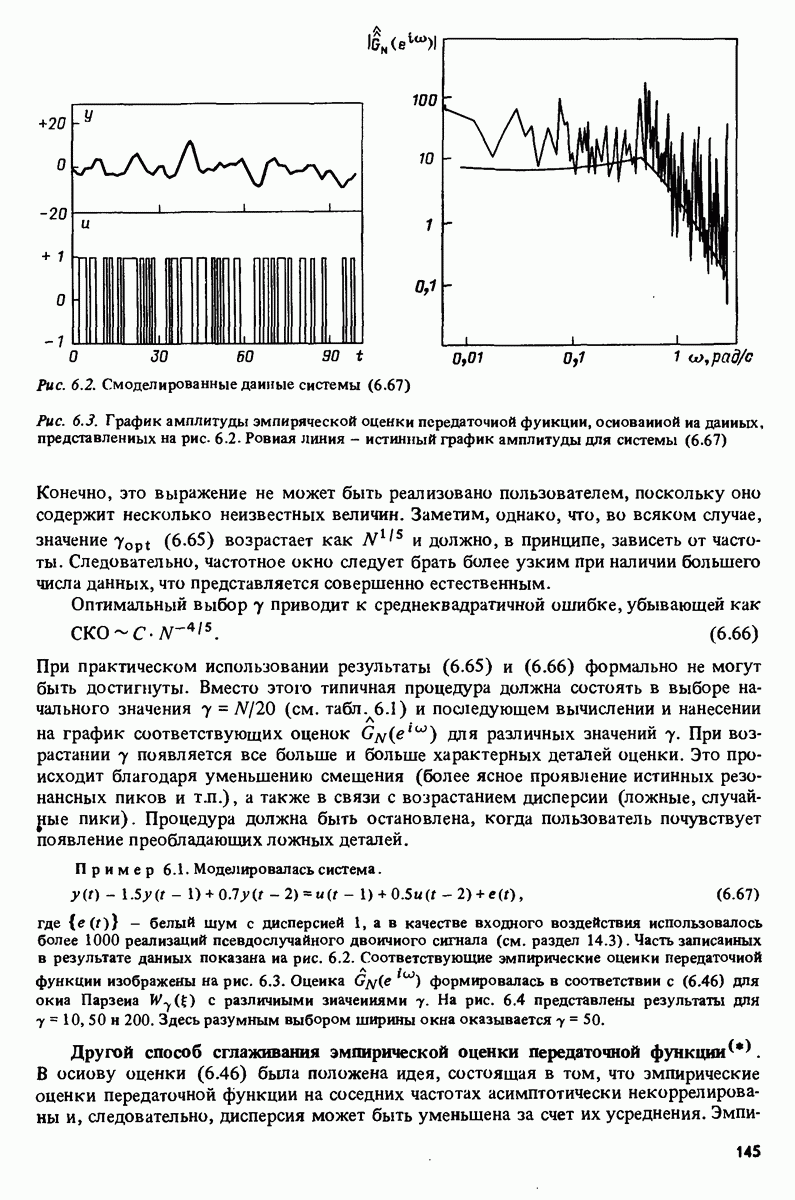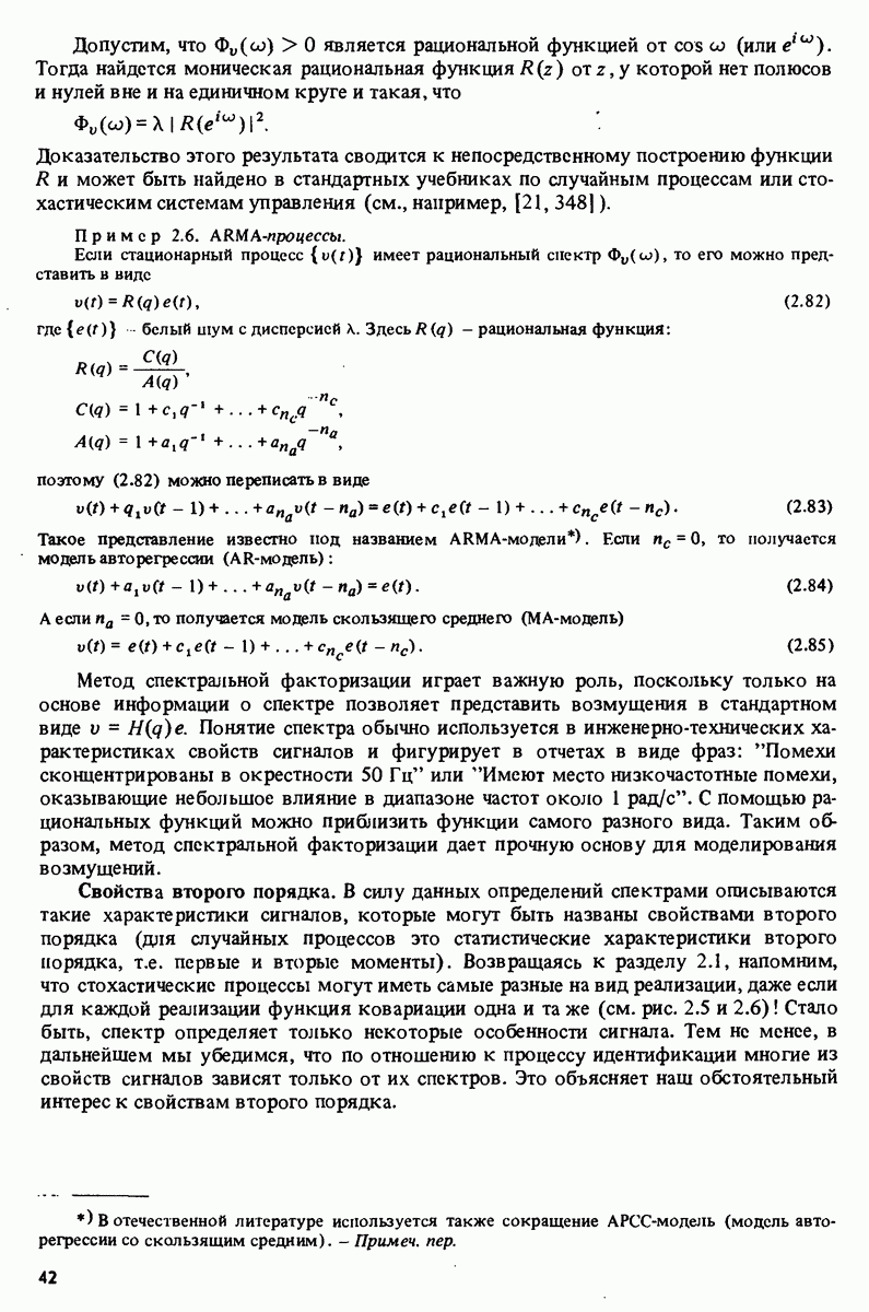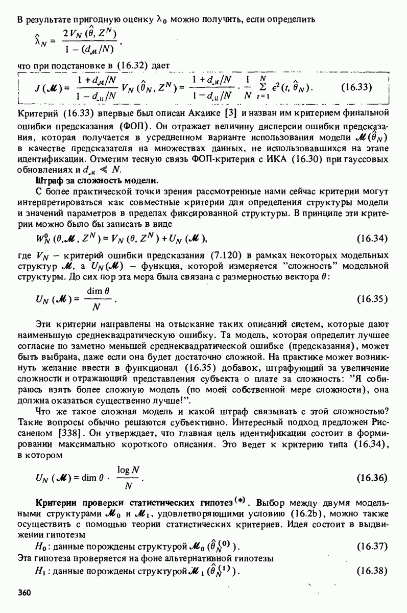 Можно использовать физическую параметризацию динамики системы в сочетании с формальной (по методу черного ящика) параметризацией характеристик шума такой, например, как непосредственная параметризация формы обновлений (4,88), или принимая такую модель шума, которая также является физически параметризованной с помощью соотношений (4.93)-(4,96). Наконец, мы можем использовать структуры черного ящика в пространстве состояний, как скажем, в примере 4.2. В этом случае описание входо-выходного соответствия моделью черного ящика имеет преимущество гибкости в выборе такого представления, которое может обеспечить достижение лучших количественных характеристик процесса параметризации (задача 16Е.1).