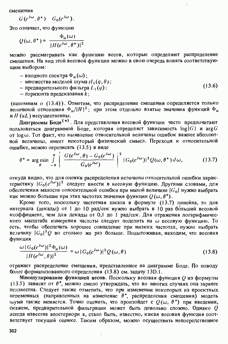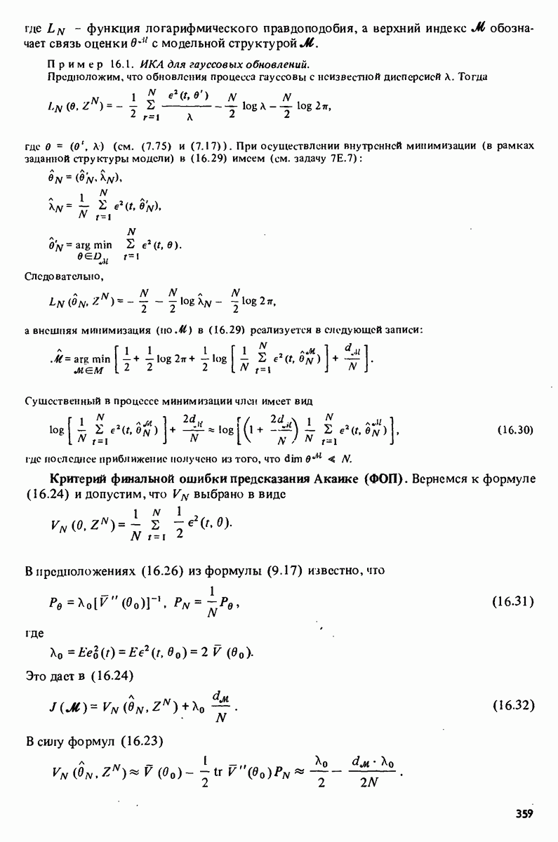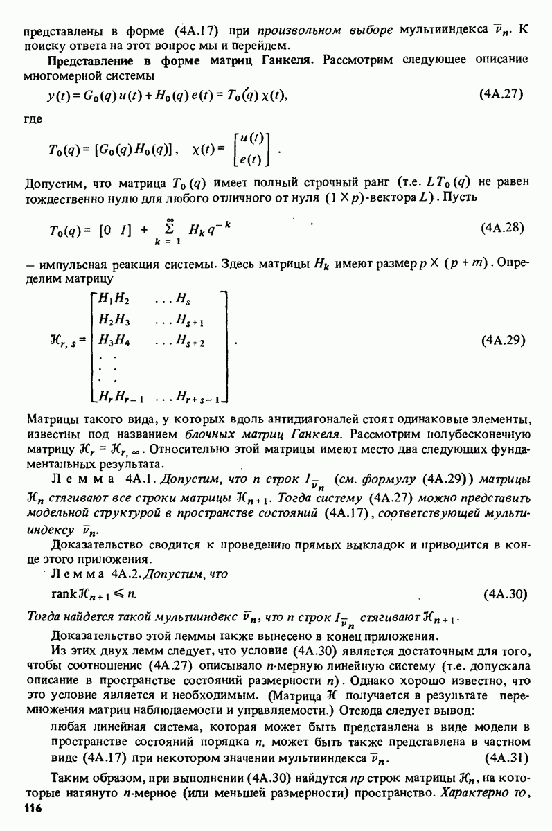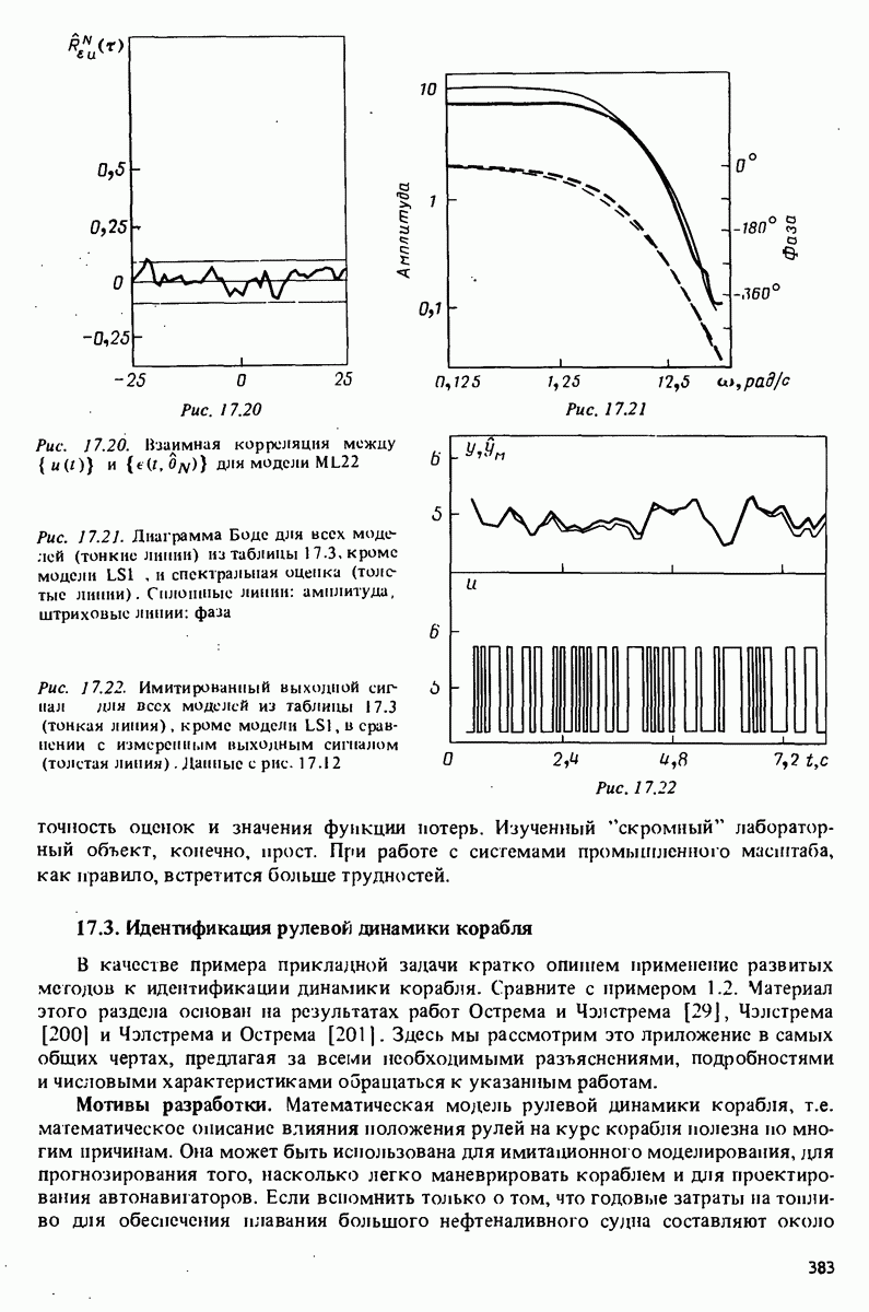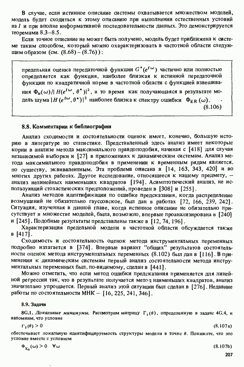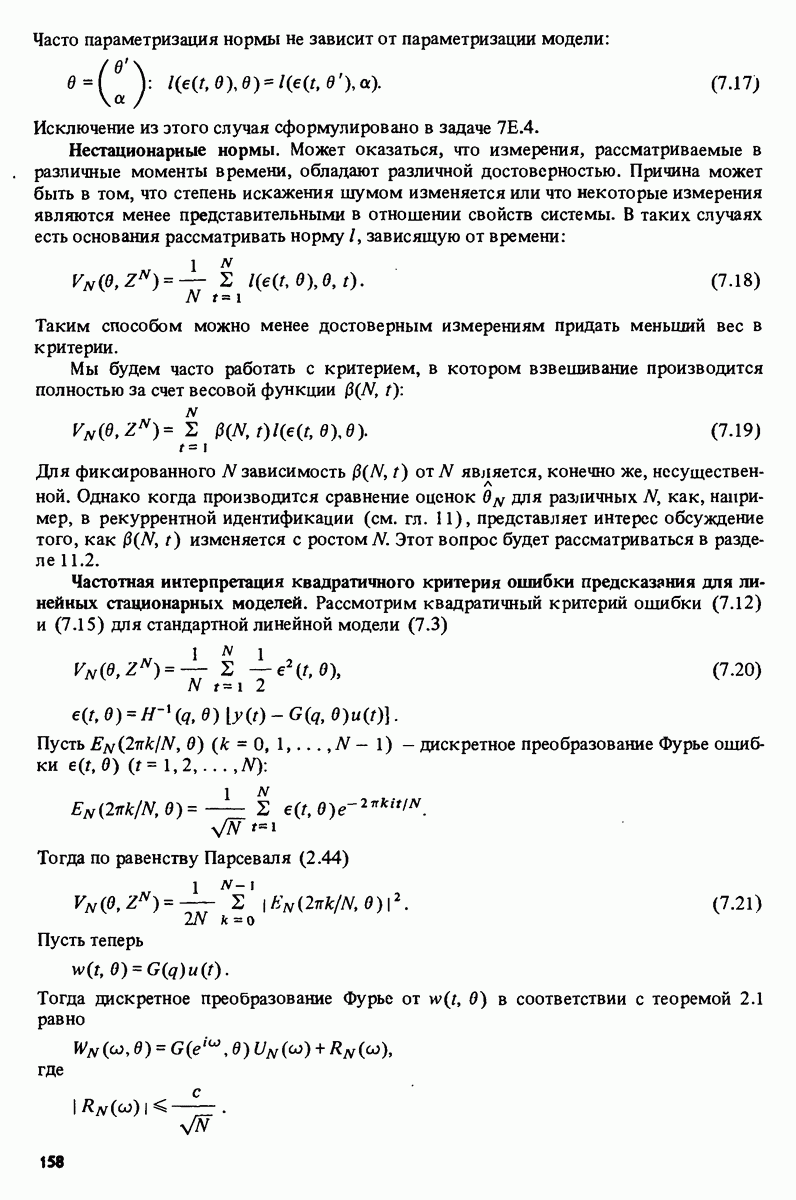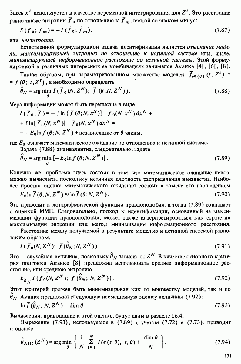 Можно использовать физическую параметризацию динамики системы в сочетании с формальной (по методу черного ящика) параметризацией характеристик шума такой, например, как непосредственная параметризация формы обновлений (4,88), или принимая такую модель шума, которая также является физически параметризованной с помощью соотношений (4.93)-(4,96). Наконец, мы можем использовать структуры черного ящика в пространстве состояний, как скажем, в примере 4.2. В этом случае описание входо-выходного соответствия моделью черного ящика имеет преимущество гибкости в выборе такого представления, которое может обеспечить достижение лучших количественных характеристик процесса параметризации (задача 16Е.1).