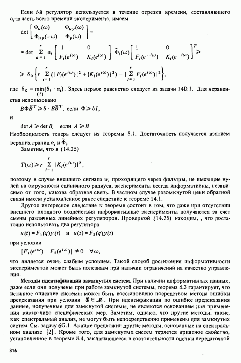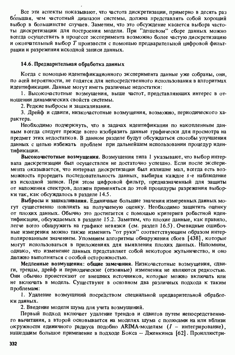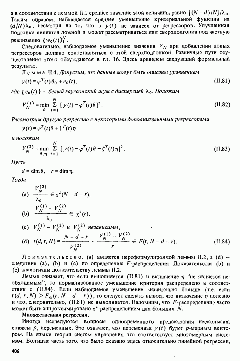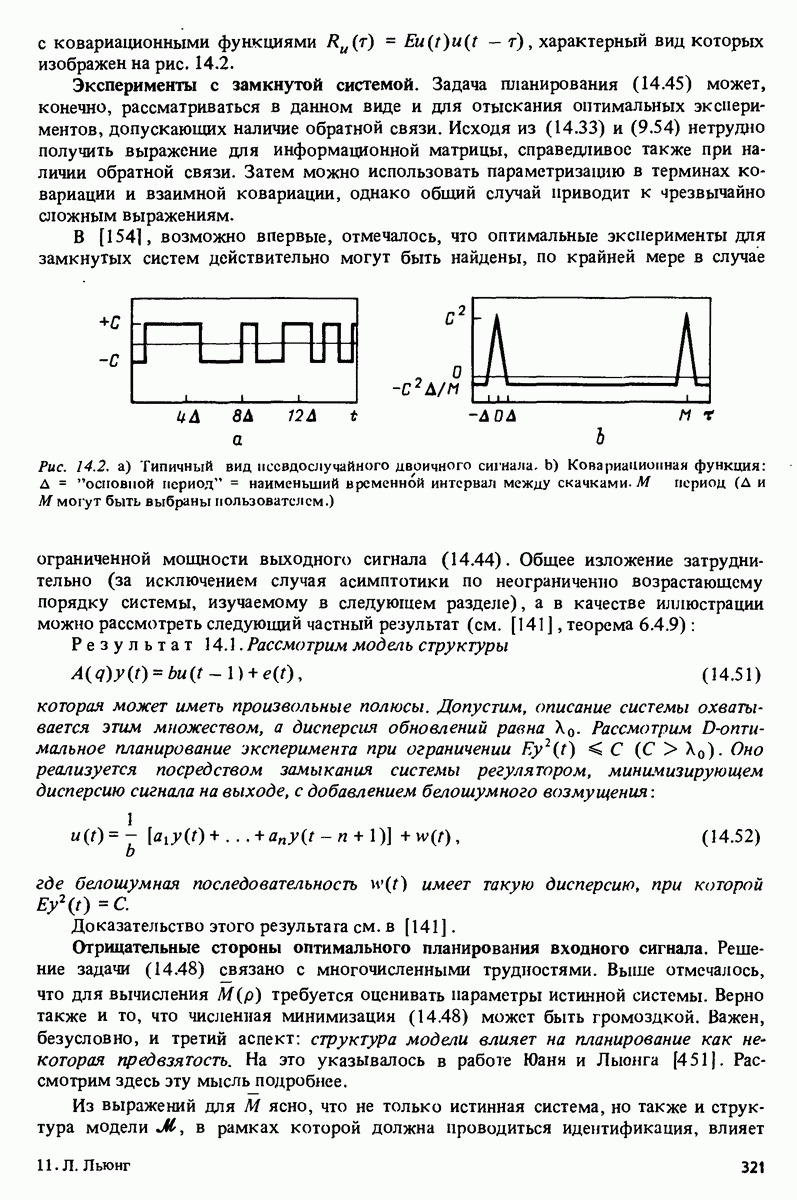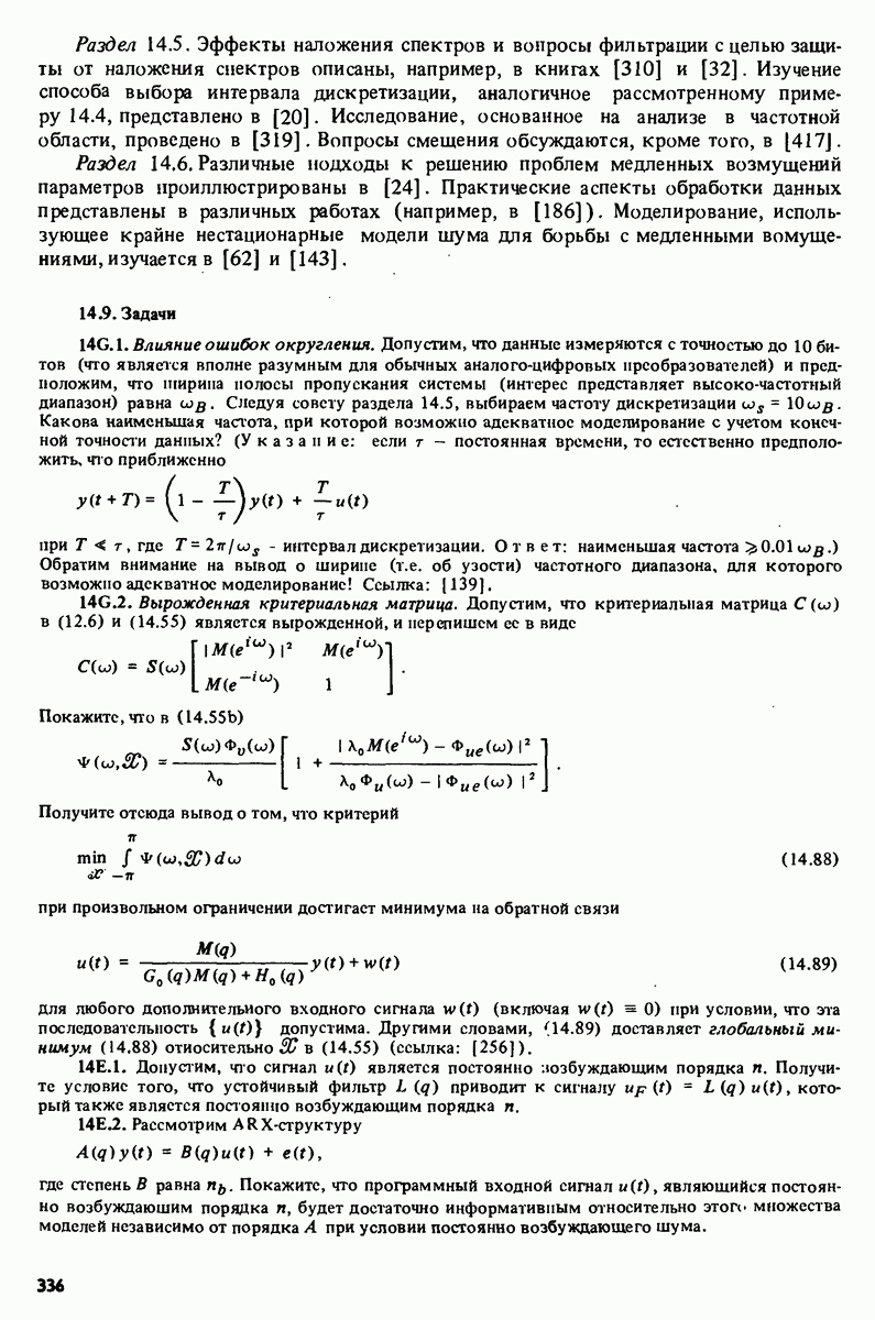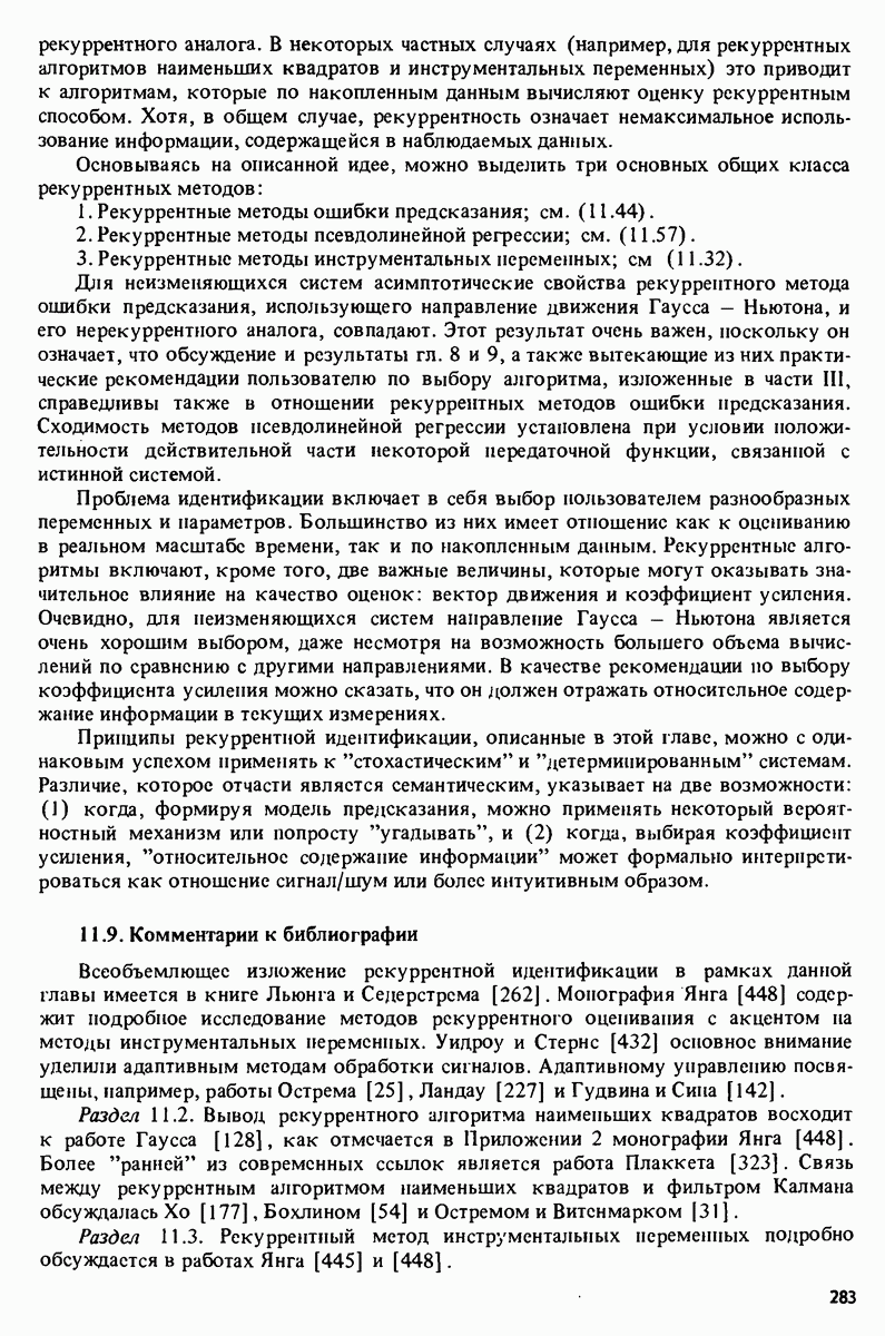 Можно использовать физическую параметризацию динамики системы в сочетании с формальной (по методу черного ящика) параметризацией характеристик шума такой, например, как непосредственная параметризация формы обновлений (4,88), или принимая такую модель шума, которая также является физически параметризованной с помощью соотношений (4.93)-(4,96). Наконец, мы можем использовать структуры черного ящика в пространстве состояний, как скажем, в примере 4.2. В этом случае описание входо-выходного соответствия моделью черного ящика имеет преимущество гибкости в выборе такого представления, которое может обеспечить достижение лучших количественных характеристик процесса параметризации (задача 16Е.1).