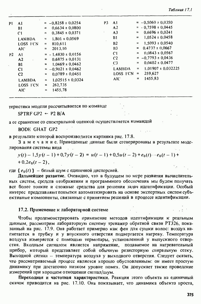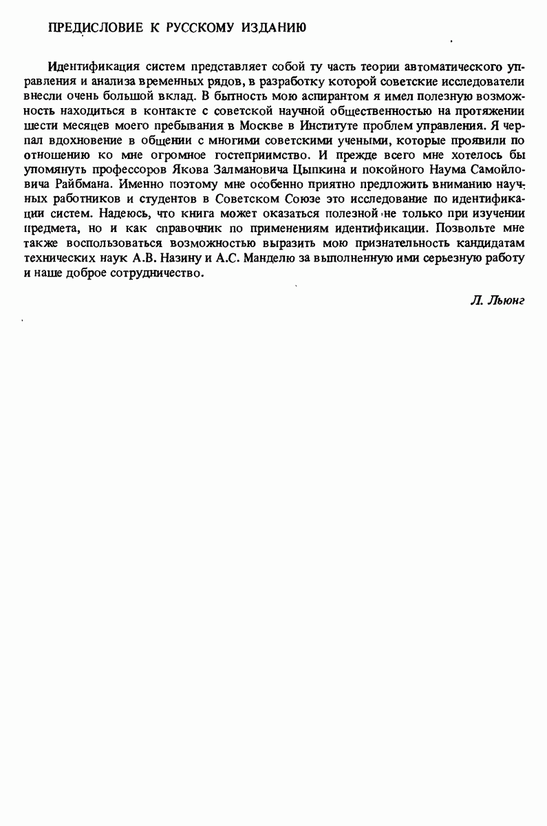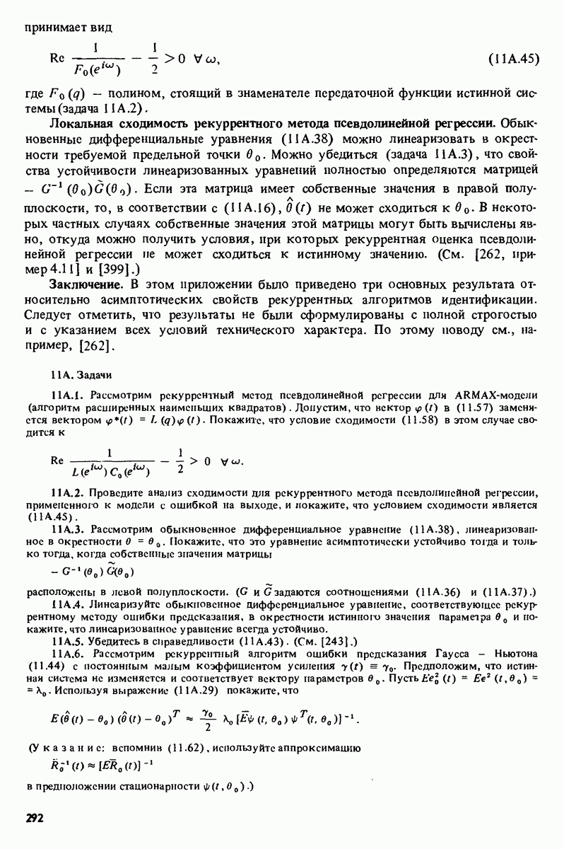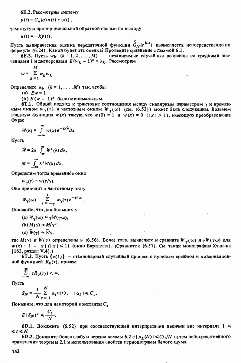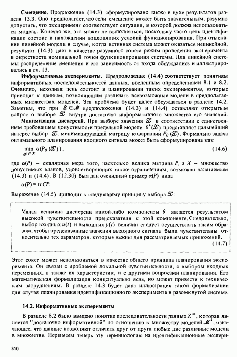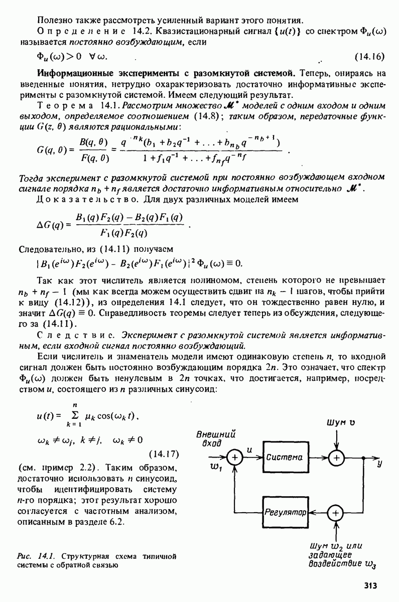 Можно использовать физическую параметризацию динамики системы в сочетании с формальной (по методу черного ящика) параметризацией характеристик шума такой, например, как непосредственная параметризация формы обновлений (4,88), или принимая такую модель шума, которая также является физически параметризованной с помощью соотношений (4.93)-(4,96). Наконец, мы можем использовать структуры черного ящика в пространстве состояний, как скажем, в примере 4.2. В этом случае описание входо-выходного соответствия моделью черного ящика имеет преимущество гибкости в выборе такого представления, которое может обеспечить достижение лучших количественных характеристик процесса параметризации (задача 16Е.1).