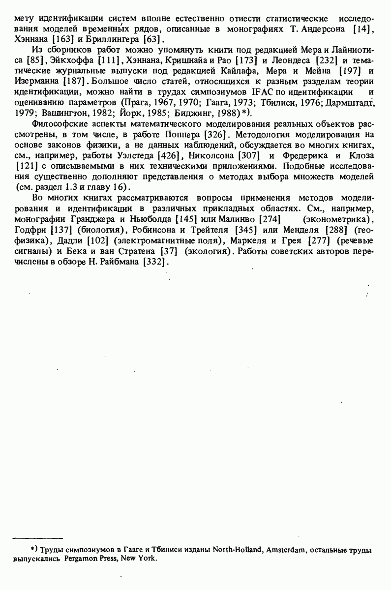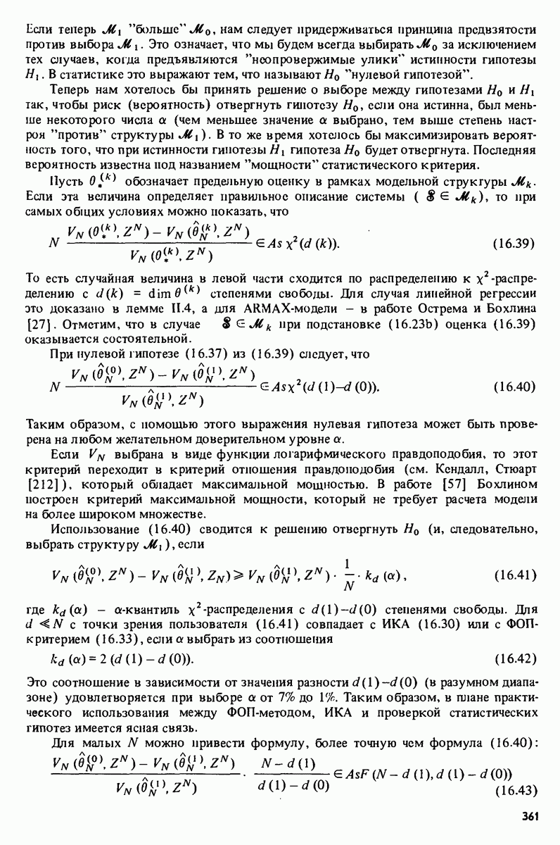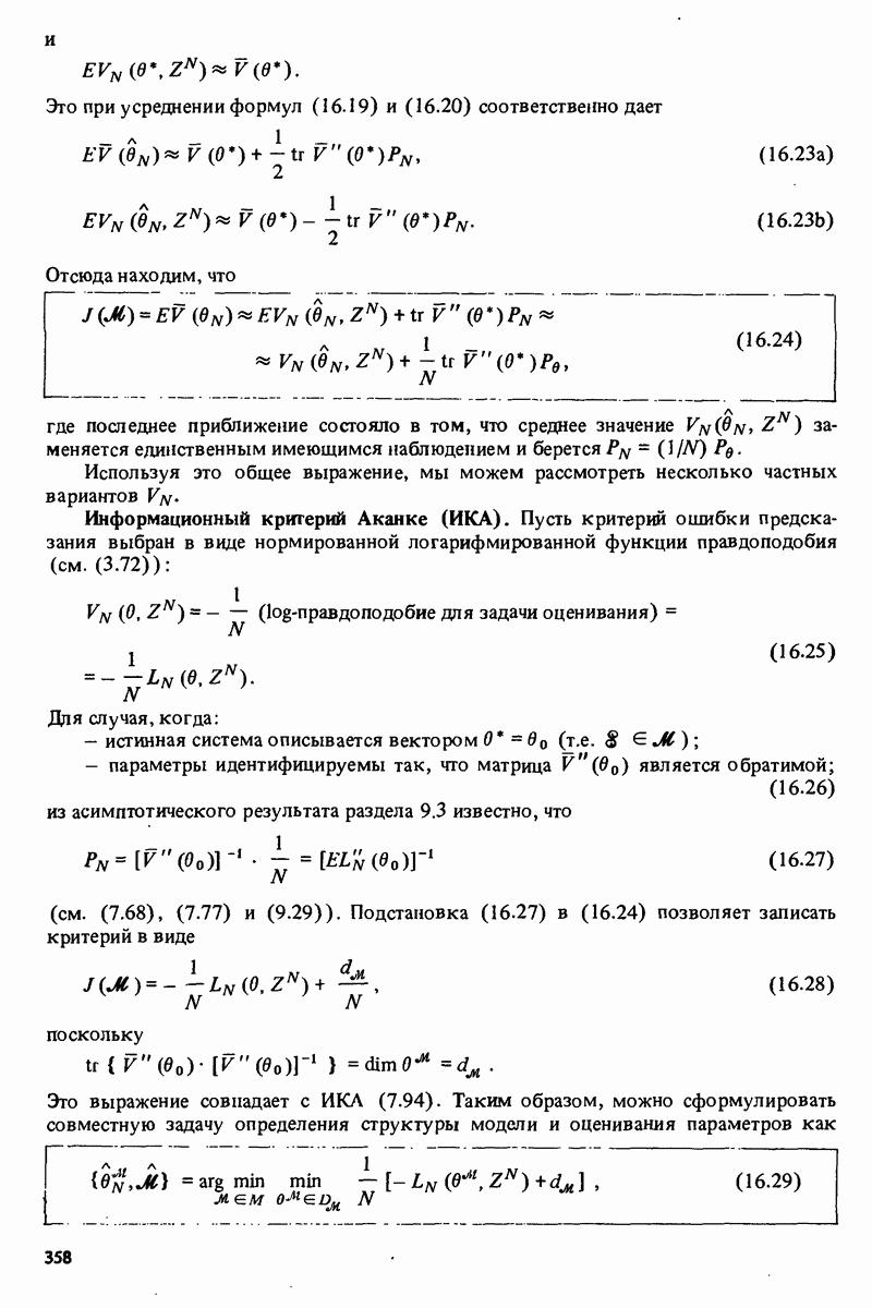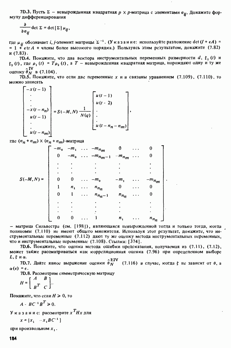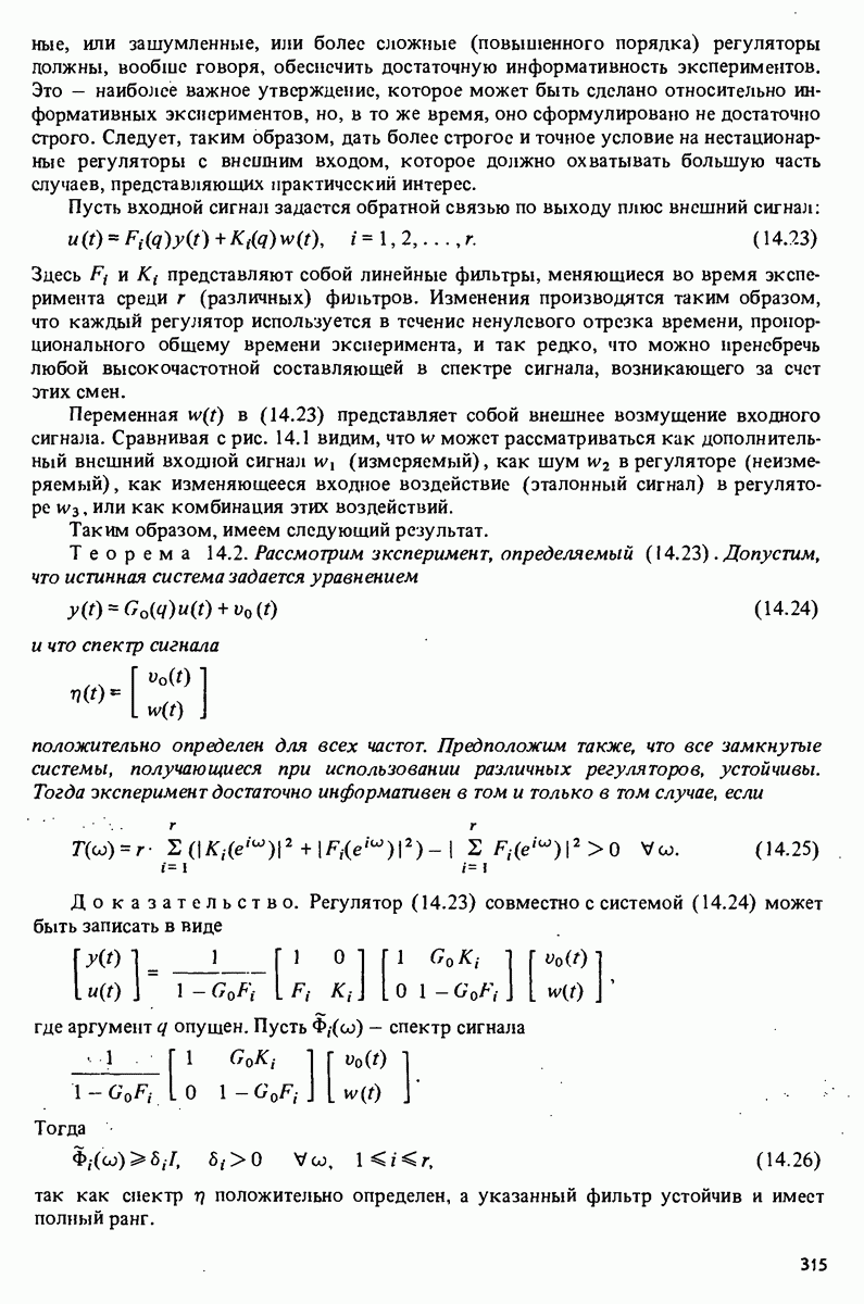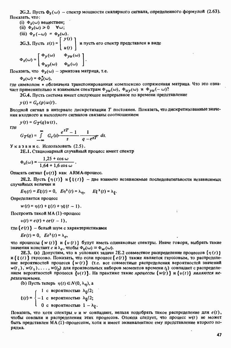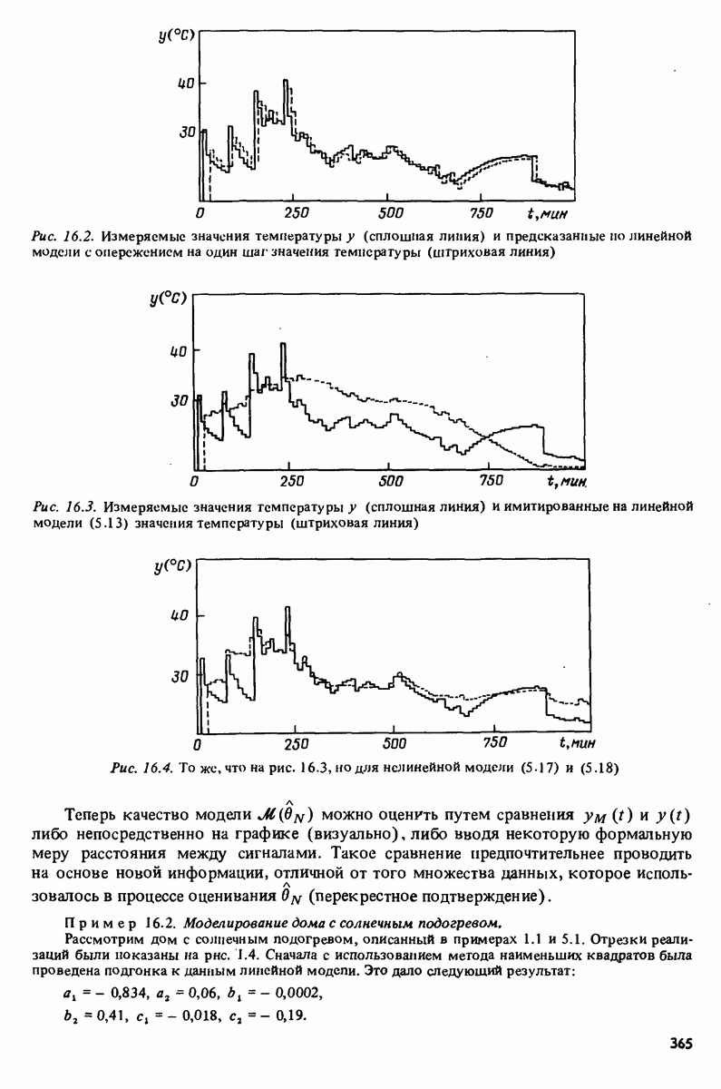 Можно использовать физическую параметризацию динамики системы в сочетании с формальной (по методу черного ящика) параметризацией характеристик шума такой, например, как непосредственная параметризация формы обновлений (4,88), или принимая такую модель шума, которая также является физически параметризованной с помощью соотношений (4.93)-(4,96). Наконец, мы можем использовать структуры черного ящика в пространстве состояний, как скажем, в примере 4.2. В этом случае описание входо-выходного соответствия моделью черного ящика имеет преимущество гибкости в выборе такого представления, которое может обеспечить достижение лучших количественных характеристик процесса параметризации (задача 16Е.1).
