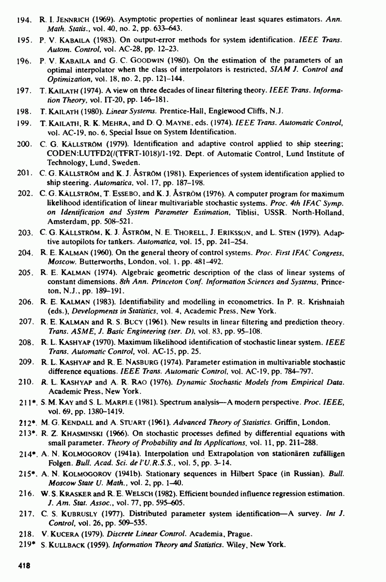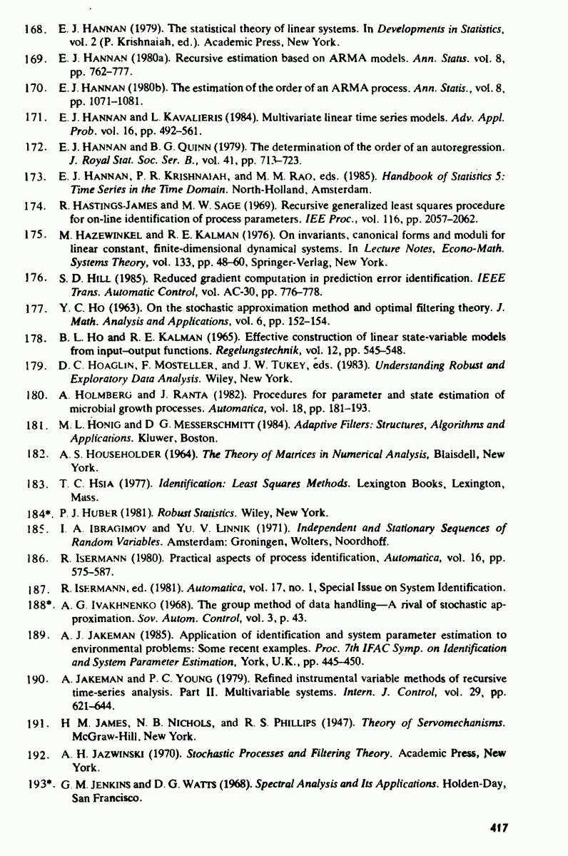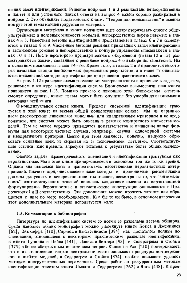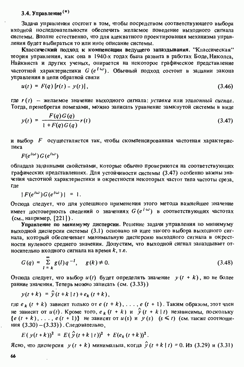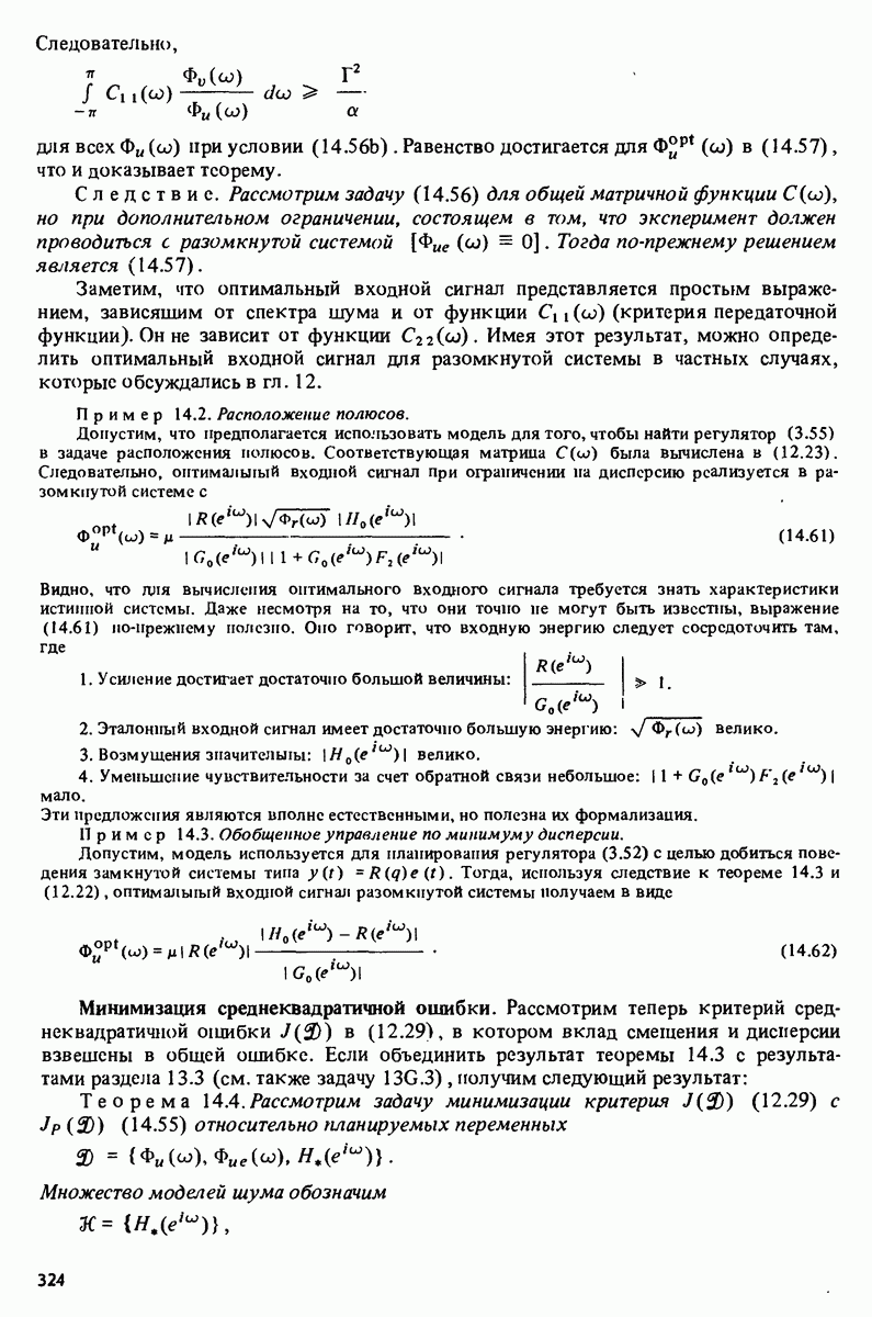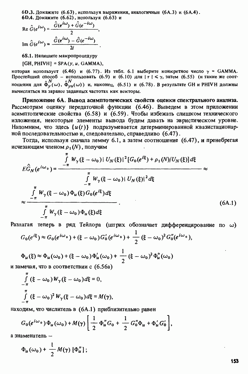 Можно использовать физическую параметризацию динамики системы в сочетании с формальной (по методу черного ящика) параметризацией характеристик шума такой, например, как непосредственная параметризация формы обновлений (4,88), или принимая такую модель шума, которая также является физически параметризованной с помощью соотношений (4.93)-(4,96). Наконец, мы можем использовать структуры черного ящика в пространстве состояний, как скажем, в примере 4.2. В этом случае описание входо-выходного соответствия моделью черного ящика имеет преимущество гибкости в выборе такого представления, которое может обеспечить достижение лучших количественных характеристик процесса параметризации (задача 16Е.1).