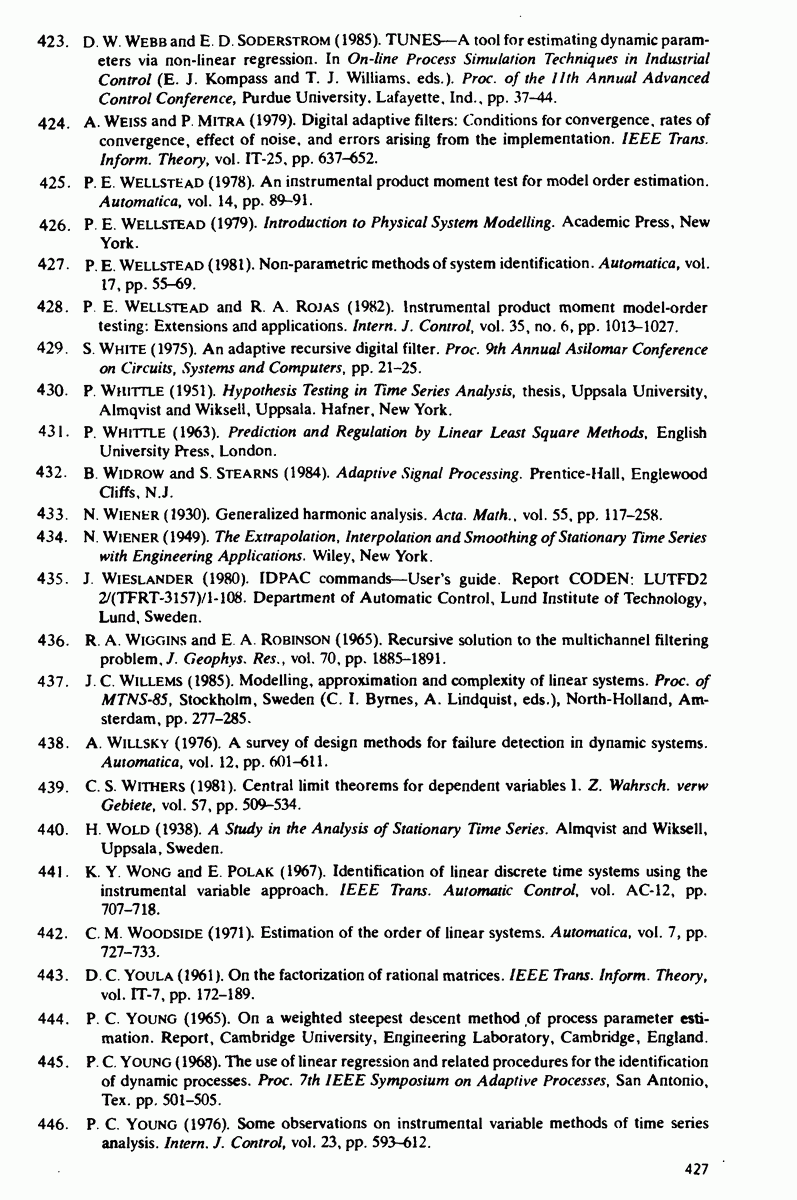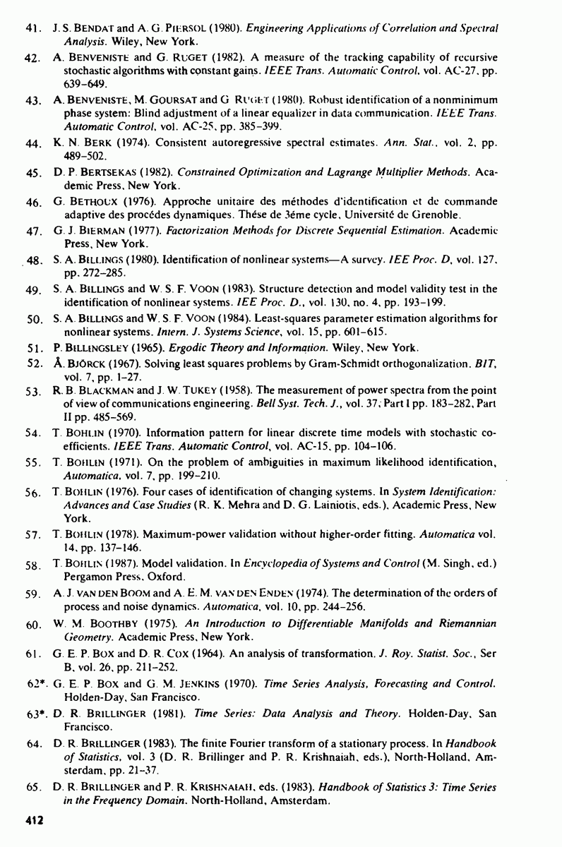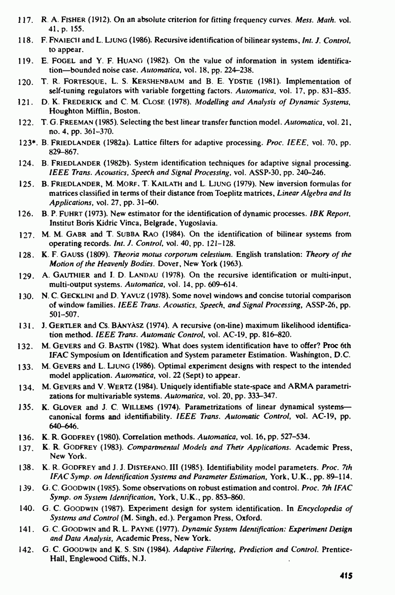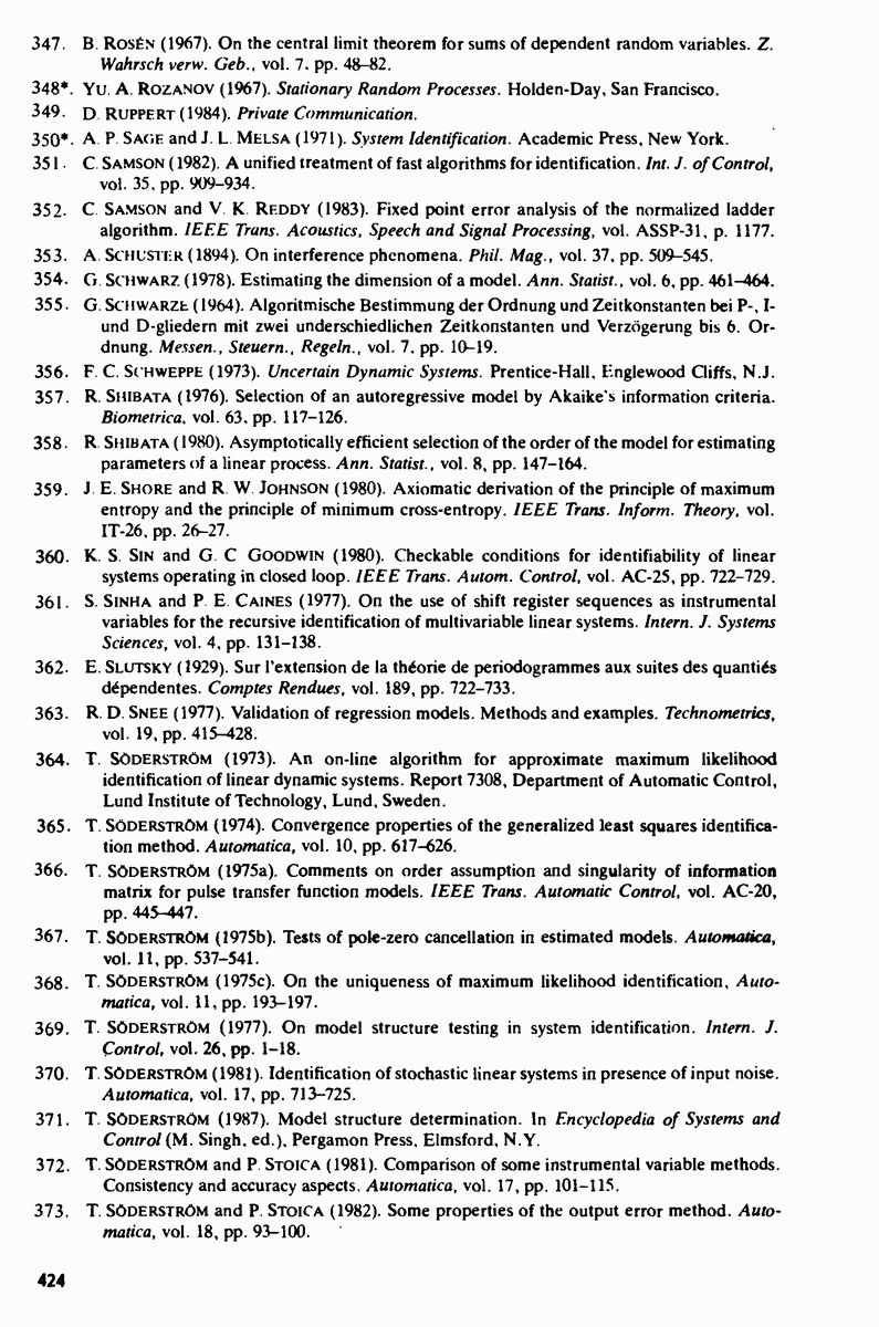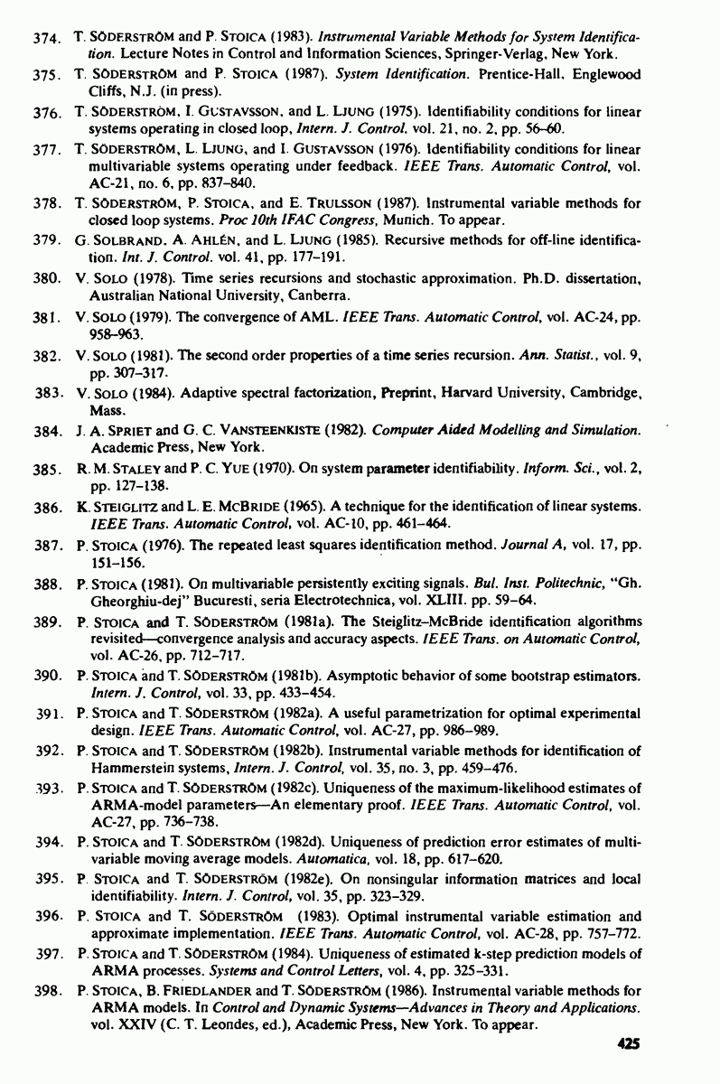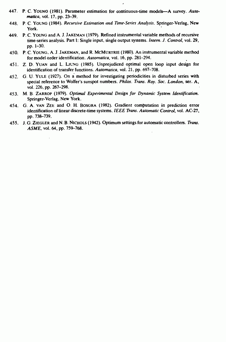 Можно использовать физическую параметризацию динамики системы в сочетании с формальной (по методу черного ящика) параметризацией характеристик шума такой, например, как непосредственная параметризация формы обновлений (4,88), или принимая такую модель шума, которая также является физически параметризованной с помощью соотношений (4.93)-(4,96). Наконец, мы можем использовать структуры черного ящика в пространстве состояний, как скажем, в примере 4.2. В этом случае описание входо-выходного соответствия моделью черного ящика имеет преимущество гибкости в выборе такого представления, которое может обеспечить достижение лучших количественных характеристик процесса параметризации (задача 16Е.1).