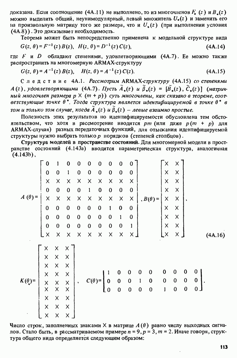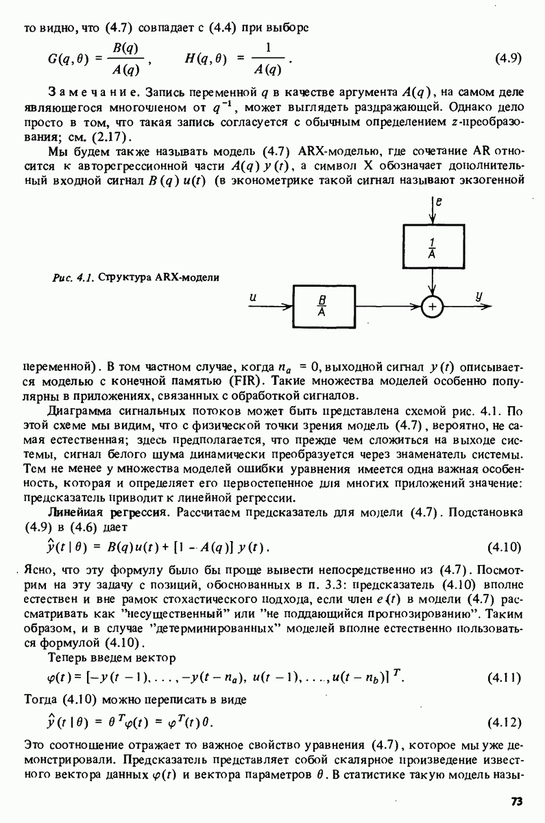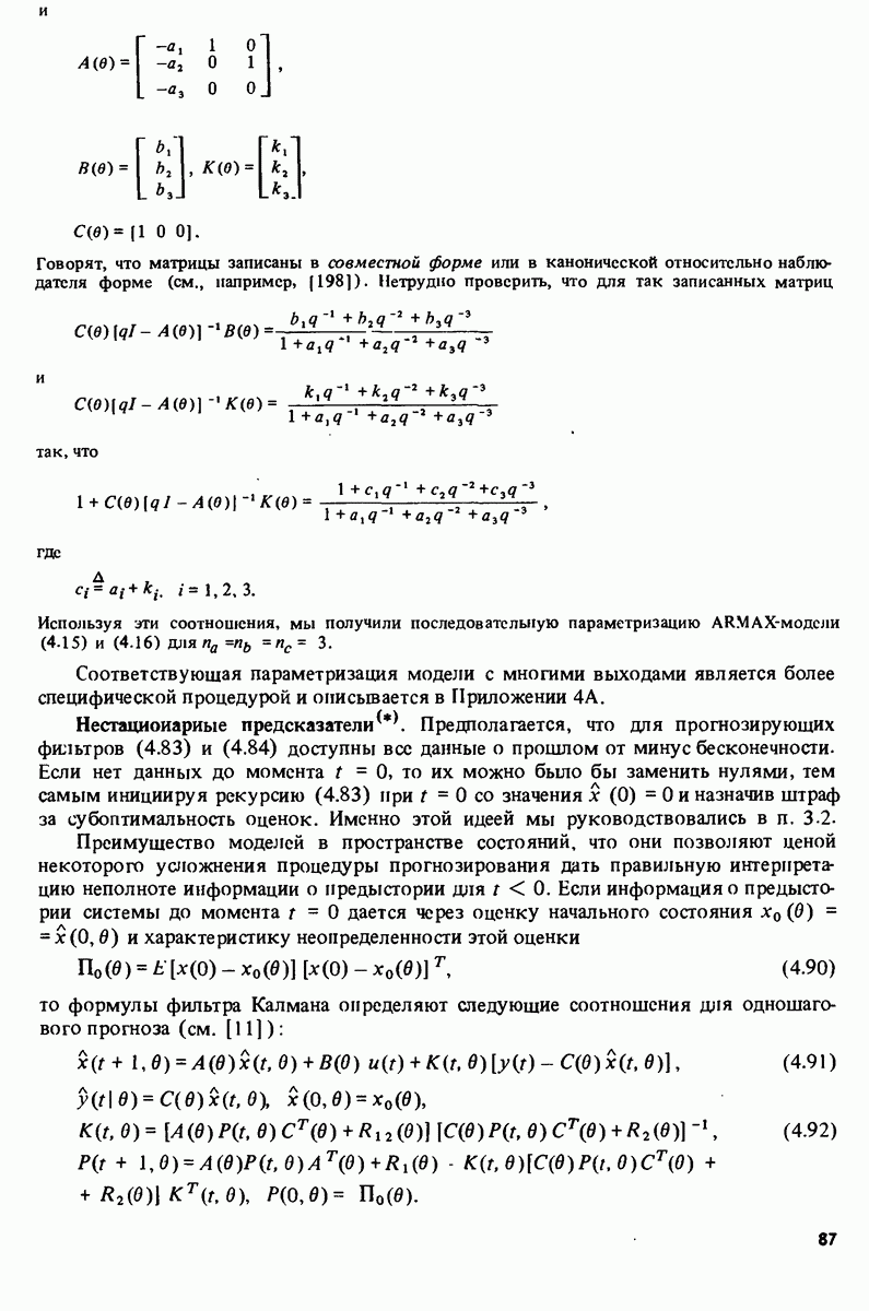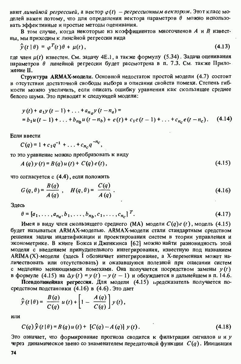 Используя эти соотношения, мы получили последовательную параметризацию ARMAX-модели (4.15) и (4.16) для