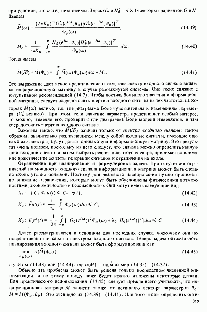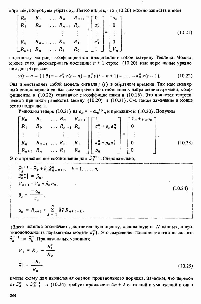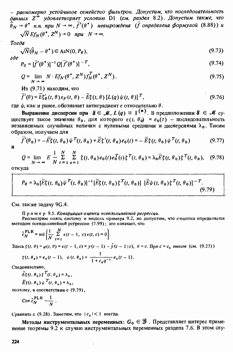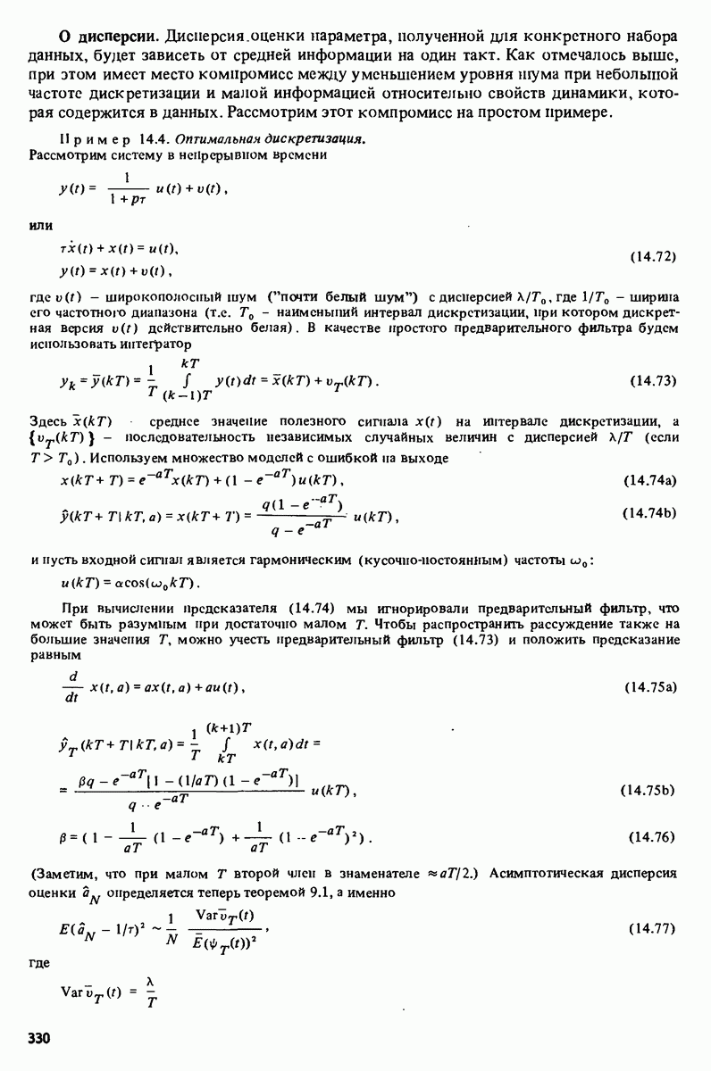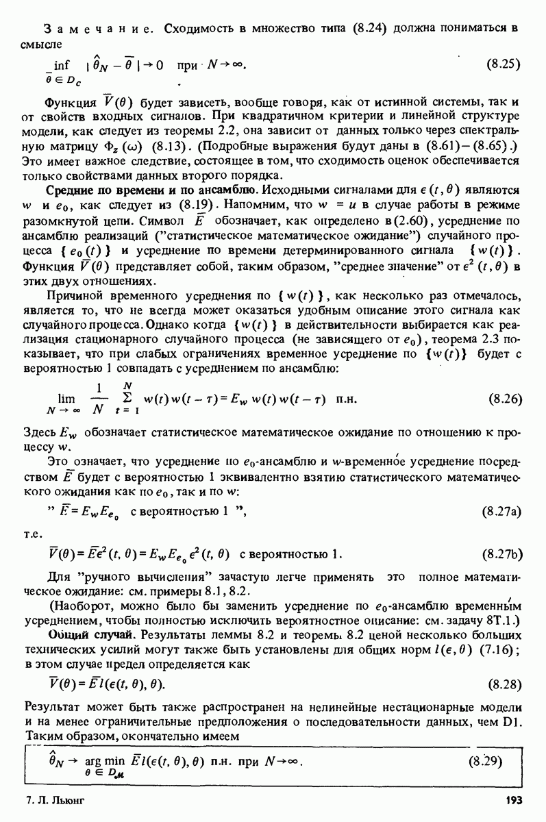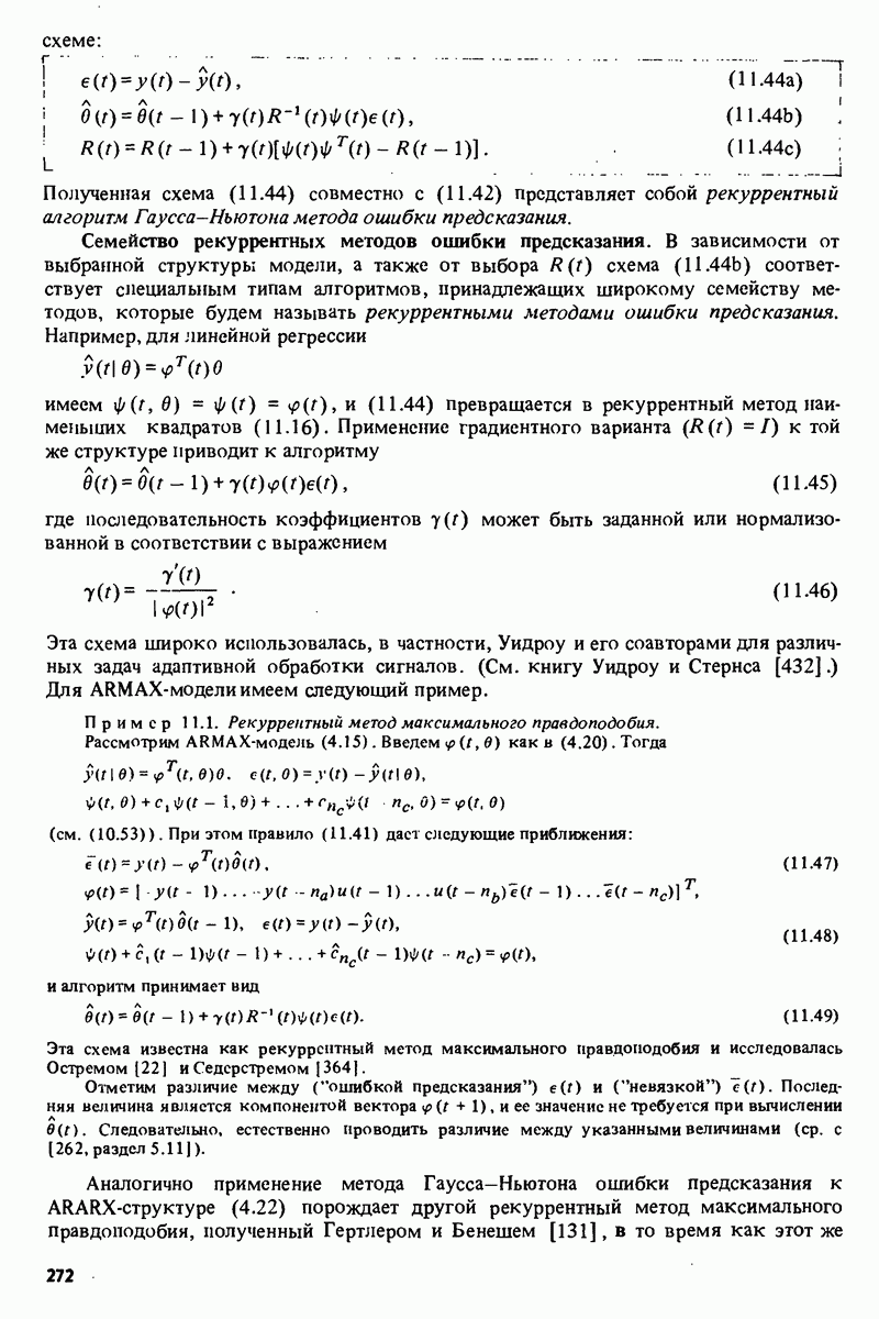 из формулы (4,84) (см., например, [11]). Таким образом, во многих задачах для упрощения вычислительных процедур разумно непосредственно использовать предельные значения оценок (4.83) при учете (4.84). Вирочем, когда записи данных короткие, решение уравнений (4.90)- (4.92) обеспечивает нас возможностью корректного исследования переходных свойств оценок, включая, быть может, параметризацию неизвестных начальных условий