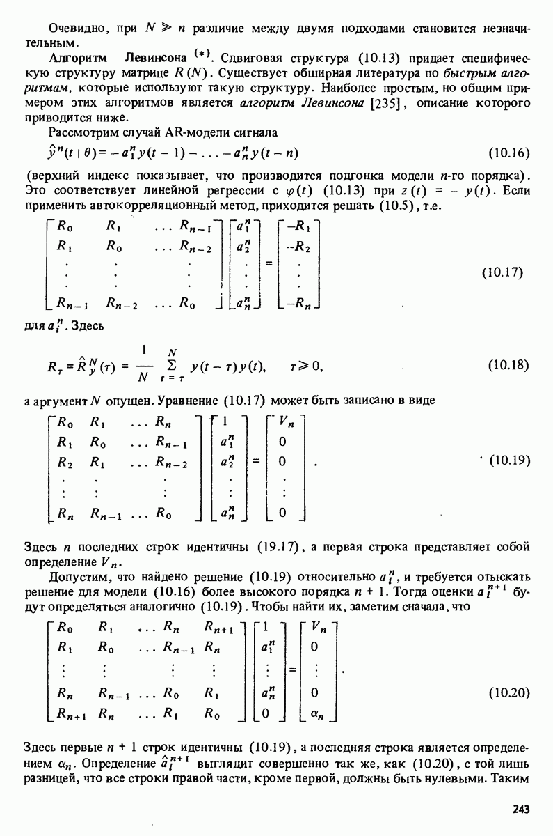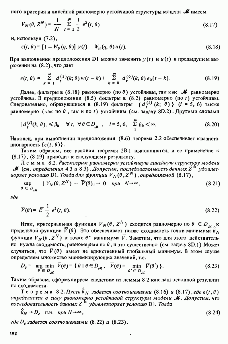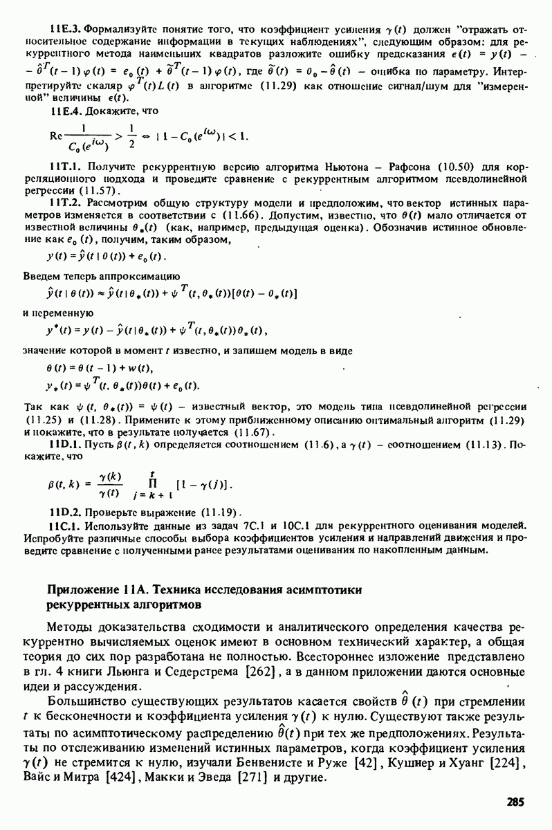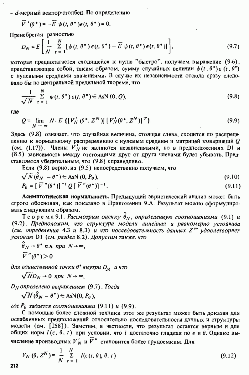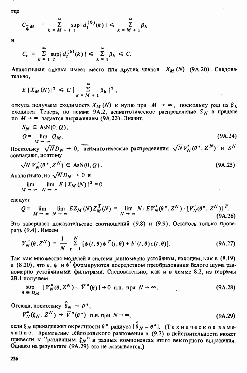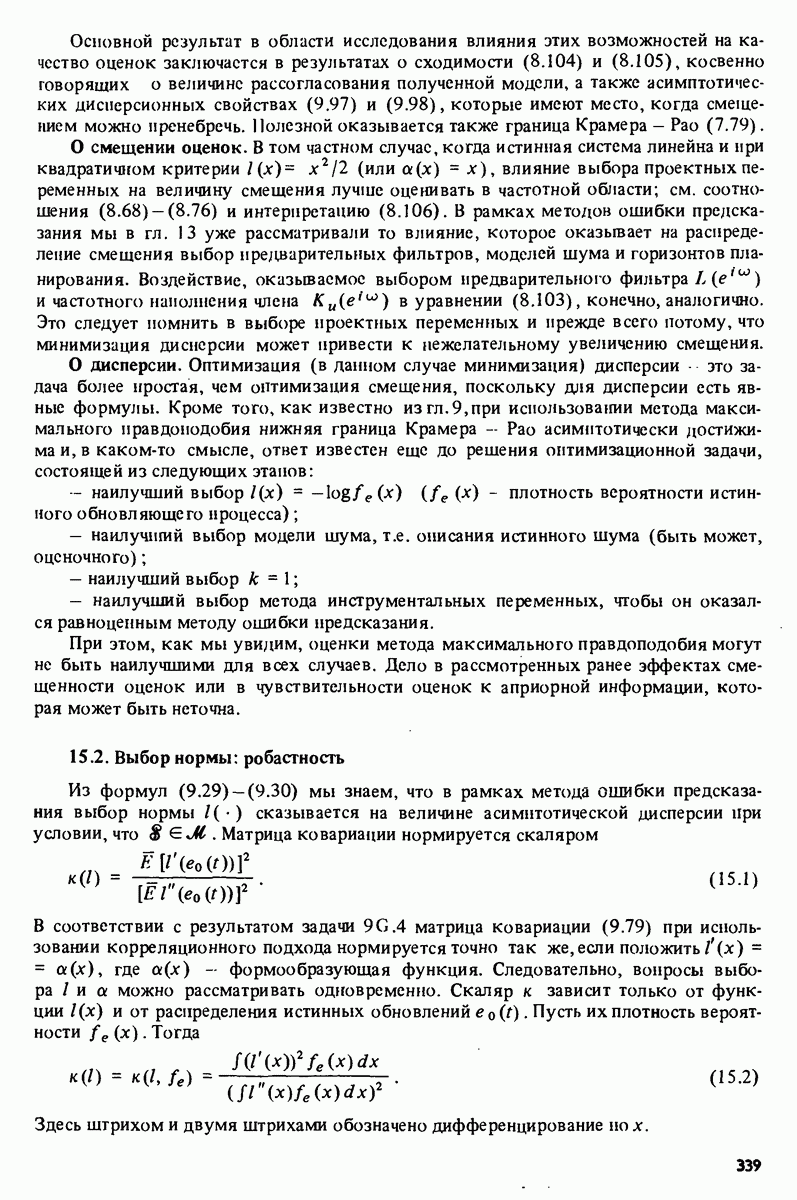 из формулы (4,84) (см., например, [11]). Таким образом, во многих задачах для упрощения вычислительных процедур разумно непосредственно использовать предельные значения оценок (4.83) при учете (4.84). Вирочем, когда записи данных короткие, решение уравнений (4.90)- (4.92) обеспечивает нас возможностью корректного исследования переходных свойств оценок, включая, быть может, параметризацию неизвестных начальных условий
