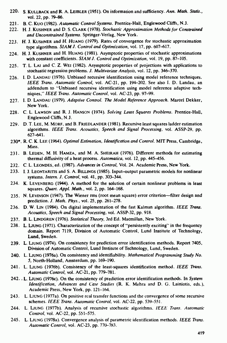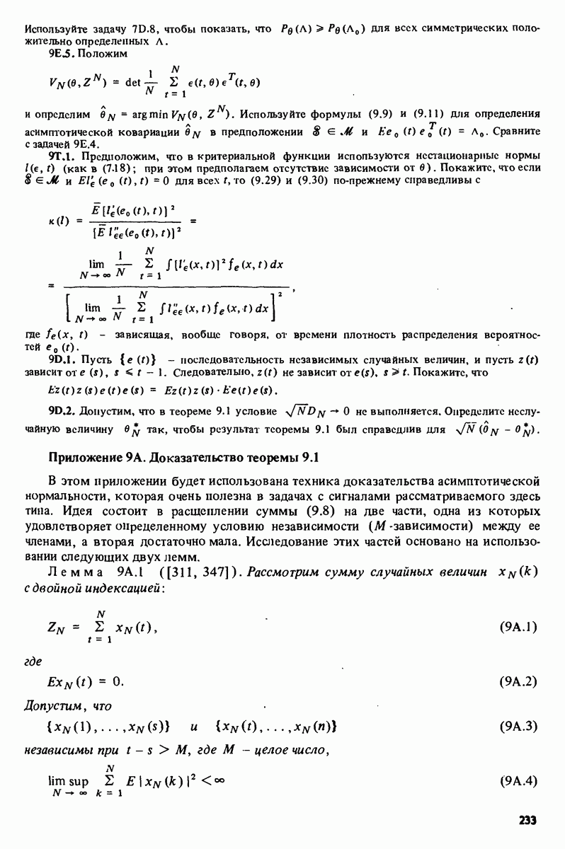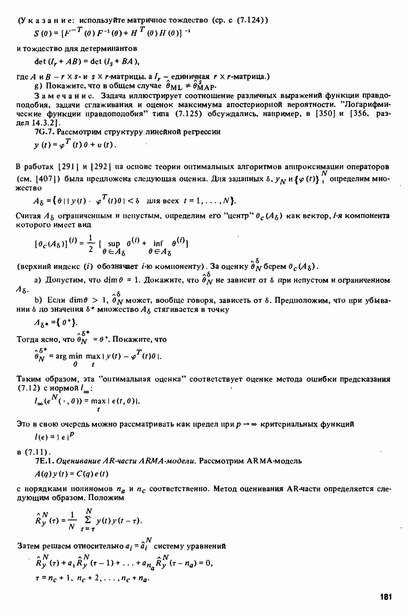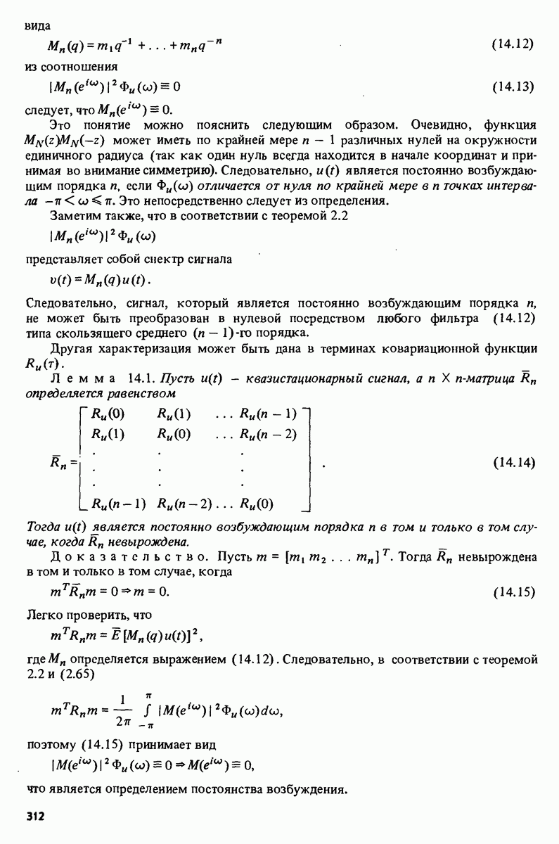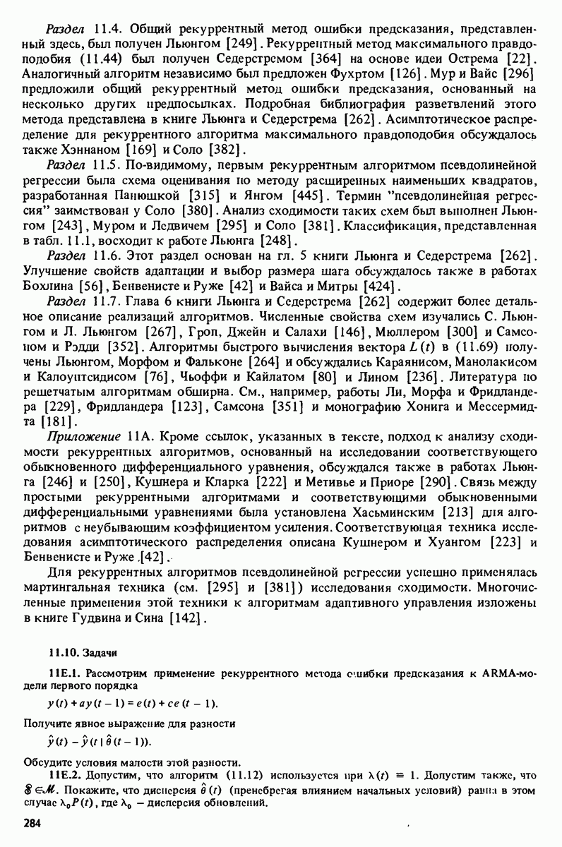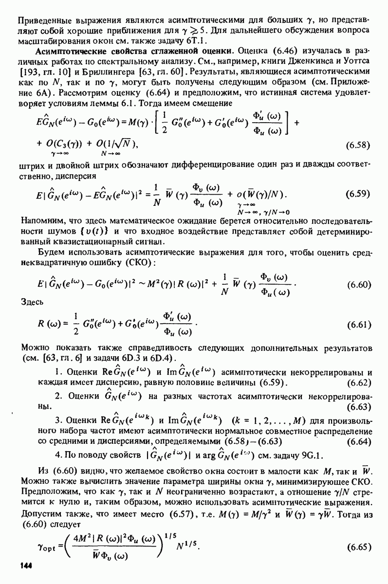 из формулы (4,84) (см., например, [11]). Таким образом, во многих задачах для упрощения вычислительных процедур разумно непосредственно использовать предельные значения оценок (4.83) при учете (4.84). Вирочем, когда записи данных короткие, решение уравнений (4.90)- (4.92) обеспечивает нас возможностью корректного исследования переходных свойств оценок, включая, быть может, параметризацию неизвестных начальных условий