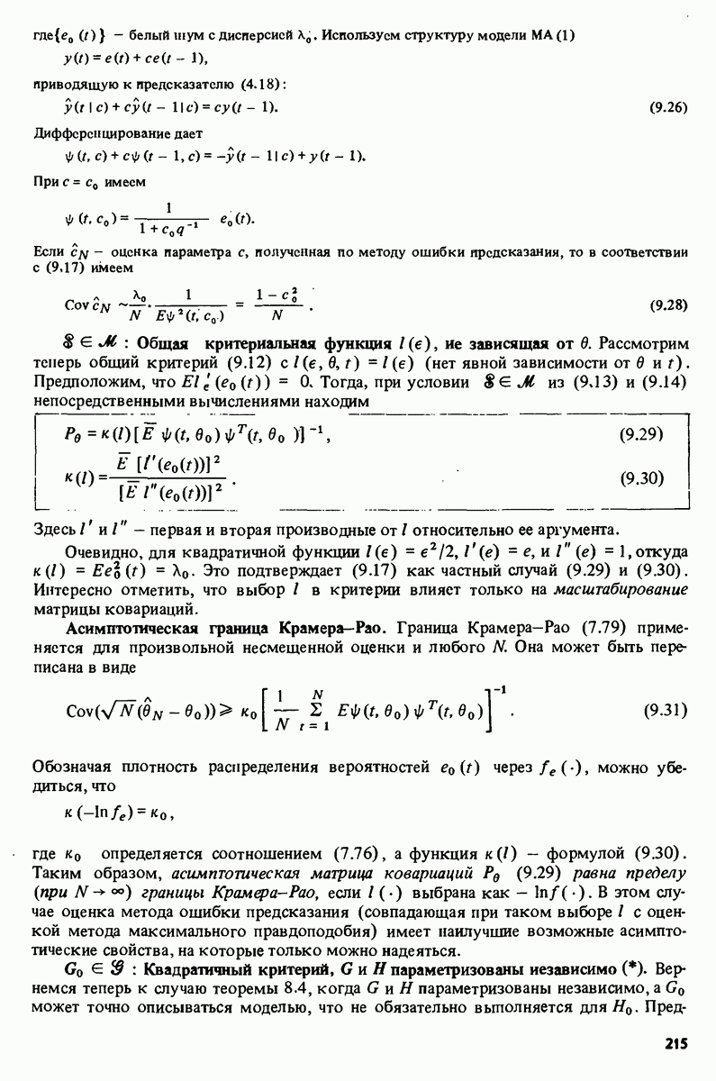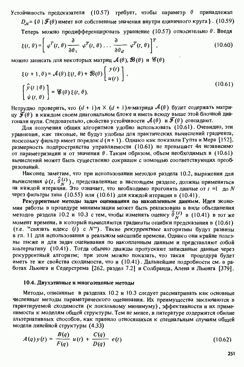 Этот путь имеет то важное преимущество, что предсказатель (4.85) оказывается более простой функцией от 0. Такую модельную структуру мы назовем непосредственно параметризованной формой обновлений.