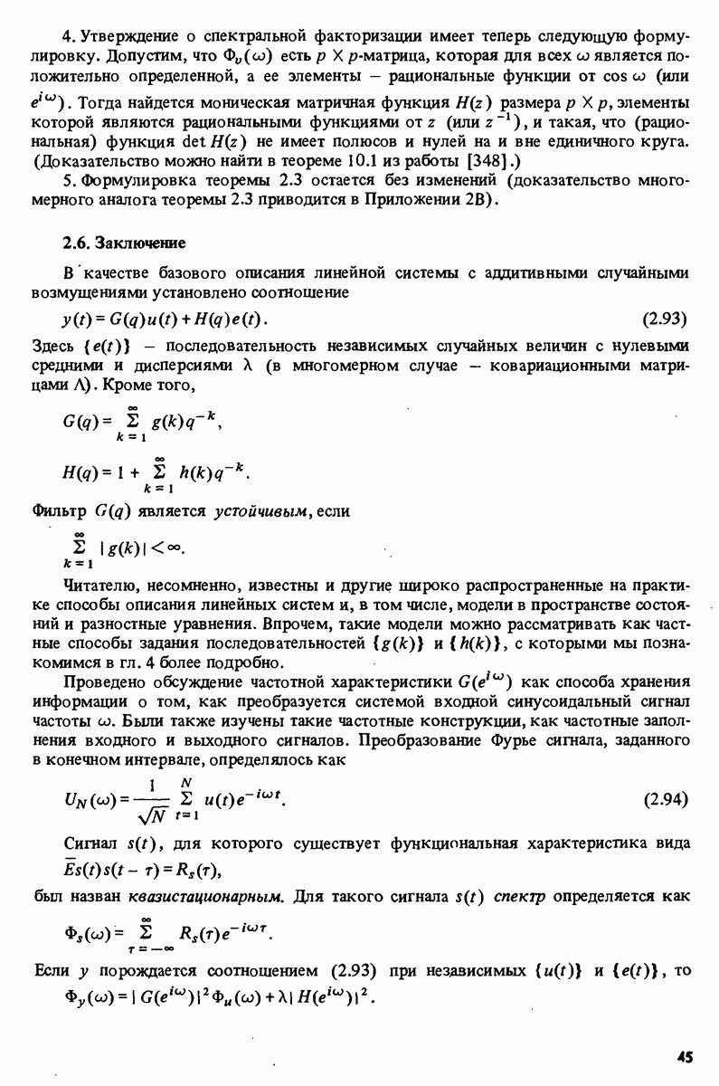 из формулы (4.81). Именно к этому описанию в пространстве состояний применяется знаменитая калмановская фильтрация (более обстоятельно вопрос изложен в работе [11]). Условное математическое ожидание