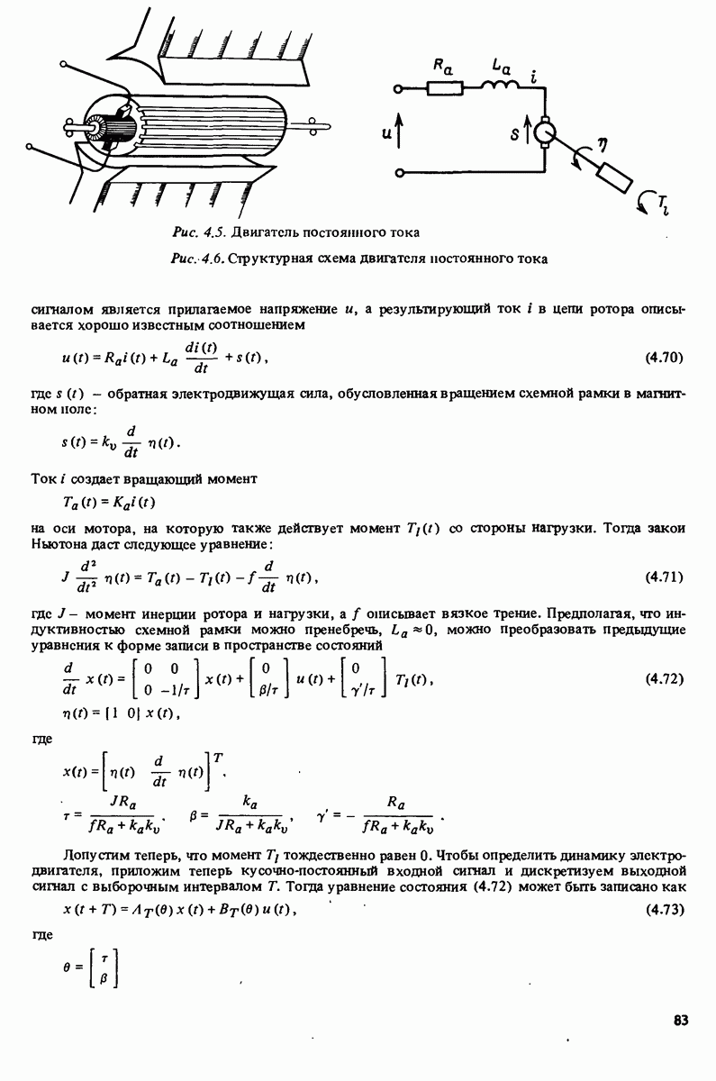В этом примере будет изучен физический объект, о динамических характеристиках которого имеется некоторый набор представлений. Рассмотрим электродвигатель на постоянном токе, показанный на рис. 4.5, структурная схема которого изображена на рис. 4.6. В этой системе входным