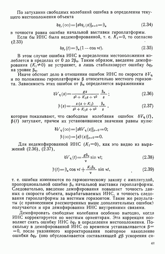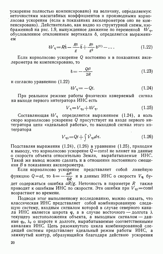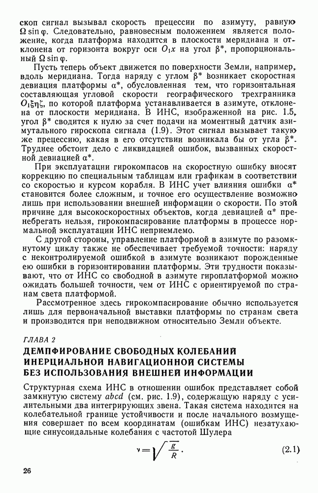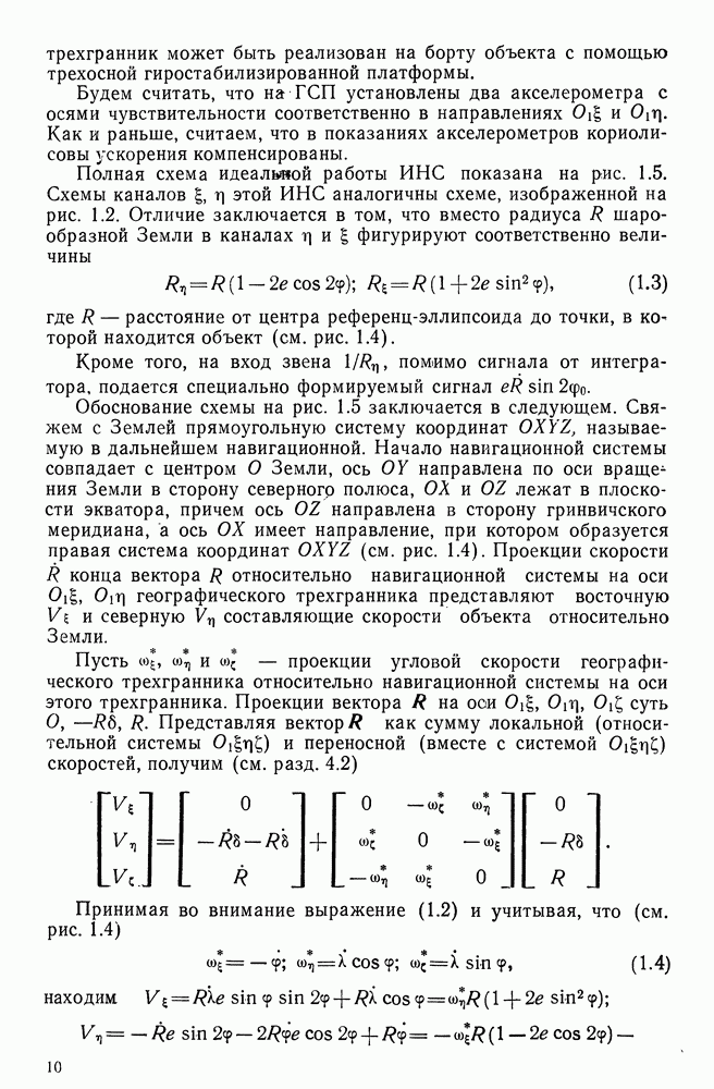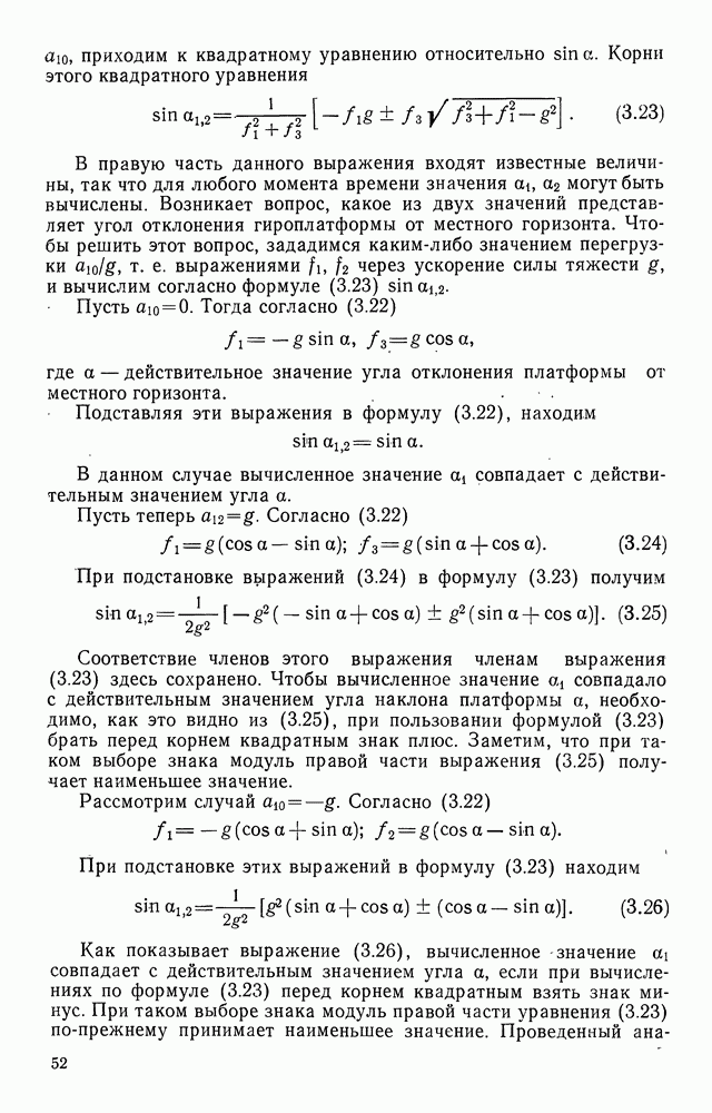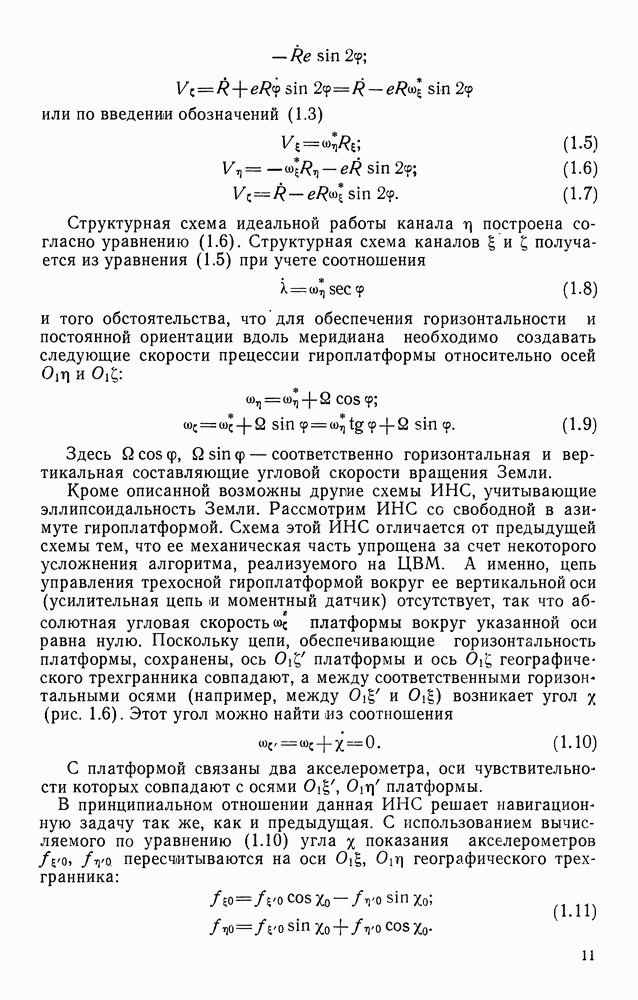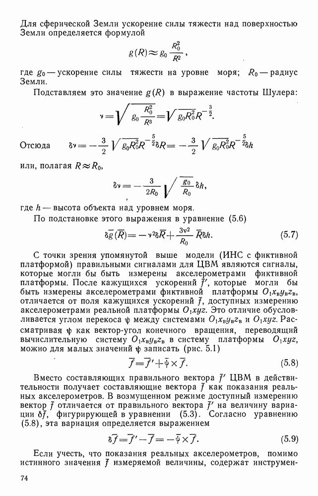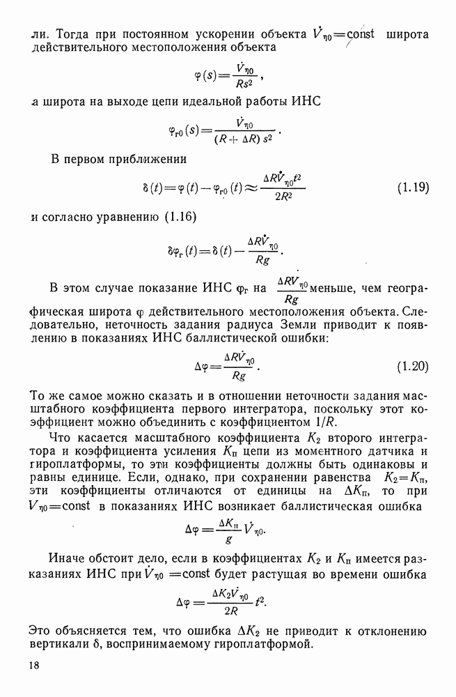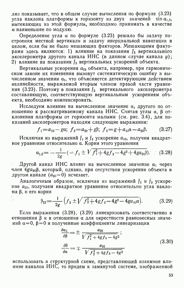 Как показывает выражение (3.26), вычисленное значение анализ показывает, что в общем случае вычисления по формуле (3.23) угла наклона платформы к горизонту из двух значений Определение угла а по формуле (3.23) решало бы задачу построения местной вертикали и задачу инерциальной навигации в целом, если бы не было мешающих факторов. Мешающими факторами здесь являются: 1) влияние на показания 2) влияние на показания Вертикальные ускорения Исследуем влияние на вычисленное значение