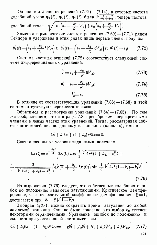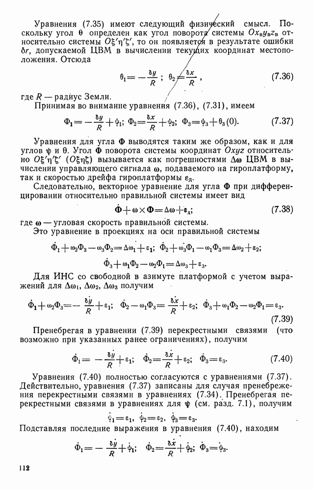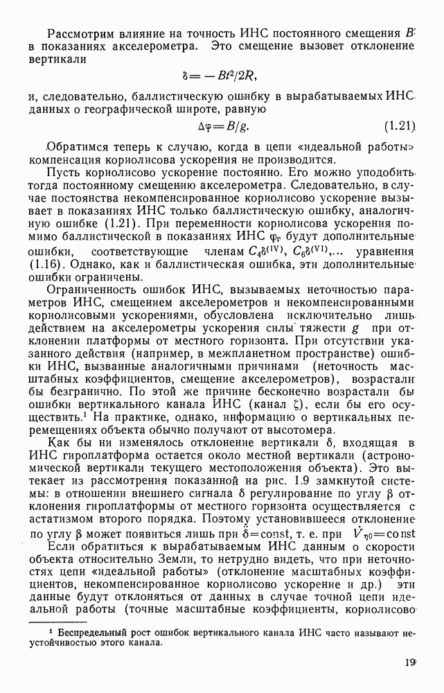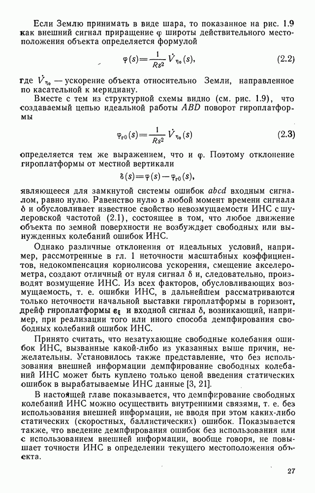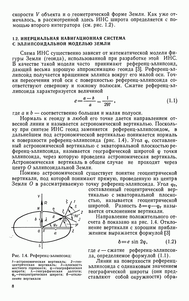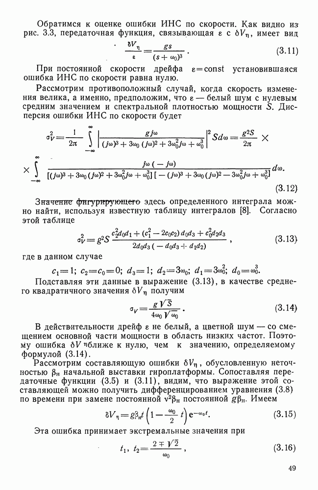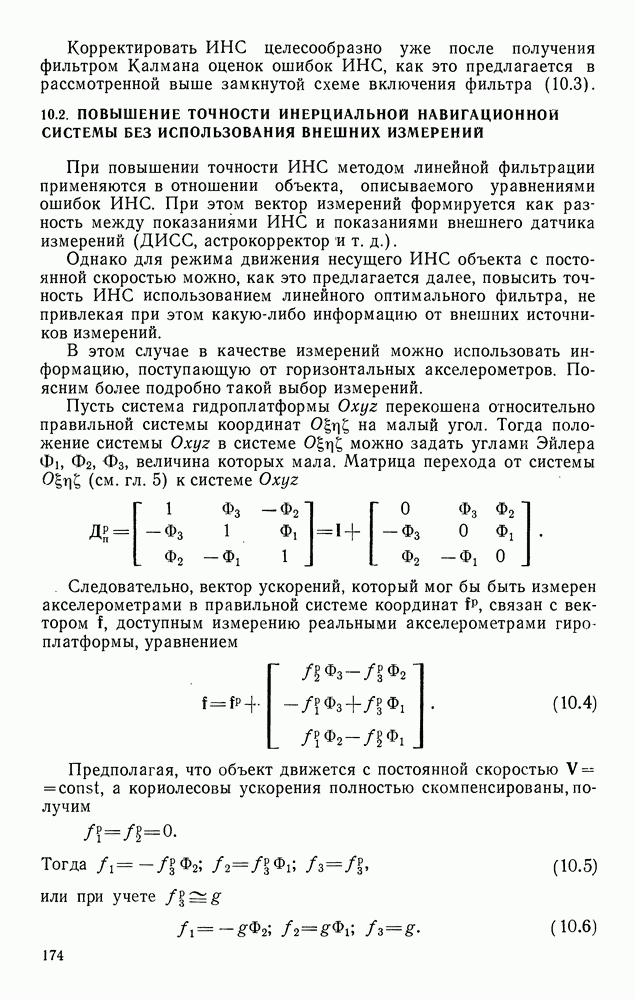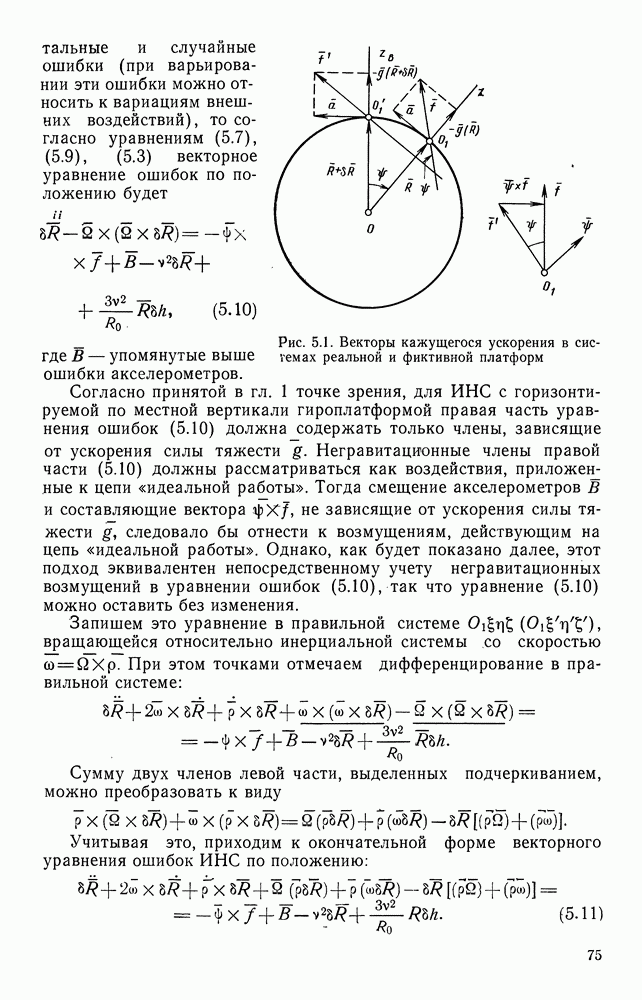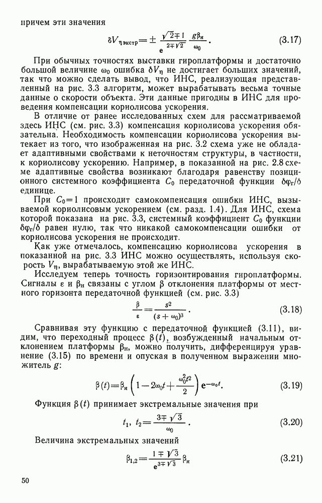 Как показывает выражение (3.26), вычисленное значение анализ показывает, что в общем случае вычисления по формуле (3.23) угла наклона платформы к горизонту из двух значений Определение угла а по формуле (3.23) решало бы задачу построения местной вертикали и задачу инерциальной навигации в целом, если бы не было мешающих факторов. Мешающими факторами здесь являются: 1) влияние на показания 2) влияние на показания Вертикальные ускорения Исследуем влияние на вычисленное значение