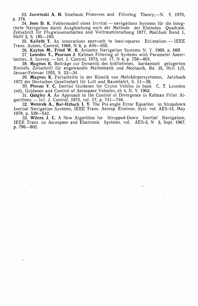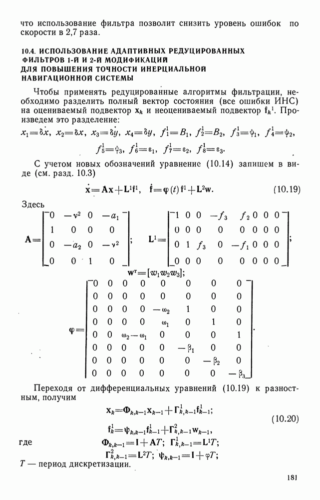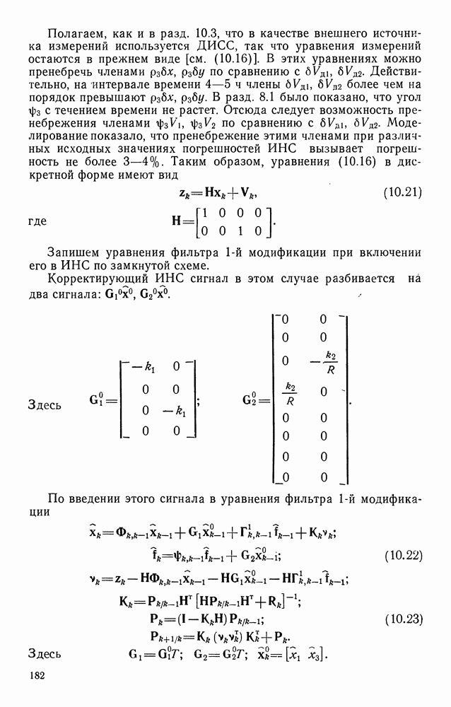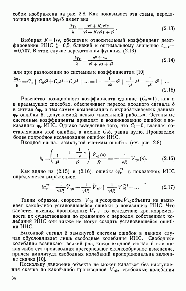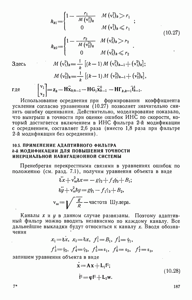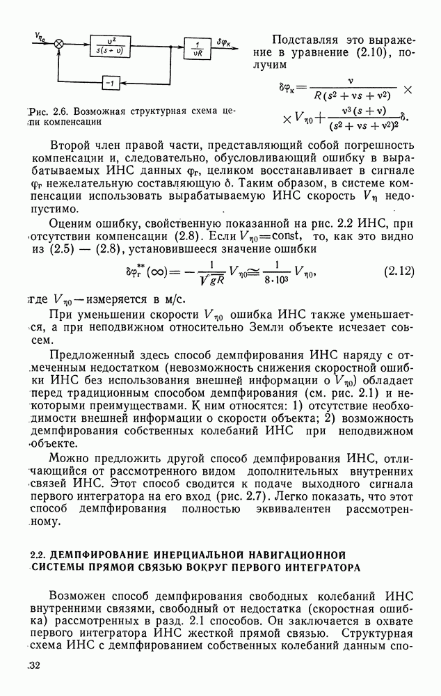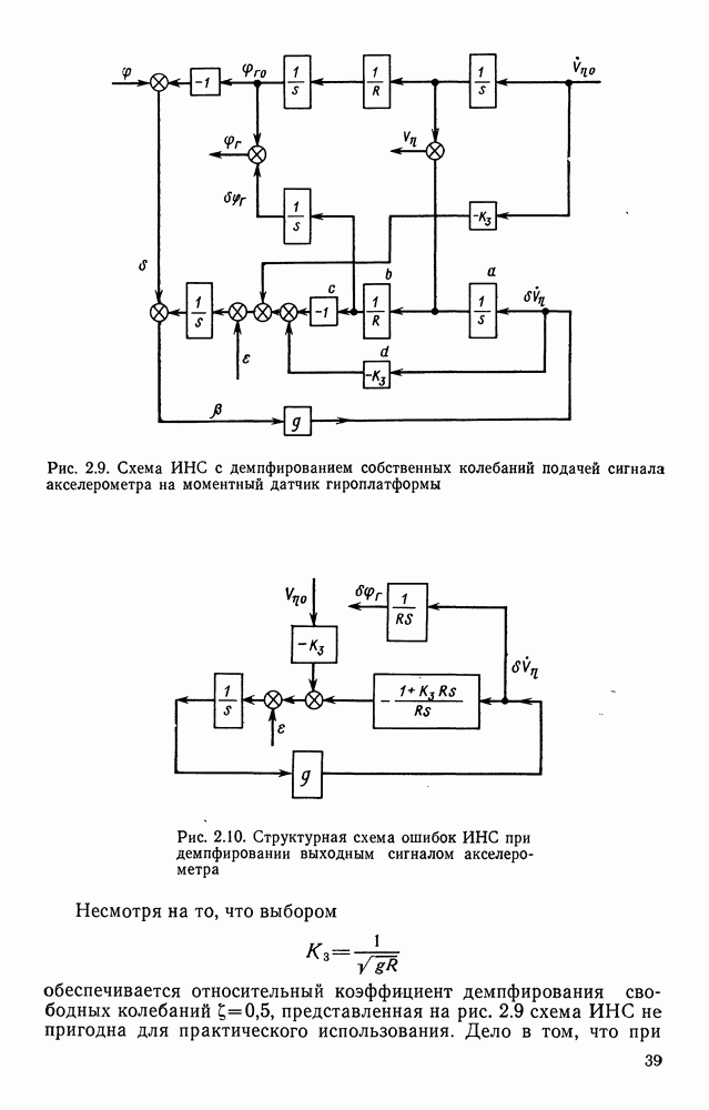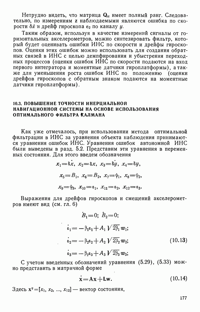 Пересчет этих скоростей на северную Достоинство предлагаемой схемы ИНС заключается в том, что дрейф ИНС, представленная на рис. 3.6., не испытывает возмущений при любом движении объекта по поверхности Земли и, если объект не имеет вертикальных ускорений, ее можно считать автономной. Как уже отмечалось, вертикальные ускорения в показаниях акселерометра Недостаток этой схемы по сравнению с классической автономной ИНС заключается в том, что она уже не обладает адаптирующими свойствами в отношении смещений в показаниях акселерометров. Смещения вызывают ошибку в вычисленных значениях