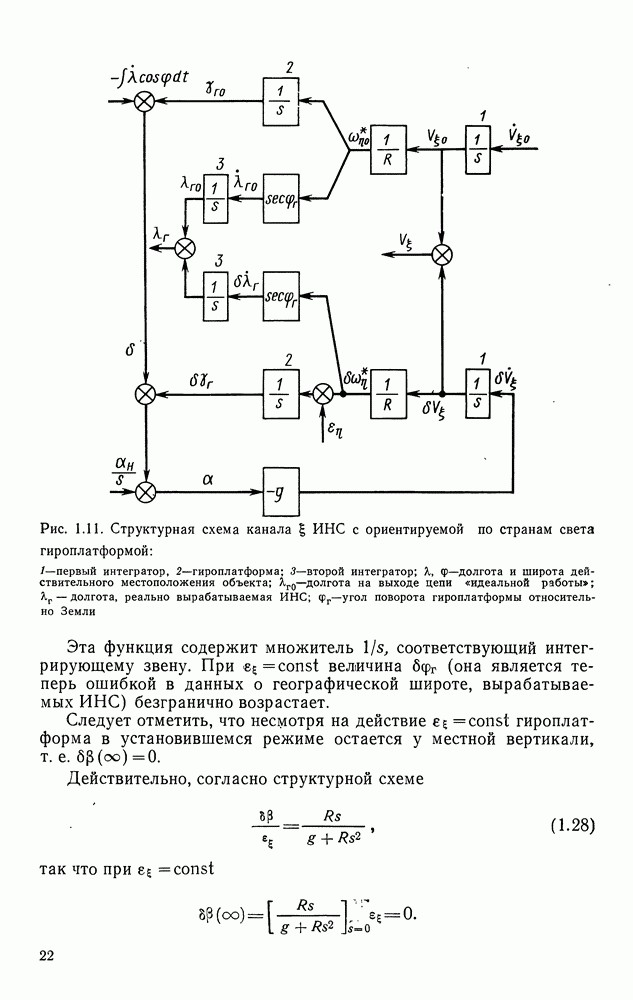Рис. 3.5. Канал ИНС, соответствующий оси 1 — гироплатформа;