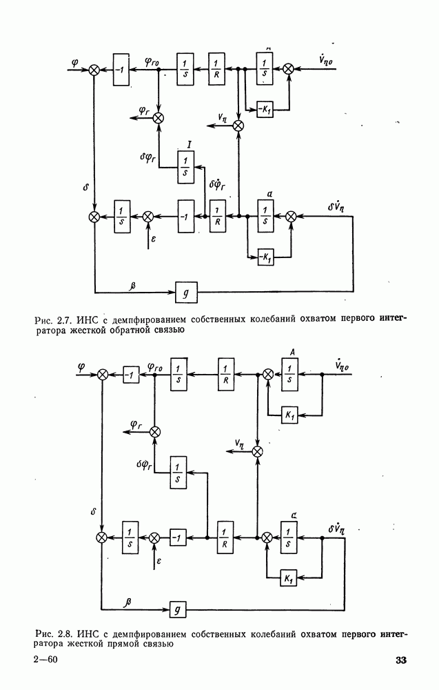 Рис. 3.6. Схема взаимного влияния каналов ИНС, имеющей вертикальный акселерометр: а, 0 — действительные углы отклонения гироплатформы от горизонта; бел, 601 — ошибки вычисления углов а, 0 по формуле (3.23) на рис. 3.6. Эту замкнутую систему можно реализовать, подавая вычисленное по формуле (3.23) значение Внешний контур регулирования, образующийся за счет перекрестных связей между каналами, замкнут лишь тогда, когда объект движется с ускорением как в направлении оси