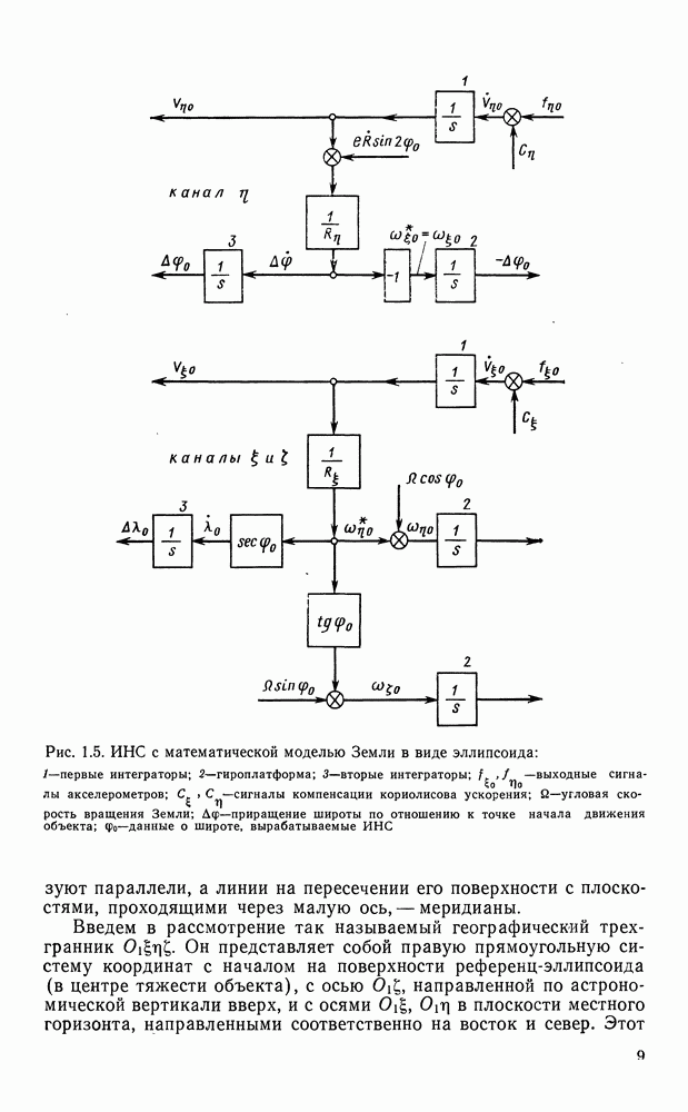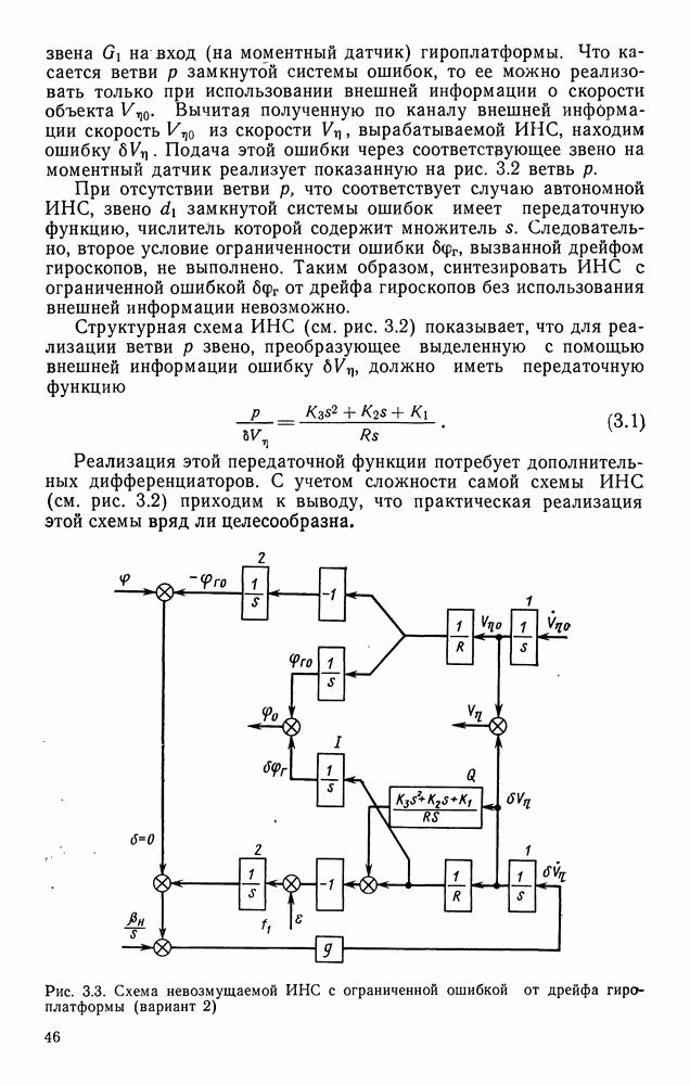 3.5. СХЕМА ИНЕРЦИАЛЬНОЙ НАВИГАЦИОННОЙ СИСТЕМЫ С ВЕРТИКАЛЬНЫМ АКСЕЛЕРОМЕТРОМДля объектов, движущихся по поверхности Земли, в принципиальном отношении возможно синтезировать ИНС с ограниченной ошибкой от дрейфа гироскопов, вводя в схему ИНС третий акселерометр с осью чувствительности, направленной по вертикальной оси гироплатформы (рис. 3.4). Рассмотрим канал ИНС, соответствующий оси
