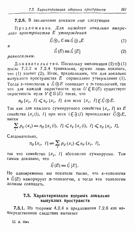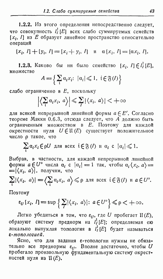 справедливого для всех семейств 7.2.4. Предложение. Каково бы на было локально выпуклое пространство Доказательство. Алгебраическая часть нашего утверждения непосредственно следует из 7.2.1, и нужно лишь показать, что этого рассмотрим произвольное конечномерное суммируемое семейство