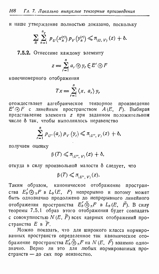 7.2. Некоторые специальные локально выпуклые тензорные произведения7.2.1. В этом параграфе рассматриваются локально выпуклые тензорные произведения банахова пространства Предложение. Алгебраическое тензорное произведение Доказательство. Покажем сначала, что соответствие