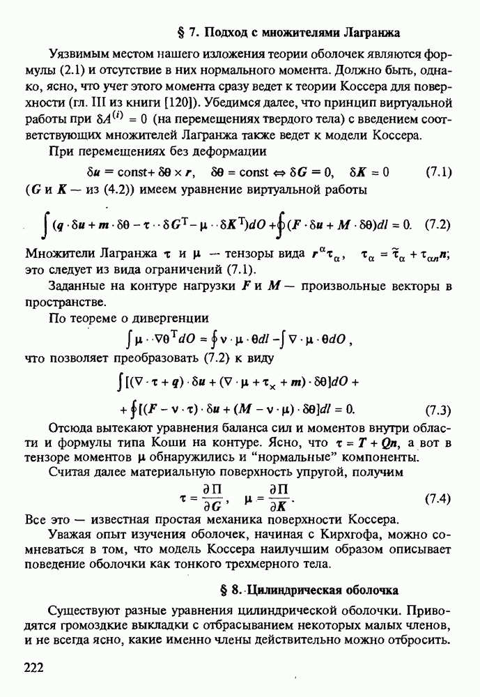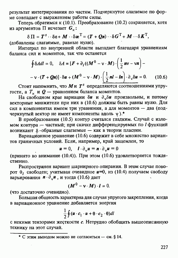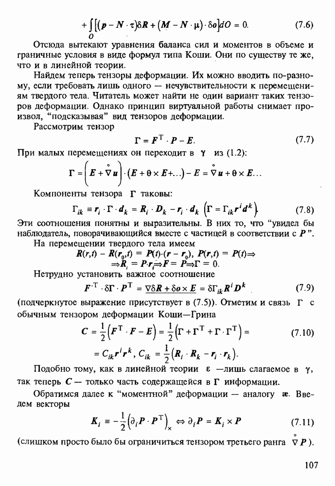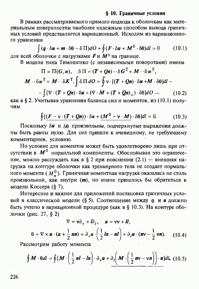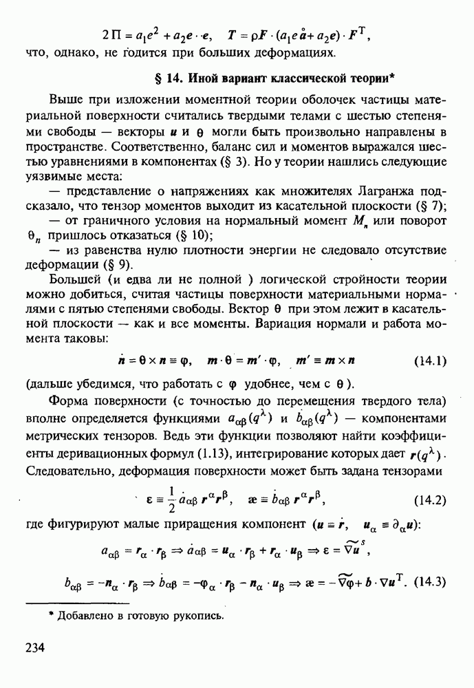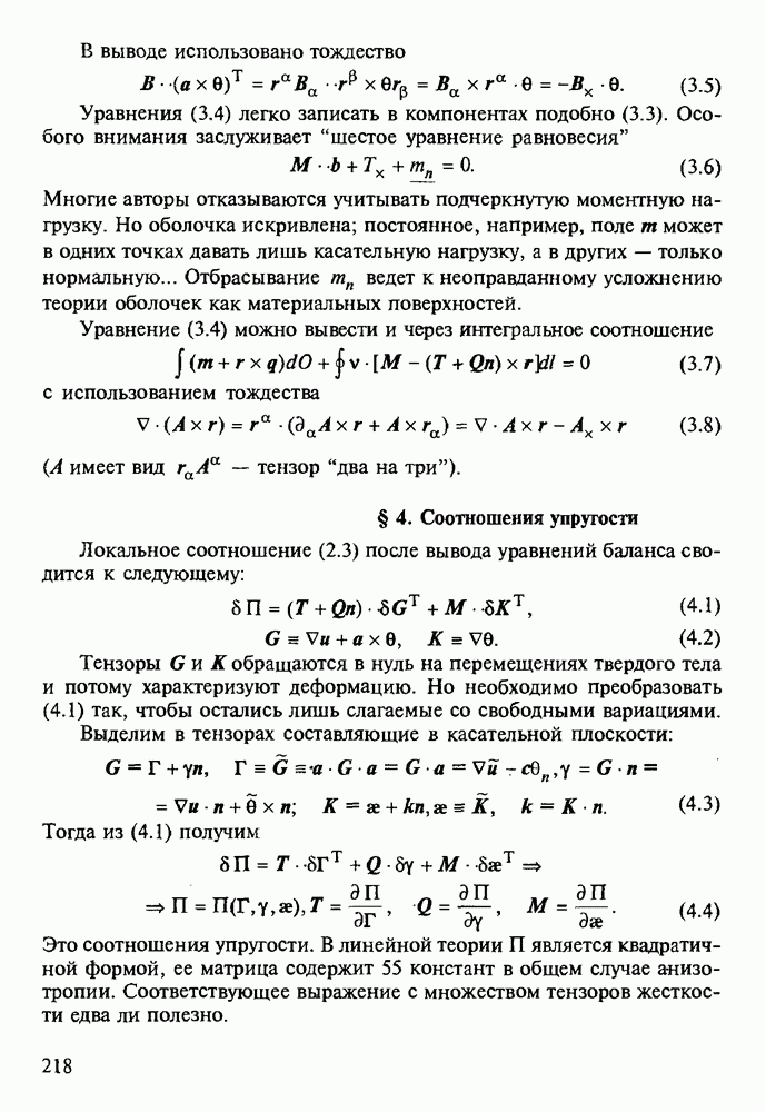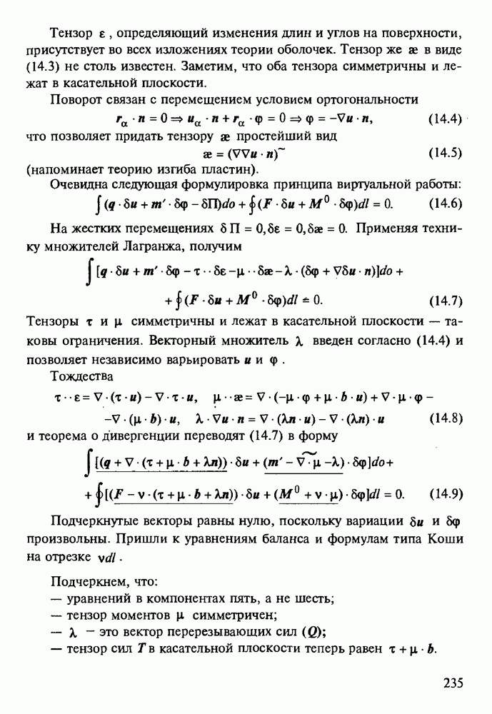 обращаются в нуль на перемещениях твердого тела и потому характеризуют деформацию. Но необходимо преобразовать (4.1) так, чтобы остались лишь слагаемые со свободными вариациями. Выделим в тензорах составляющие в касательной плоскости: