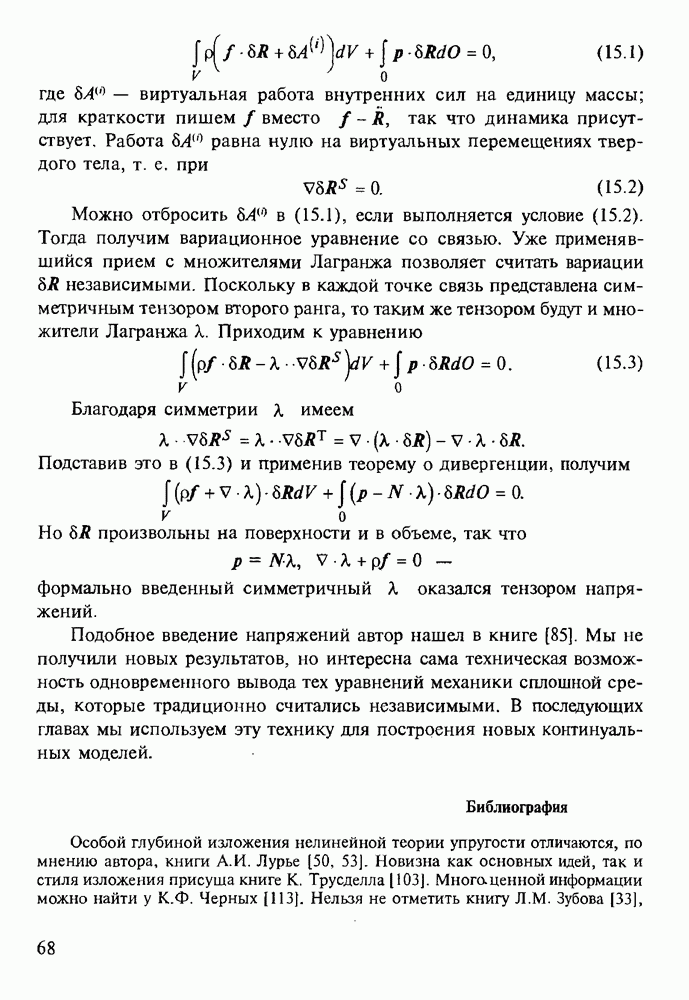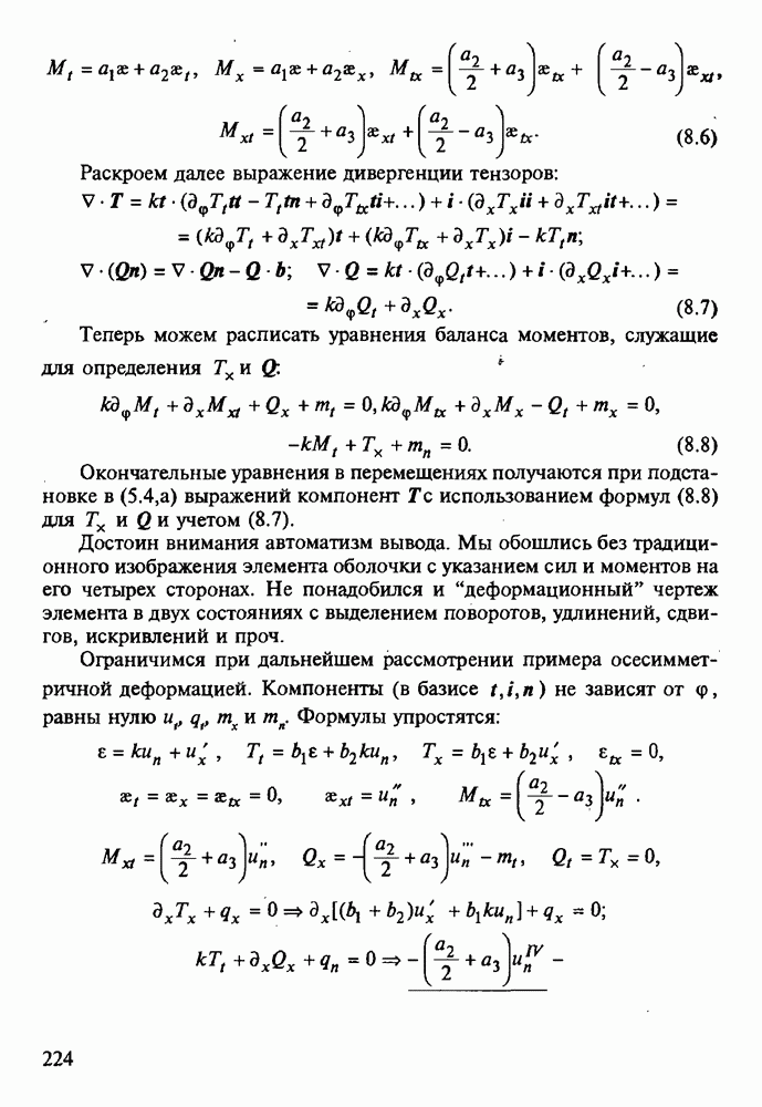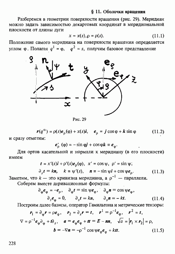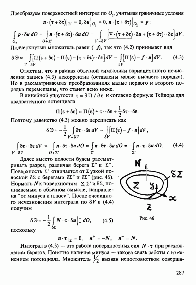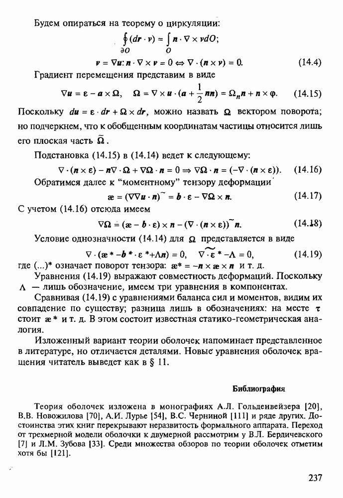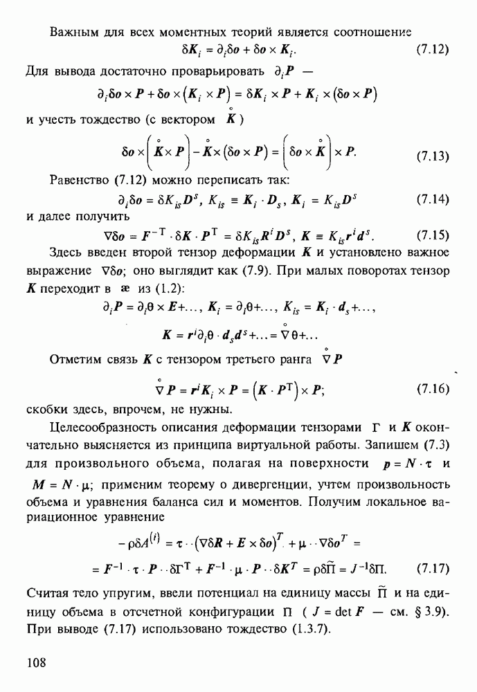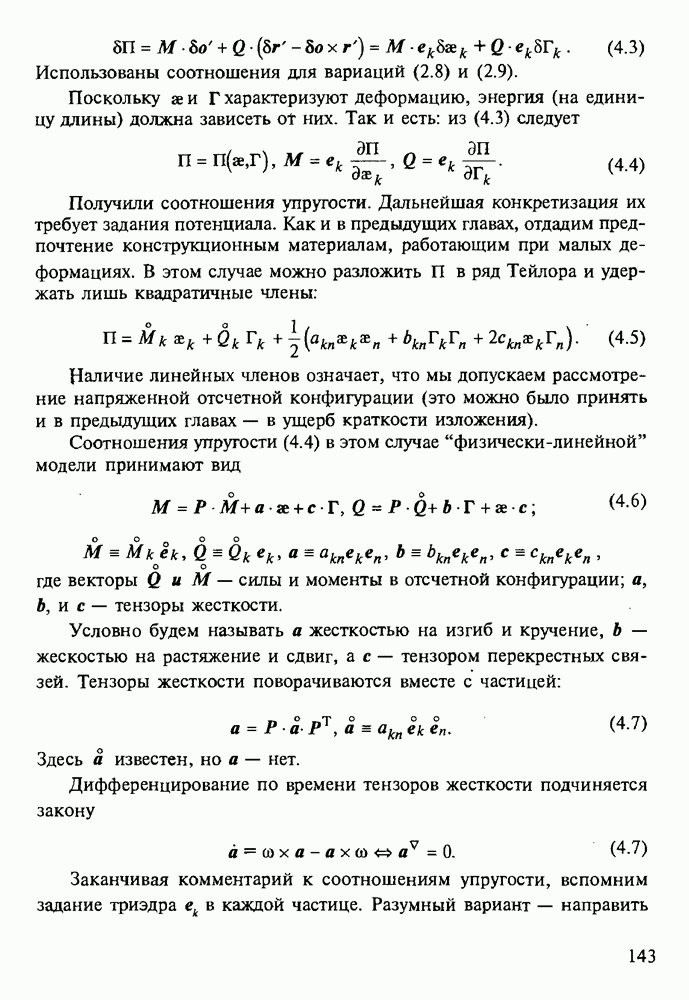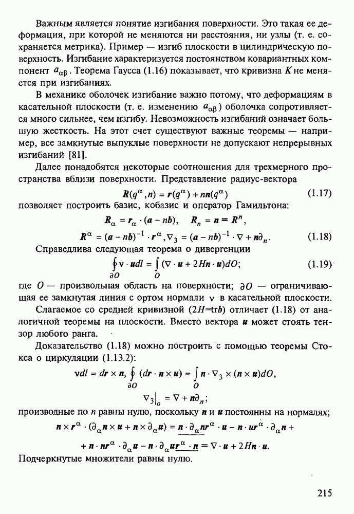 обращаются в нуль на перемещениях твердого тела и потому характеризуют деформацию. Но необходимо преобразовать (4.1) так, чтобы остались лишь слагаемые со свободными вариациями. Выделим в тензорах составляющие в касательной плоскости: