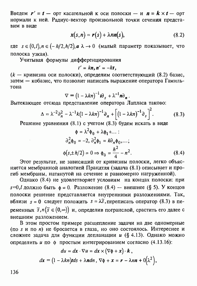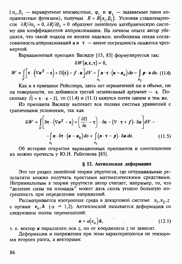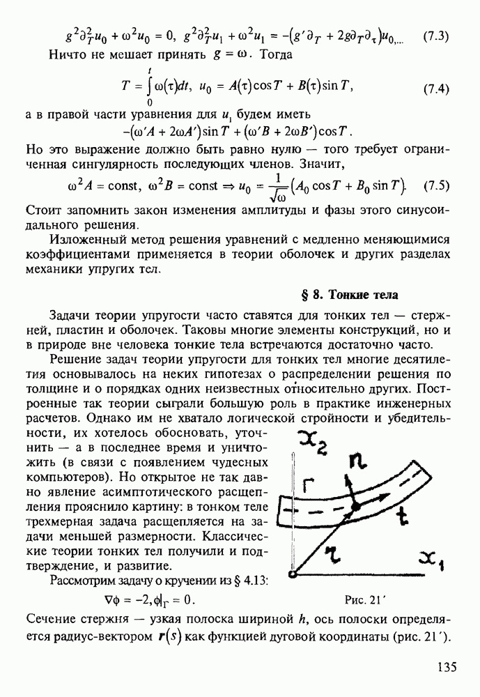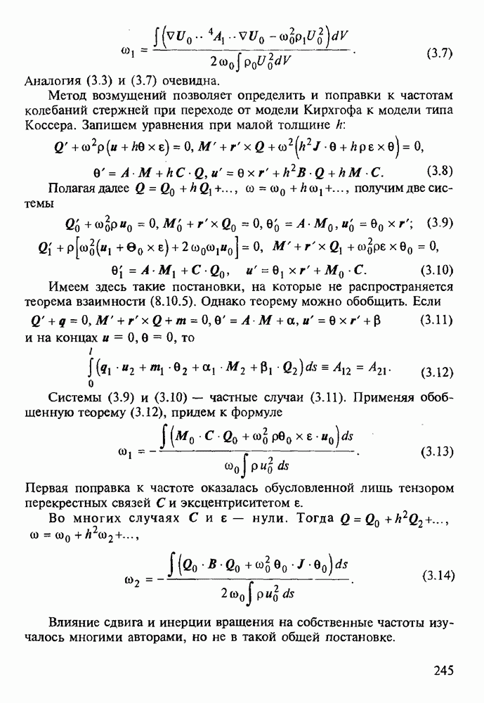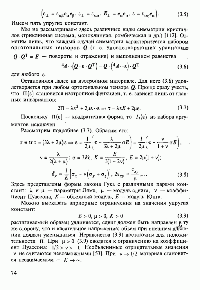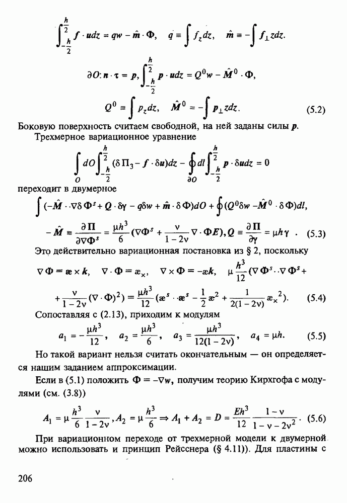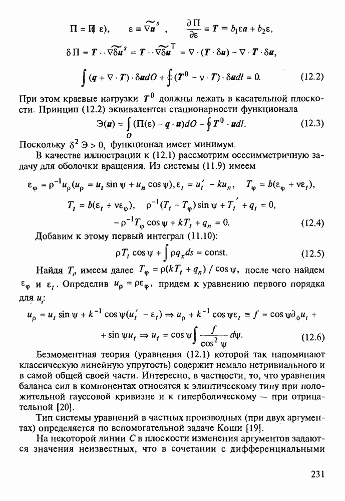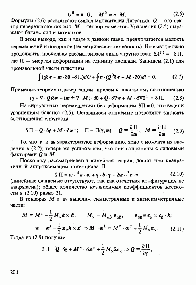 можно определить лишь из трехмерных постановок (см. гл. 8 и 10 о стержнях и пластинах). Опыт расчета модулей в стержнях показывает, что кривизна в матрице энергии как квадратичной формы дает, во-первых, малые добавки к диагональным элементам, и, во-вторых, порождает недиагональные элементы (перекрестные связи). Сведения о возмущении линейных алгебраических систем позволяют предположить, что зависимость модулей