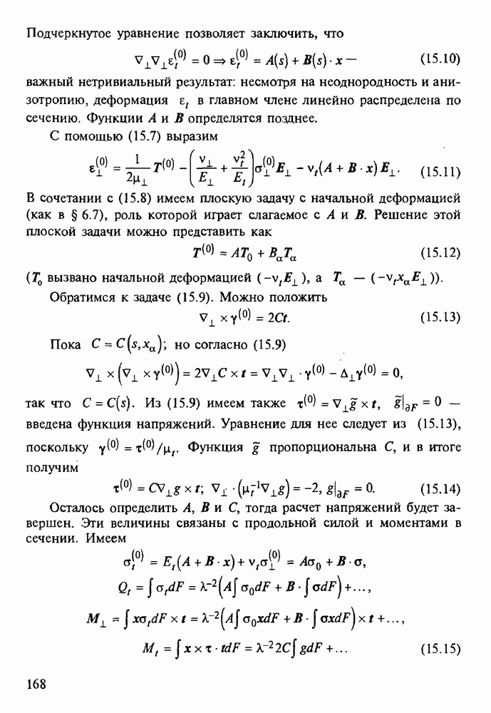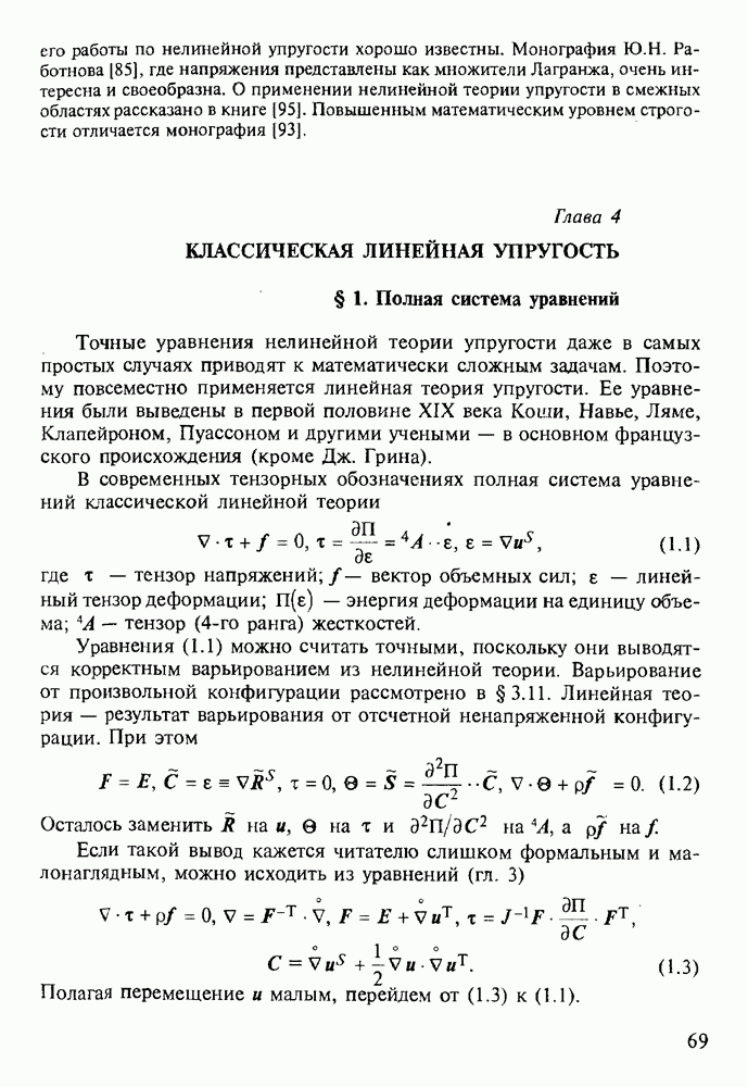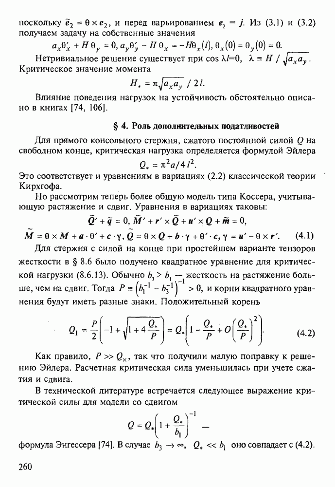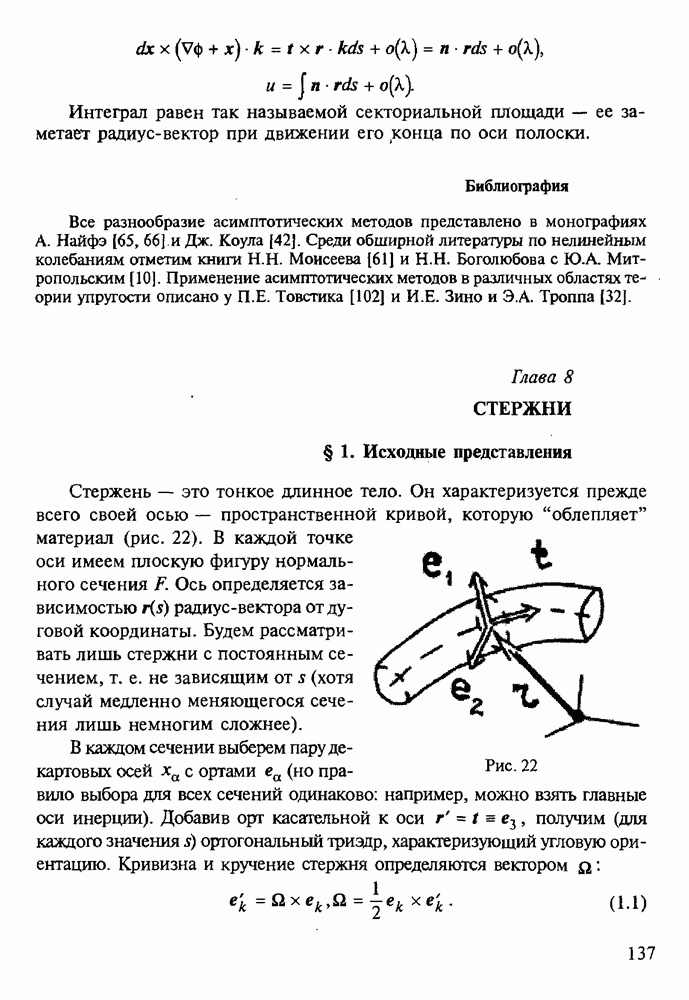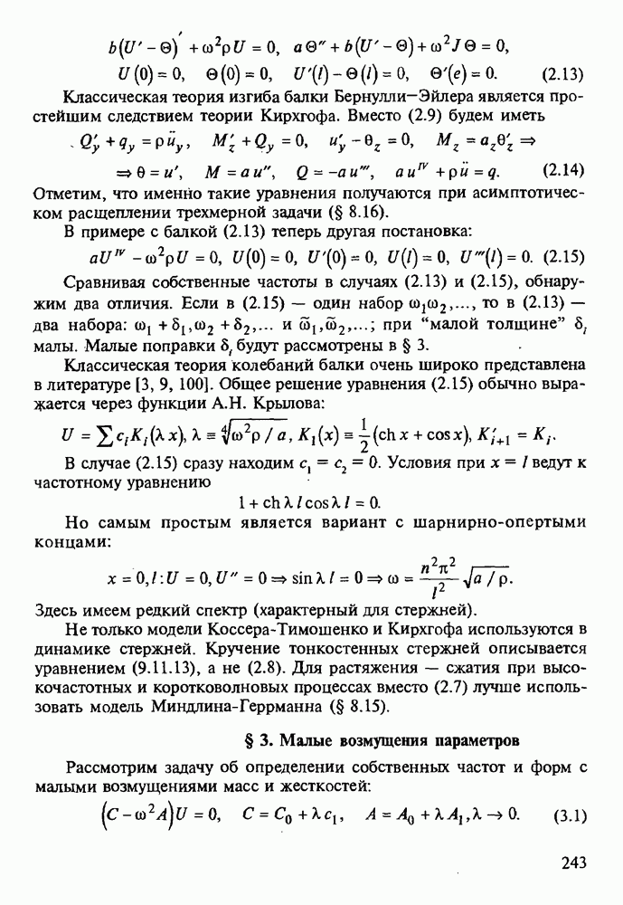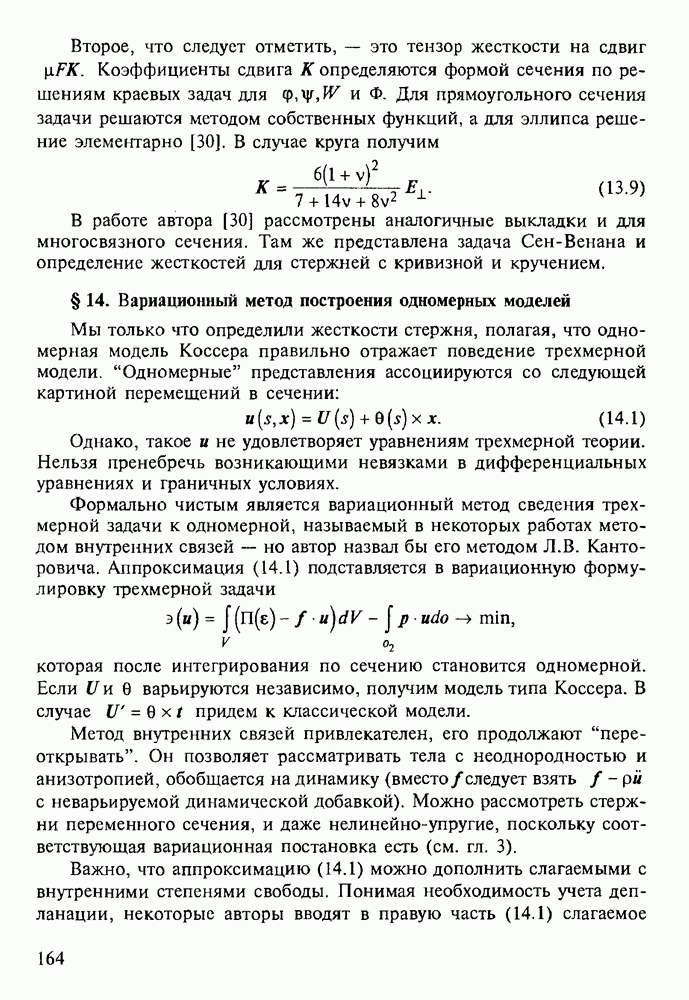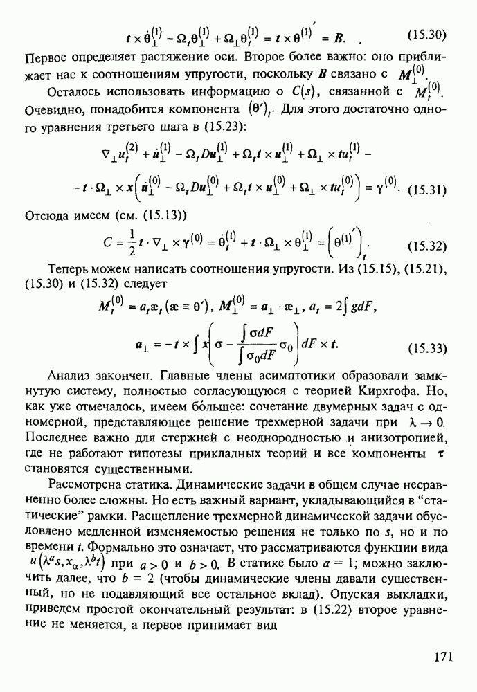 можно определить лишь из трехмерных постановок (см. гл. 8 и 10 о стержнях и пластинах). Опыт расчета модулей в стержнях показывает, что кривизна в матрице энергии как квадратичной формы дает, во-первых, малые добавки к диагональным элементам, и, во-вторых, порождает недиагональные элементы (перекрестные связи). Сведения о возмущении линейных алгебраических систем позволяют предположить, что зависимость модулей
