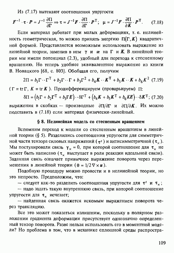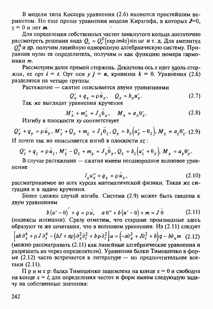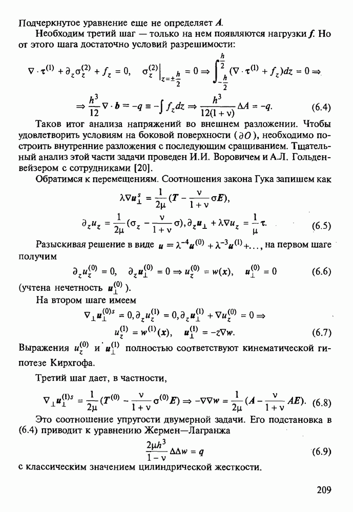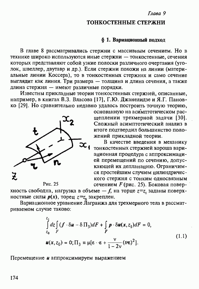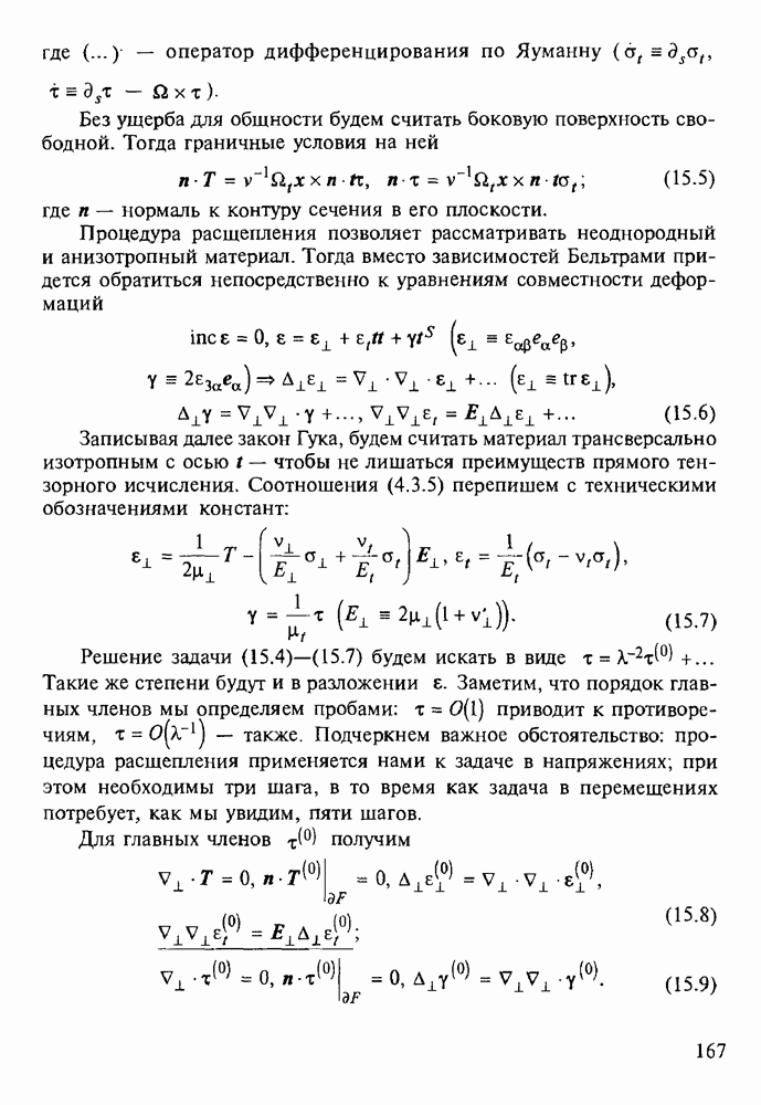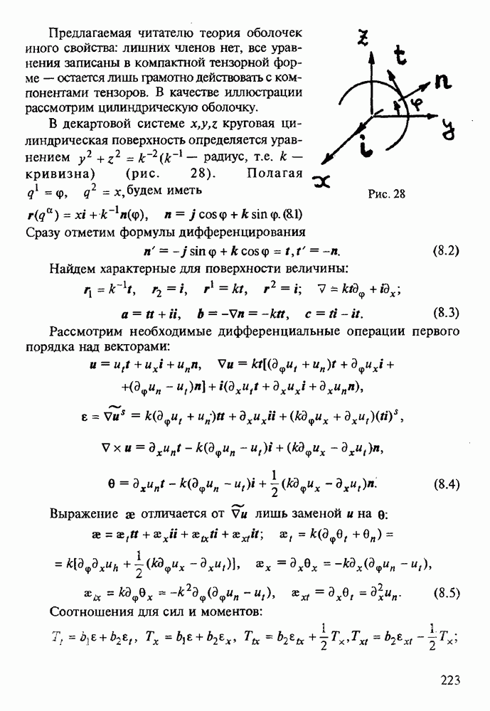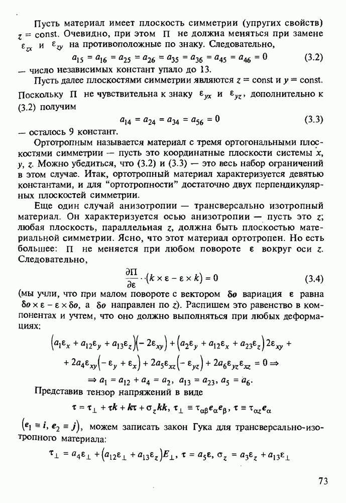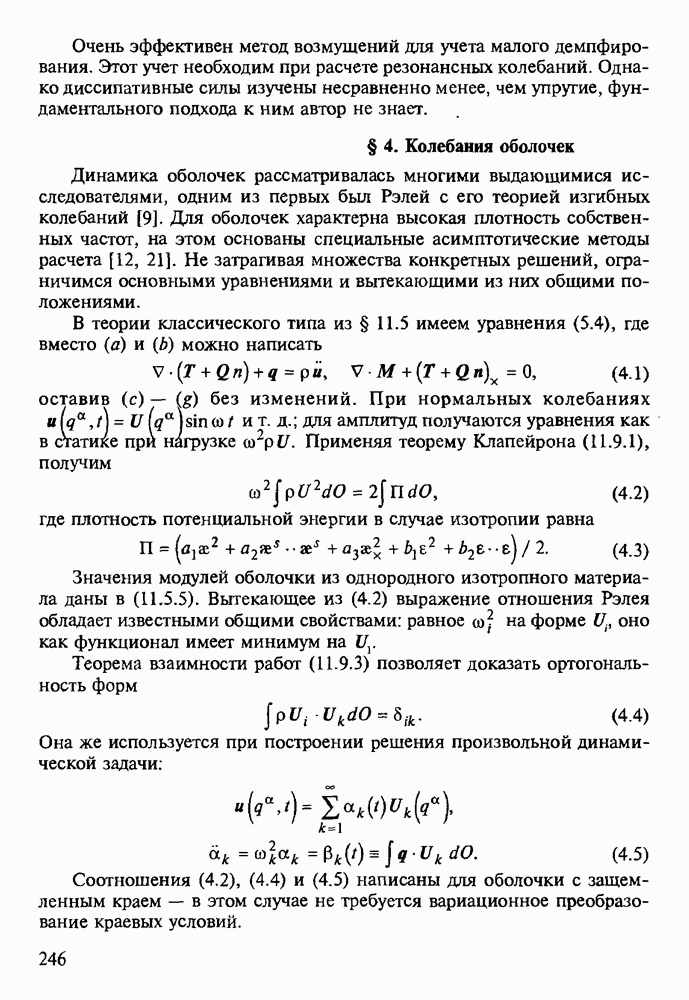 можно определить лишь из трехмерных постановок (см. гл. 8 и 10 о стержнях и пластинах). Опыт расчета модулей в стержнях показывает, что кривизна в матрице энергии как квадратичной формы дает, во-первых, малые добавки к диагональным элементам, и, во-вторых, порождает недиагональные элементы (перекрестные связи). Сведения о возмущении линейных алгебраических систем позволяют предположить, что зависимость модулей
