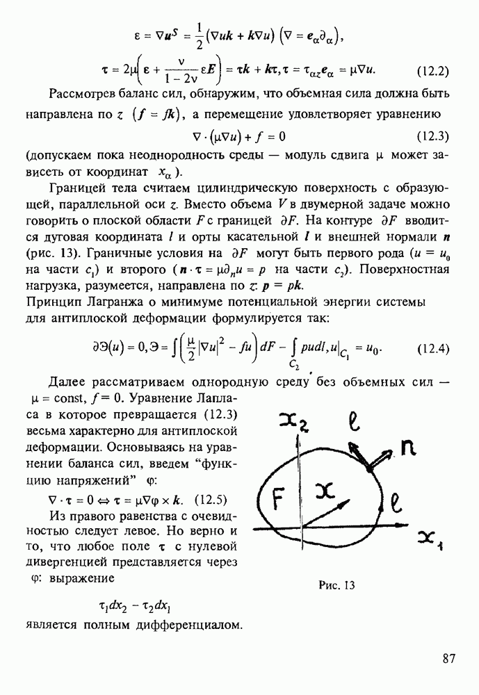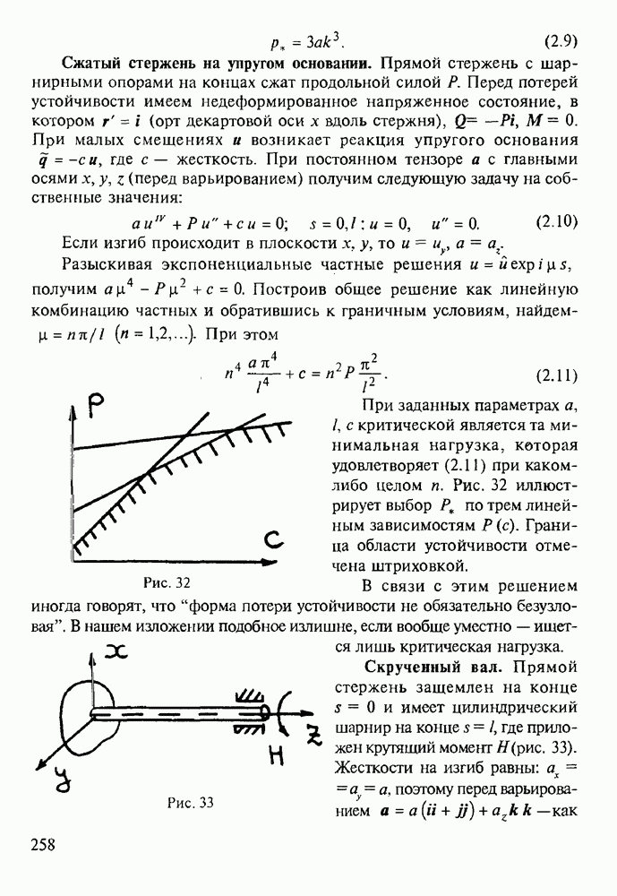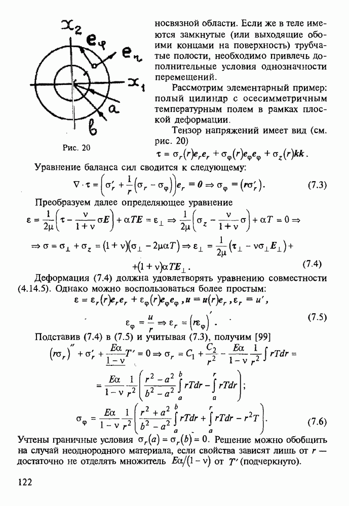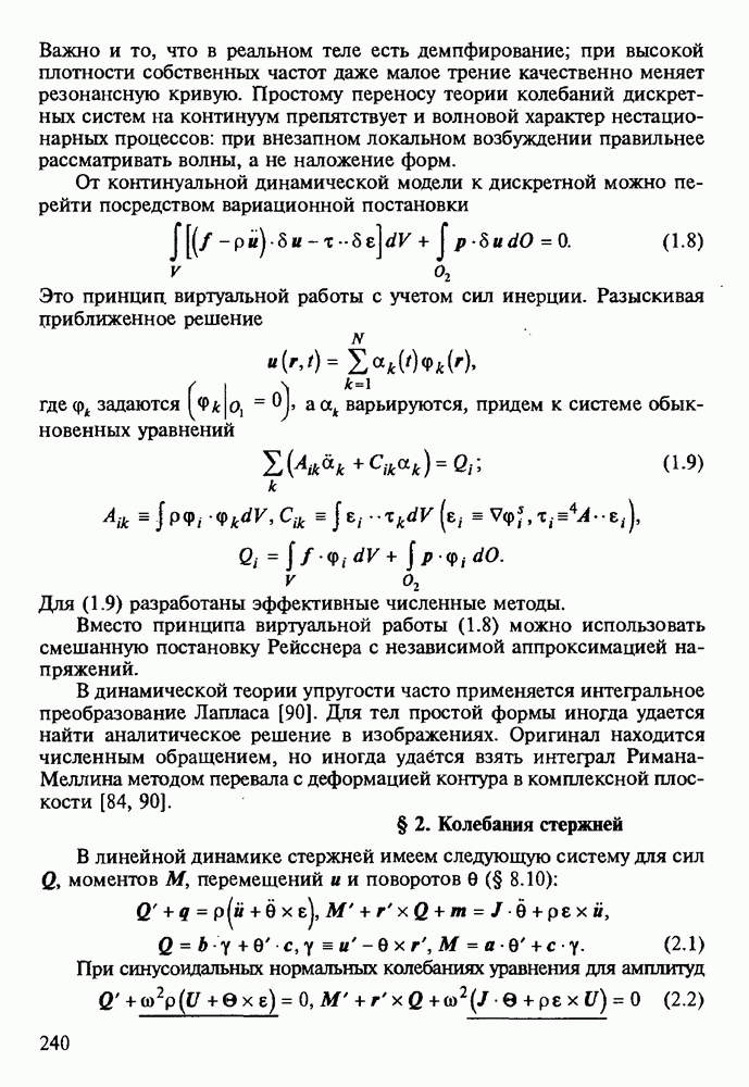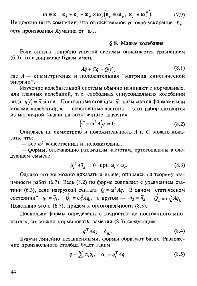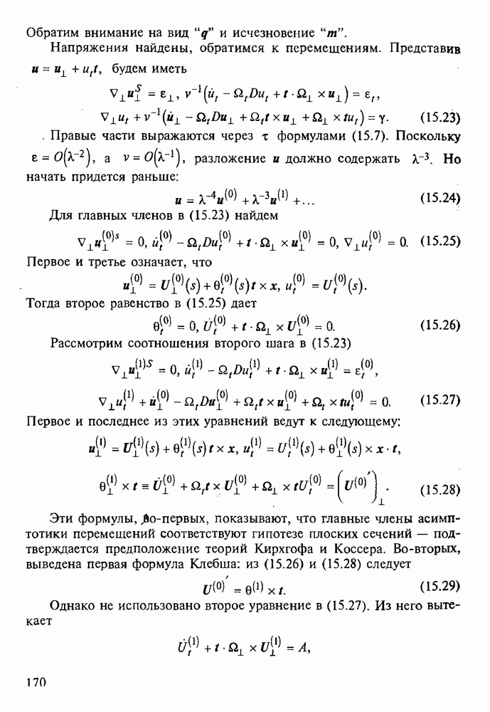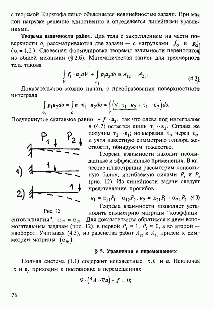 можно определить лишь из трехмерных постановок (см. гл. 8 и 10 о стержнях и пластинах). Опыт расчета модулей в стержнях показывает, что кривизна в матрице энергии как квадратичной формы дает, во-первых, малые добавки к диагональным элементам, и, во-вторых, порождает недиагональные элементы (перекрестные связи). Сведения о возмущении линейных алгебраических систем позволяют предположить, что зависимость модулей