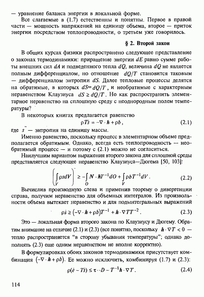 Локальное соотношение (2.3) после вывода уравнений баланса сводится к следующему: