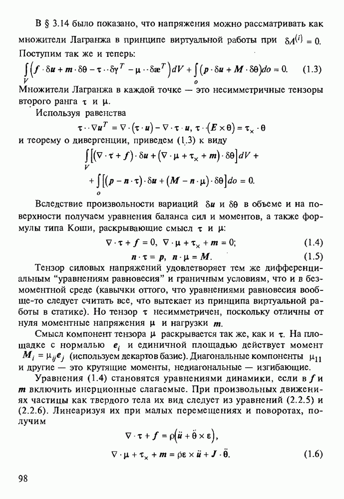 В уравнении моментов (3.4) содержится лишь антисимметричная часть тензора сил