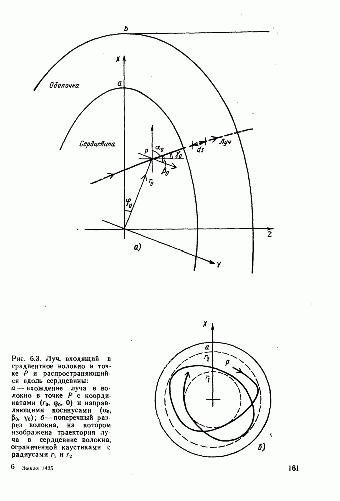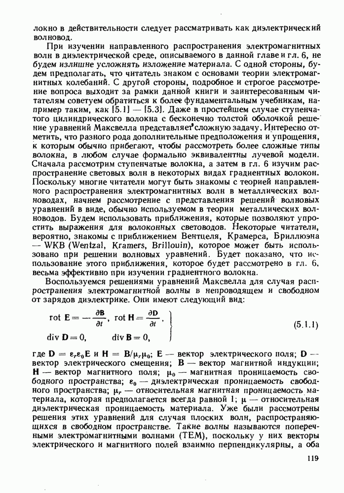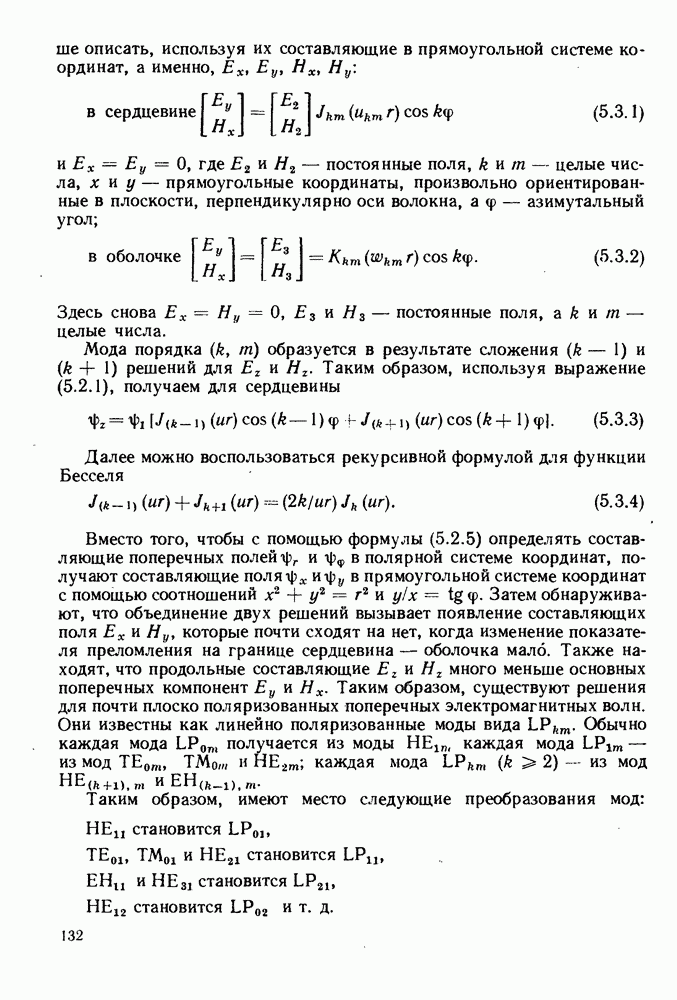 5.3. СЛАБО НАПРАВЛЯЮЩИЕ ВОЛОКНАОбнаружено, что можно получить до некоторой степени более простые выражения для картин поля мод в том случае, когда разница показателей преломления сердцевины и оболочки мала, т. е. когда Волокна, удовлетворяющие этому условию, относятся к слабо направляющим волокнам. В этом случае распределения электромагнитного поля и постоянные распространения для пар мод типа лучше описать, используя их составляющие в прямоугольной системе координат, а именно,