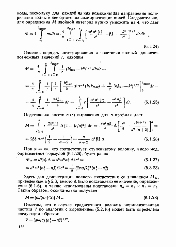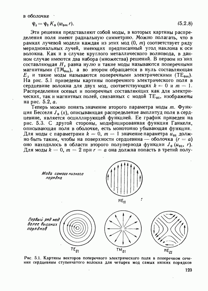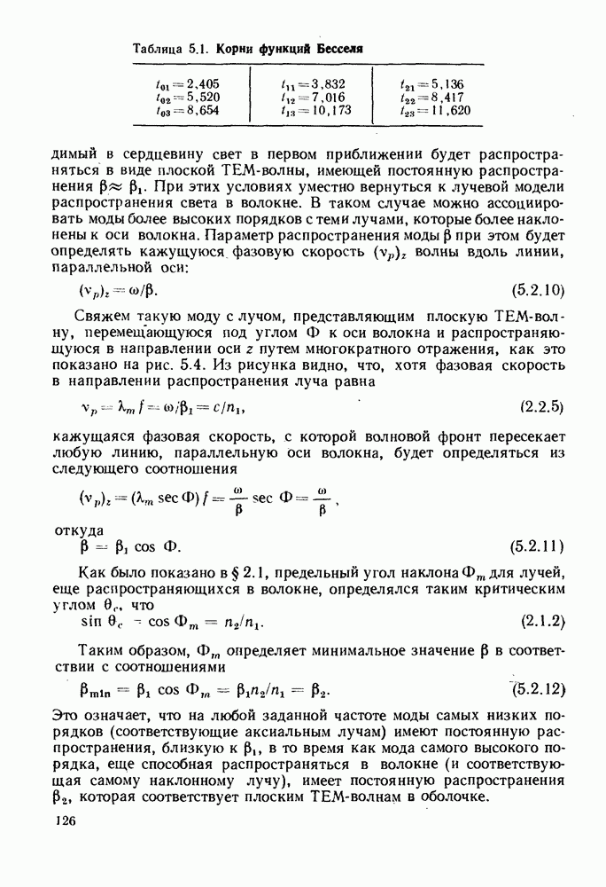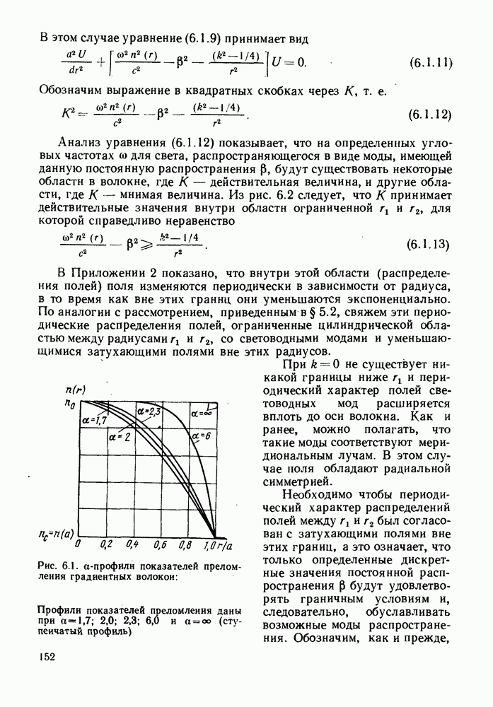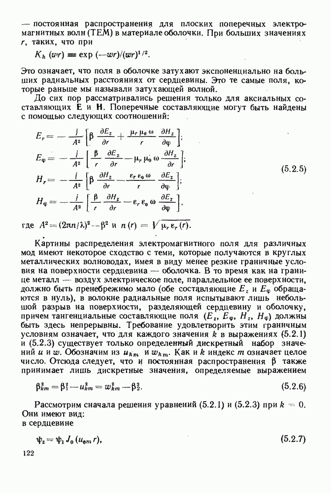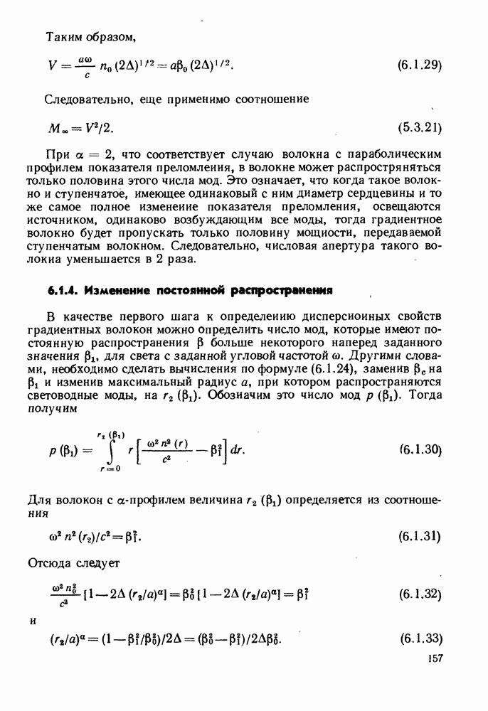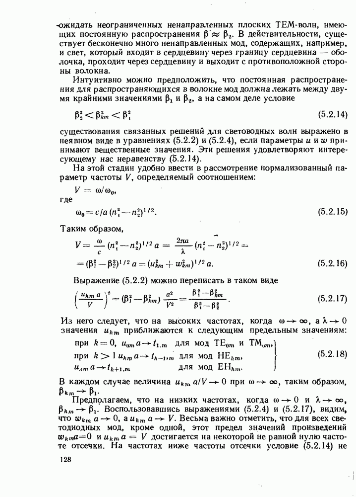 Это условие согласуется с условиями отсечки (5.2.19) — (5.2.21) в пределе слабо направляющего волокна. Очевидно, что, как и ранее,