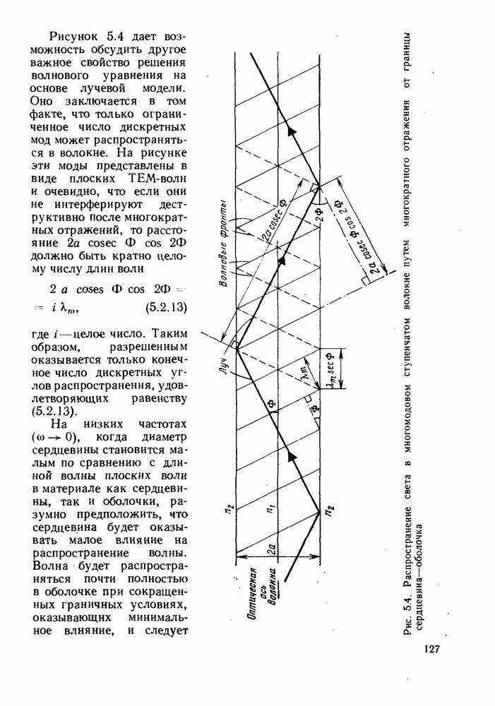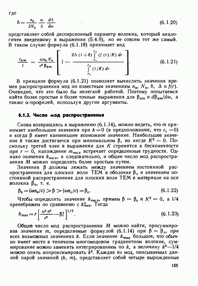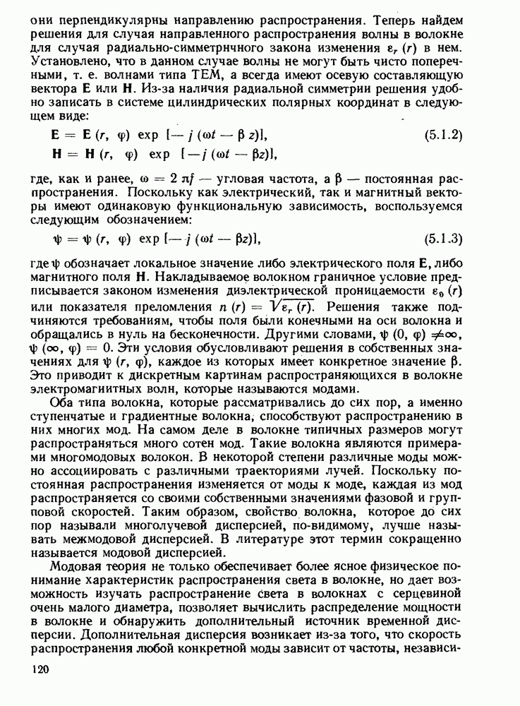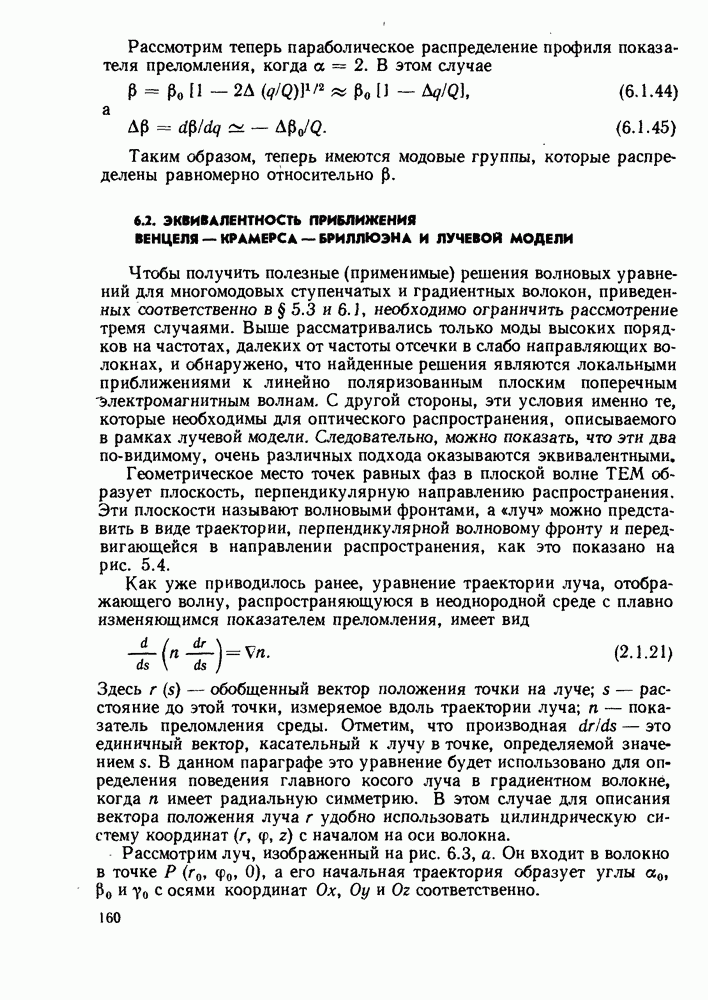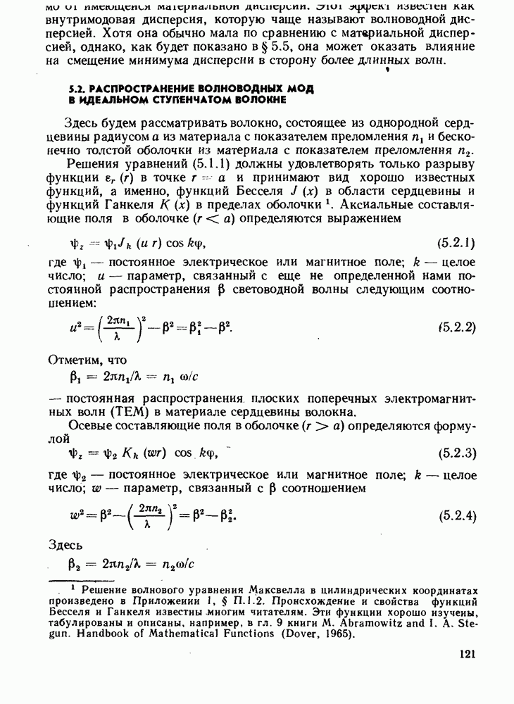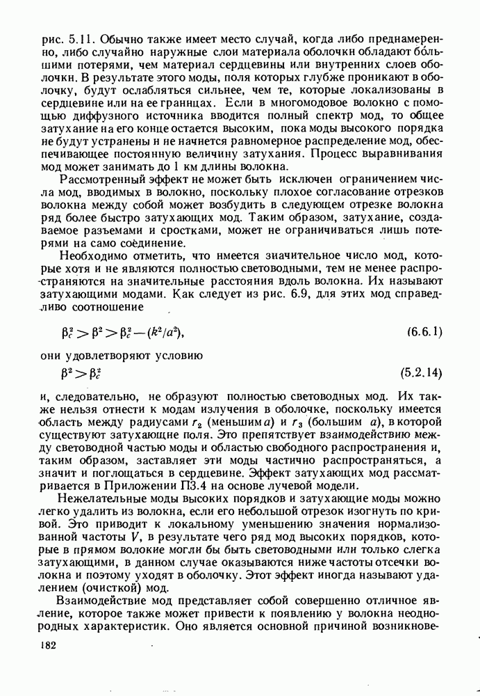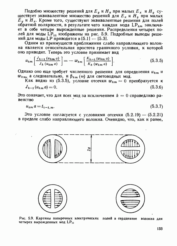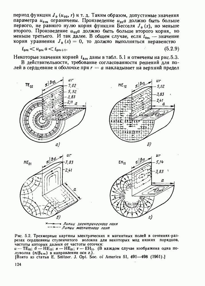 Это условие согласуется с условиями отсечки (5.2.19) — (5.2.21) в пределе слабо направляющего волокна. Очевидно, что, как и ранее,
